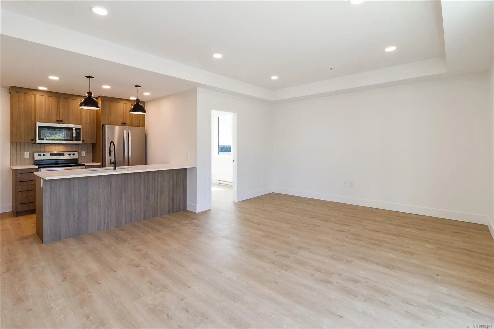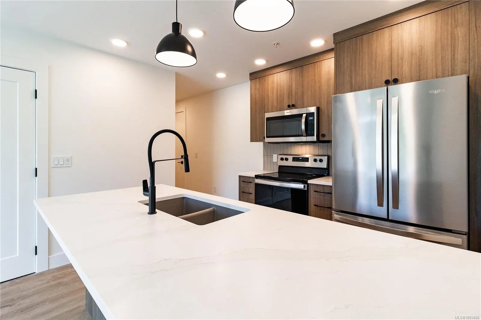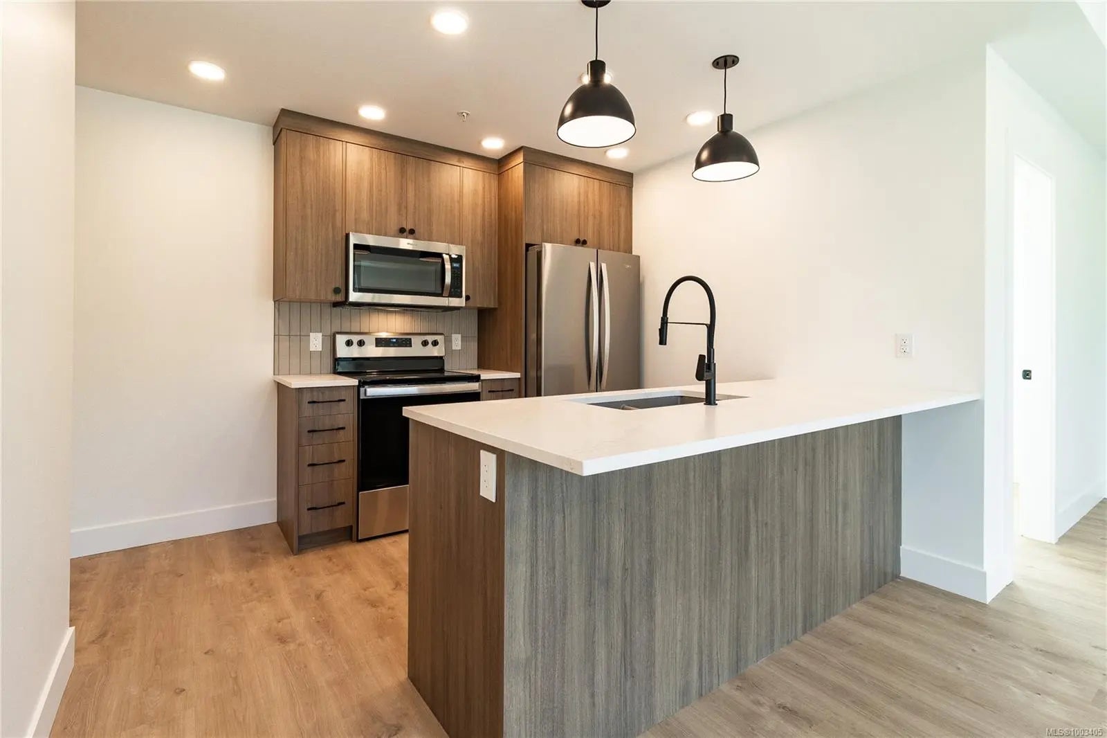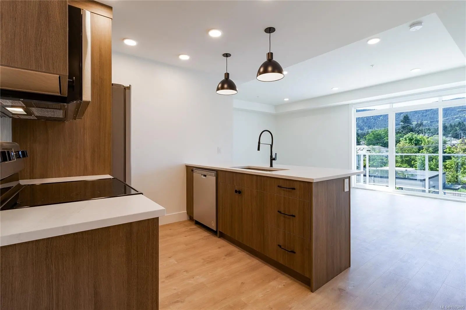 Welcome to Dalby's on Dogwood, where luxury meets convenience in the heart of Ladysmith, BC. This exclusive residence offers a blend of sophisticated design, modern amenities, and a prime location, ensuring an exceptional living experience for residents of all ages. The architectural beauty is complemented by breathtaking panoramic views of the harbour, providing a picturesque backdrop to daily life. This boutique 5-storey building offers 25 residences, each meticulously designed for comfort and functionality. Enjoy secure parking, a sleek lobby, and a common roof deck patio. Dalby's on Dogwood caters to your lifestyle with amenities like bike storage, a dog washing station, and lush landscaping. Embrace coastal living while still enjoying urban conveniences, just minutes from beaches, parks, and shops. This 1 bed + den, 2 bath home offers high-end finishes, in suite laundry, included appliances, window coverings and mountain views from your own patio. Book your private showing today!