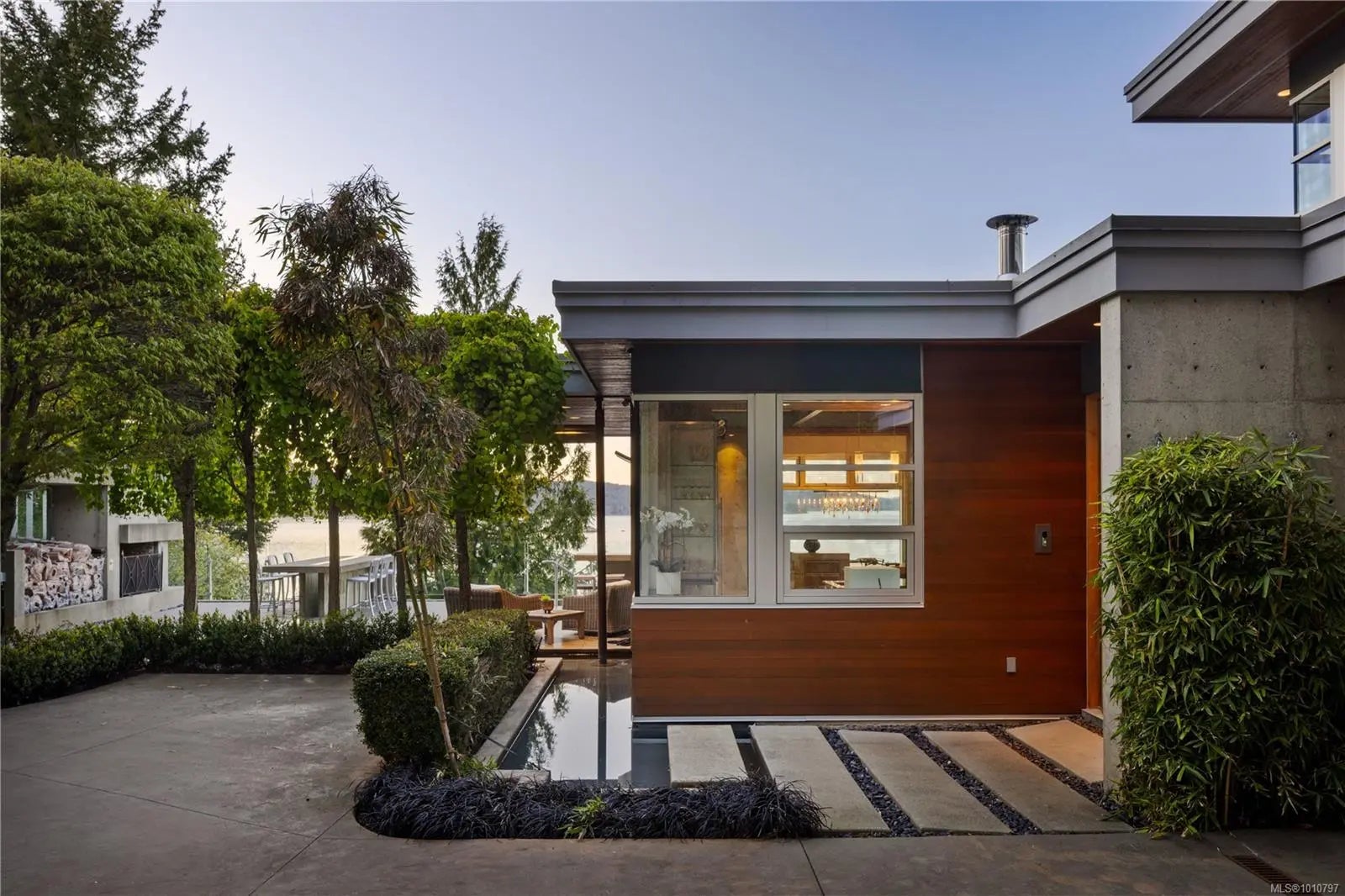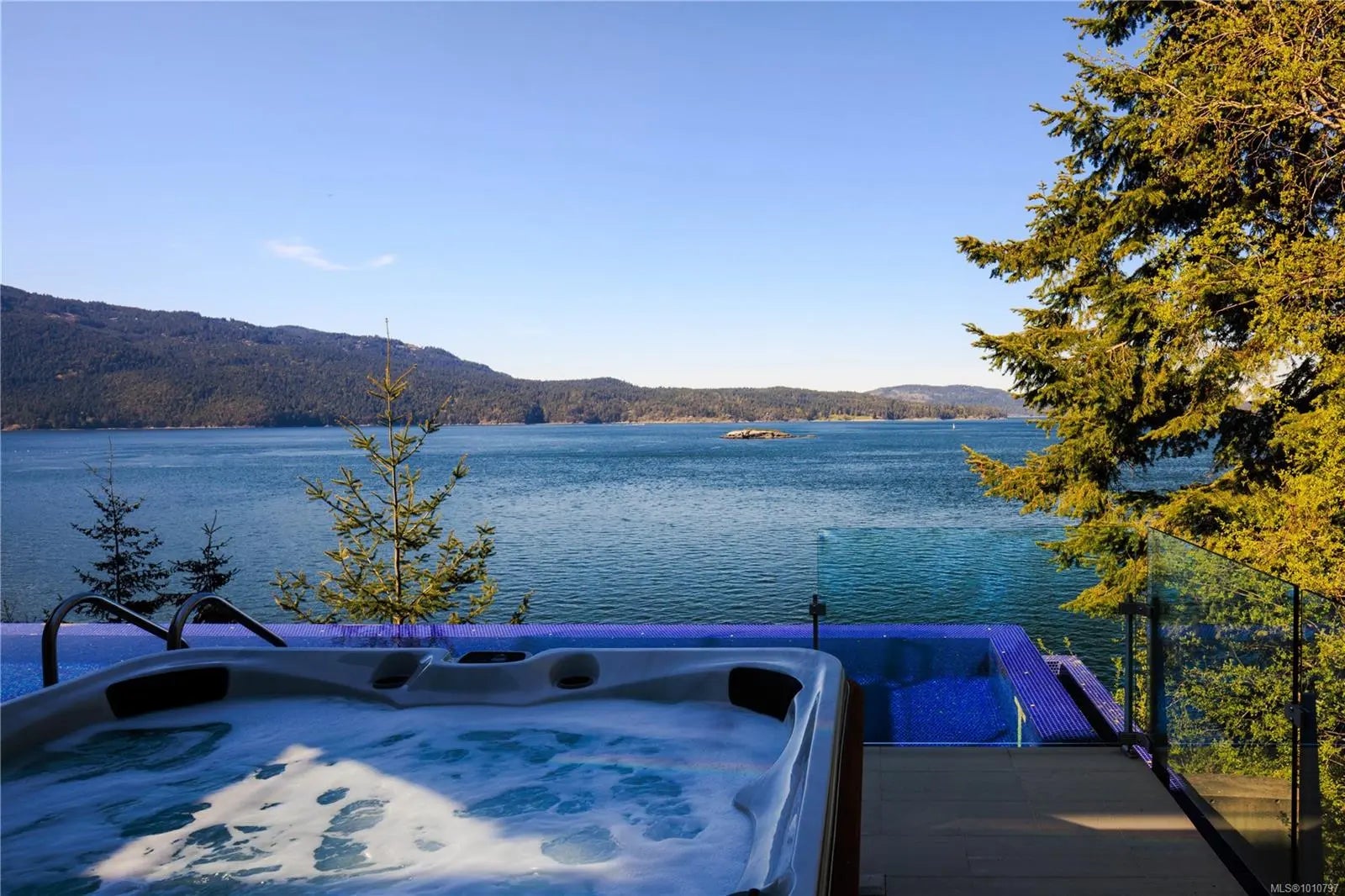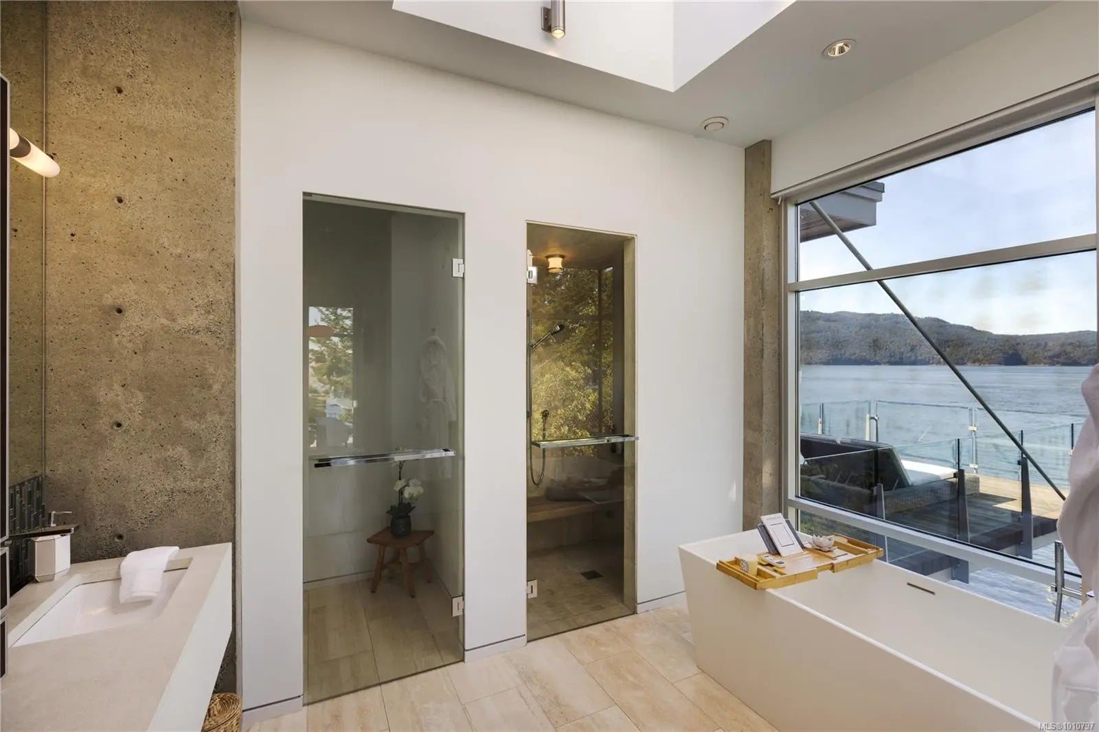 Oceanfront Masterpiece. World class custom steel-&-concrete home on 1.59 private acres with 625' of ocean frontage. Panoramic ocean & island views are enjoyed through floor-to-ceiling windows & signature porthole accents. A bespoke flybridge extends from the living area, delivering front-row seats to an 82' infinity pool perfectly aligned for sunrises over Mt Baker to glowing ocean sunsets. Inside, sustainable geothermal heating warms polished concrete floors. Rich hues are provided by accent floors, floating stairs & custom cabinetry. A deluxe main-floor primary retreat has sweeping vistas with a spa-inspired ensuite. Lower level features guest suites, media room, wine cellar & poolside gym w/ retractable glass doors for seamless outdoor access. Upstairs, the family room is a quiet escape. The gourmet kitchen opens to an outdoor BBQ area w/ man-made stream & waterfall for natural ambiance. A private, peaceful seaside sanctuary near to shops, dining & marinas.