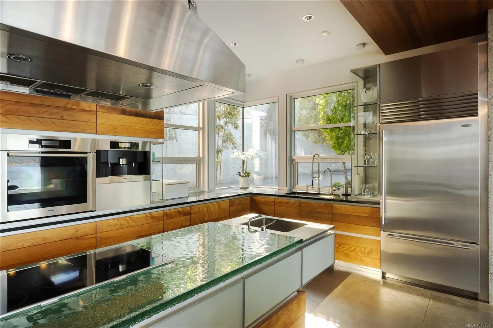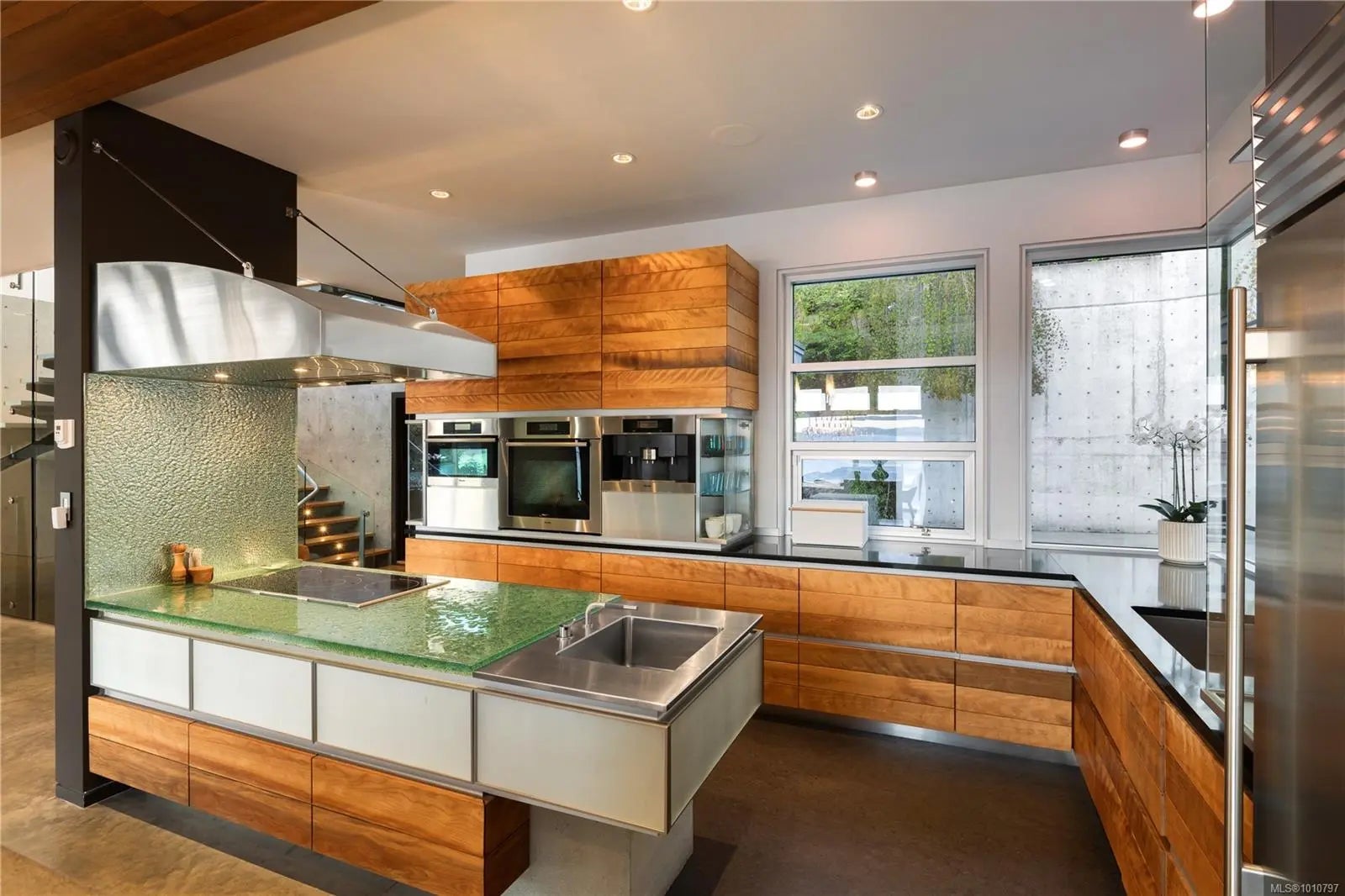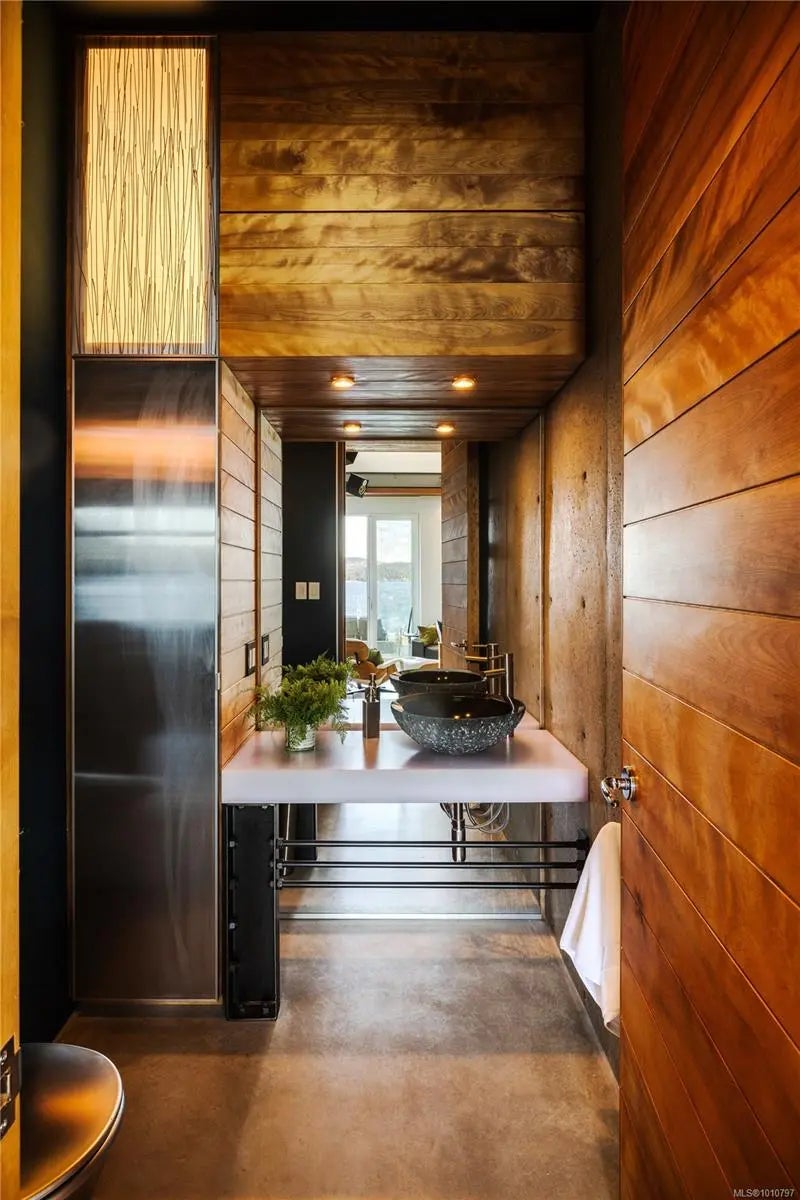 Oceanfront Masterpiece. World class custom steel-&-concrete home on 1.59 private acres with 625' of ocean frontage. Panoramic ocean & island views are enjoyed through floor-to-ceiling windows & signature porthole accents. A bespoke flybridge extends from the living area, delivering front-row seats to an 82' infinity pool perfectly aligned for sunrises over Mt Baker to glowing ocean sunsets. Inside, sustainable geothermal heating warms polished concrete floors. Rich hues are provided by accent floors, floating stairs & custom cabinetry. A deluxe main-floor primary retreat has sweeping vistas with a spa-inspired ensuite. Lower level features guest suites, media room, wine cellar & poolside gym w/ retractable glass doors for seamless outdoor access. Upstairs, the family room is a quiet escape. The gourmet kitchen opens to an outdoor BBQ area w/ man-made stream & waterfall for natural ambiance. A private, peaceful seaside sanctuary near to shops, dining & marinas.