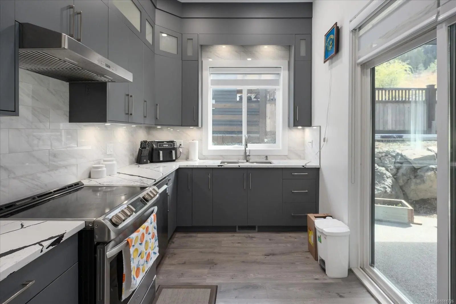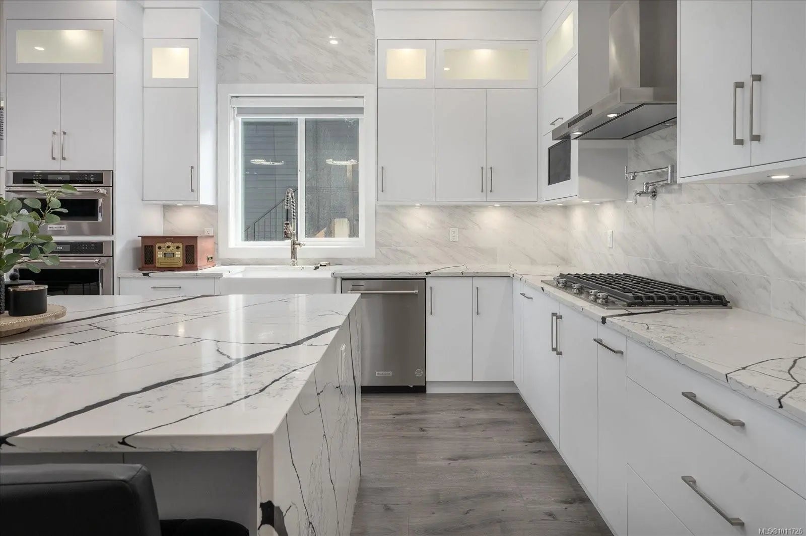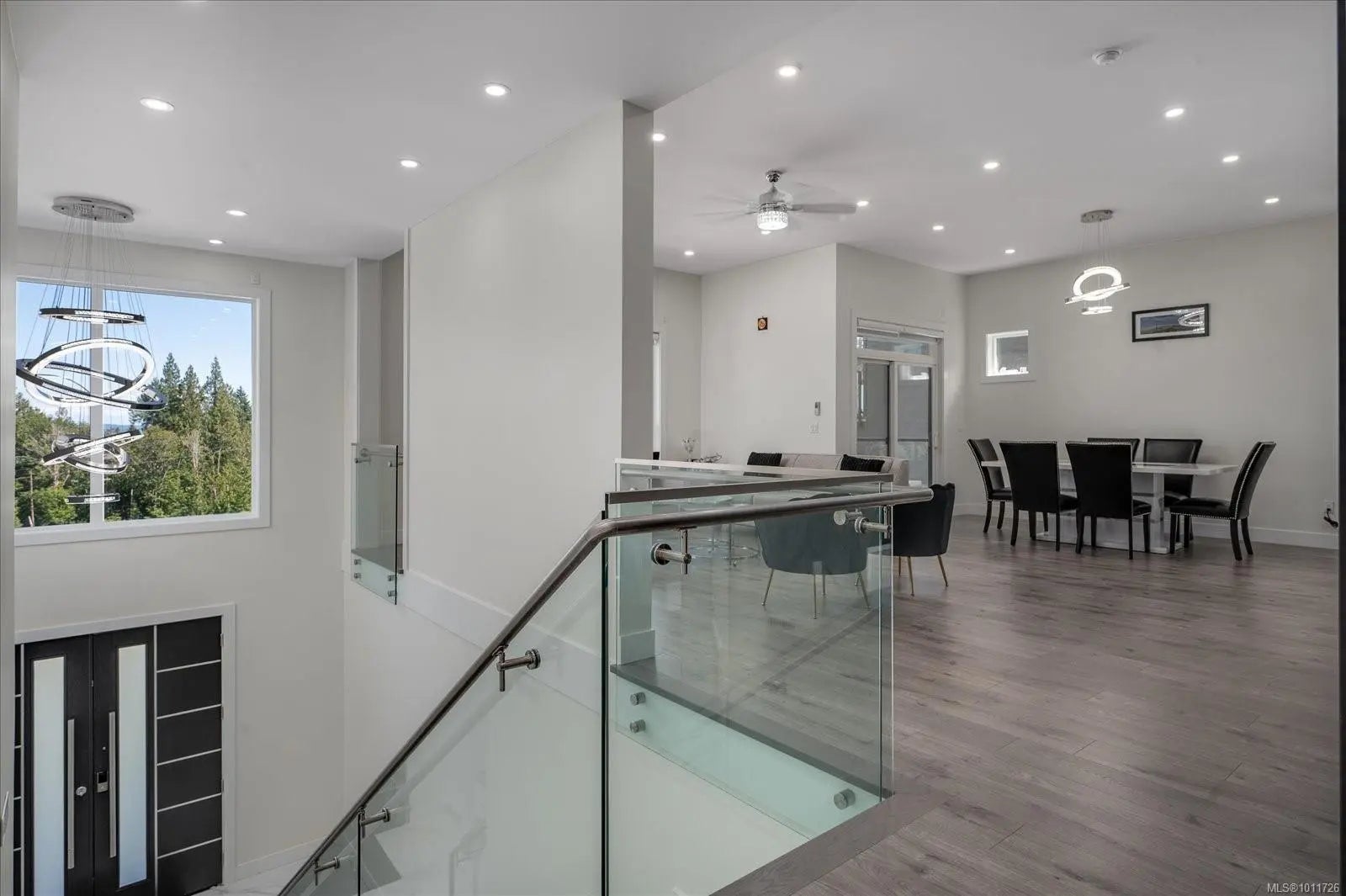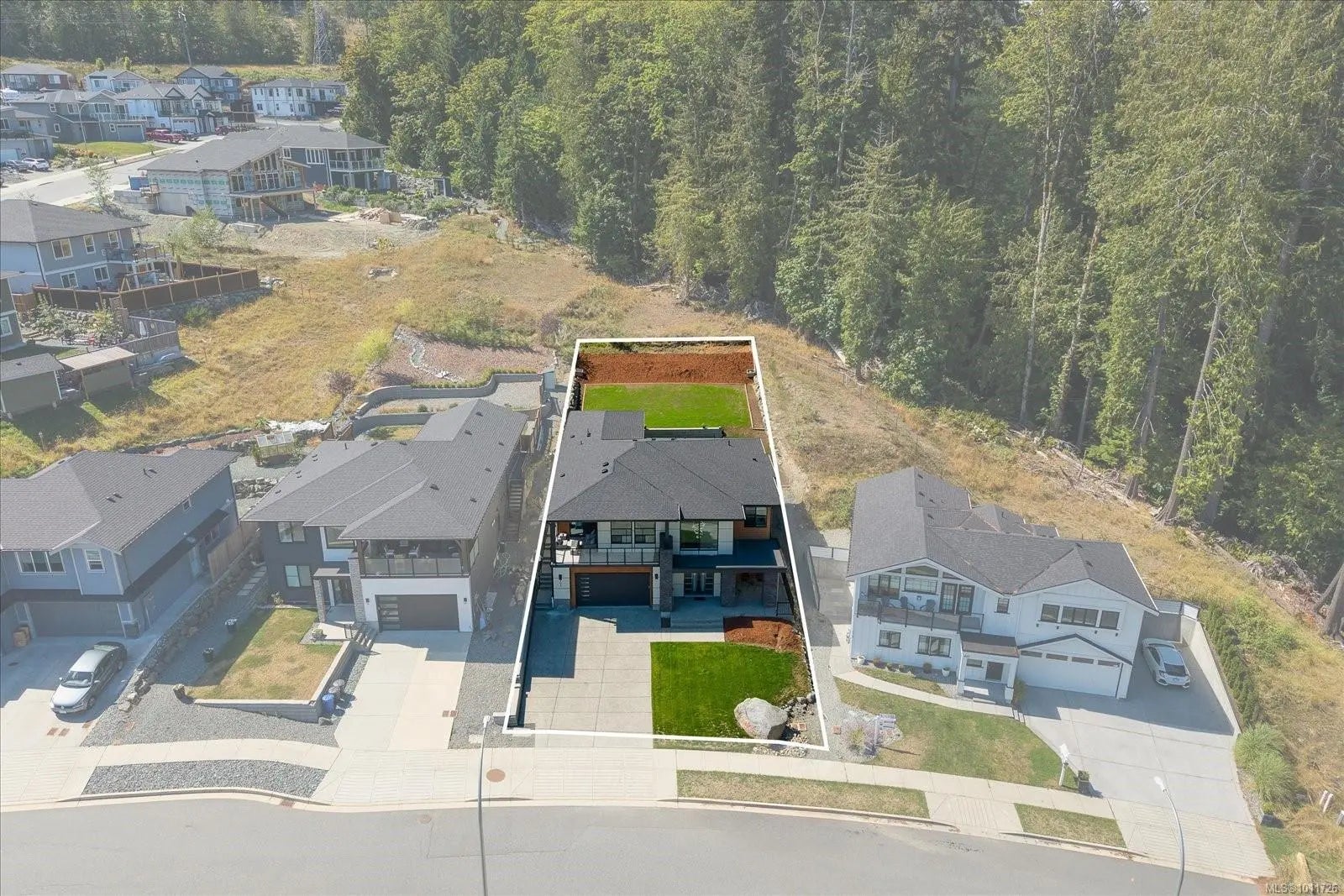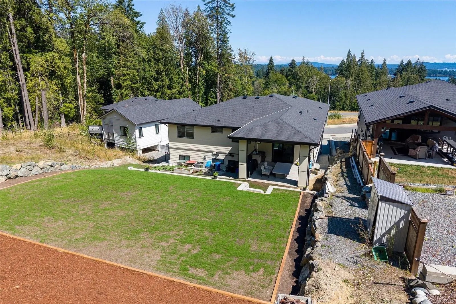 Stunning 5 bed, 5 bath ocean view home in Ladysmith, perfect for multigenerational living or income potential with a 1-bedroom suite. Surrounded by beautiful new homes, this luxury residence features over $40,000 in lighting upgrades, a grand entrance, and a theatre/rec room. The open floor plan flows from living to dining to a chef’s kitchen with high-end appliances, plus a spice/prep kitchen. The spacious primary suite offers a walk-in closet and spa-like 5-piece ensuite. Outdoors, enjoy an ocean view front deck, a landscaped yard and back patio wired for a hot tub. Oversize garage provides plenty of parking. Located near schools, trails, golf, marinas, and town amenities. Comfort is ensured with high-efficiency gas heating and cooling A/C.