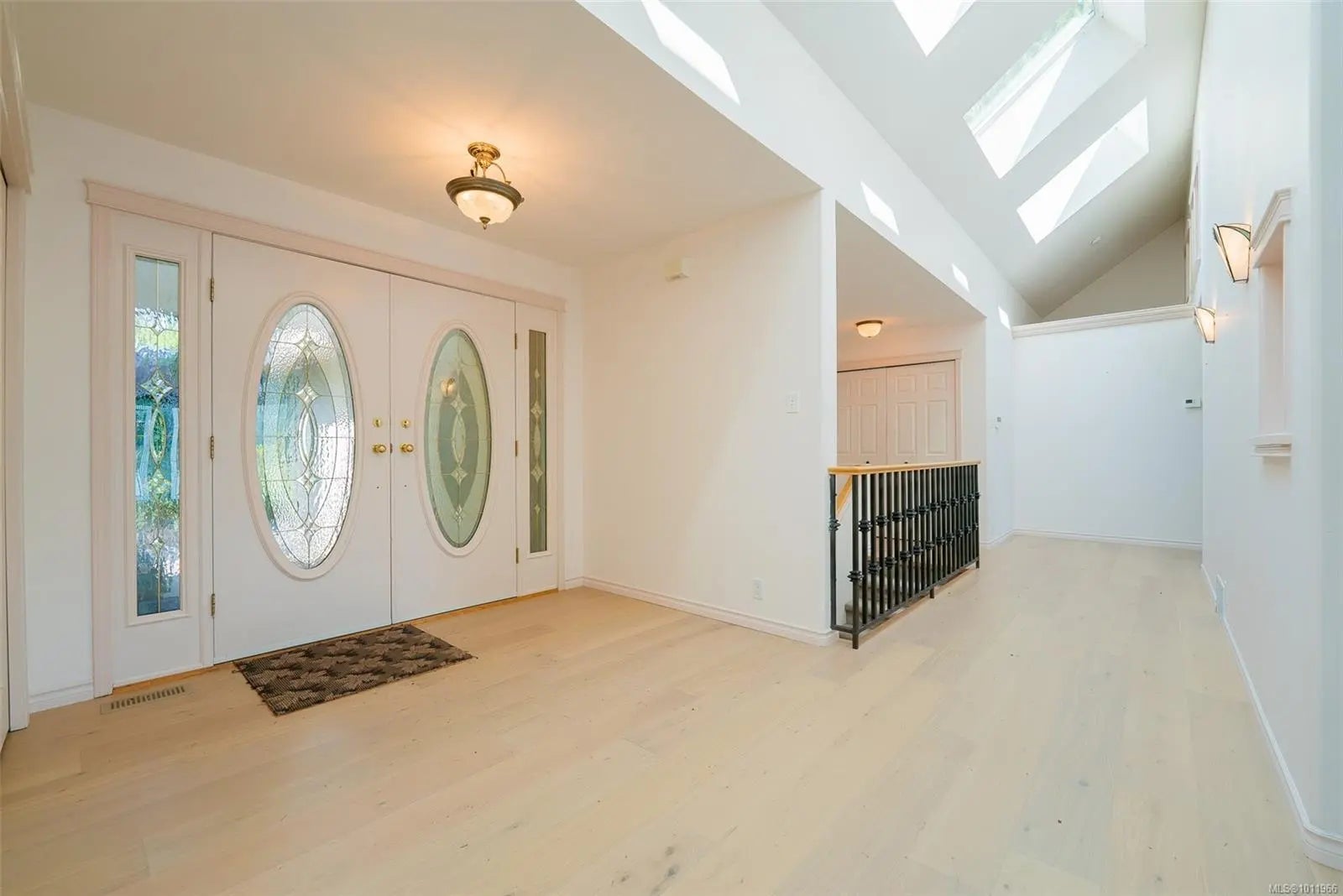 Tucked away at the end of a private driveway, this spacious two-level walk-out basement home offers the ultimate in West Coast living. With 4,024 square feet of living space, 5 bedrooms, and 3 bathrooms, there's plenty of room for a growing family, multi-generational living, or a home-based business. Set on over 2 acres of low-bank waterfront, the property boasts easy beach access and panoramic ocean views. Whether you’re watching marine activity from your deck or strolling the shoreline, every day feels like a getaway. Thoughtful recent upgrades add to the value and comfort of this well-maintained home. The expansive lot offers endless possibilities — expand your gardens, plant an orchard, build a shop or carriage house, or simply enjoy the space and privacy. Zoning even allows for future subdivision (with approval), making this a strategic investment as well as a lifestyle choice. Located just minutes from the charming town of Ladysmith and a short drive to Nanaimo.