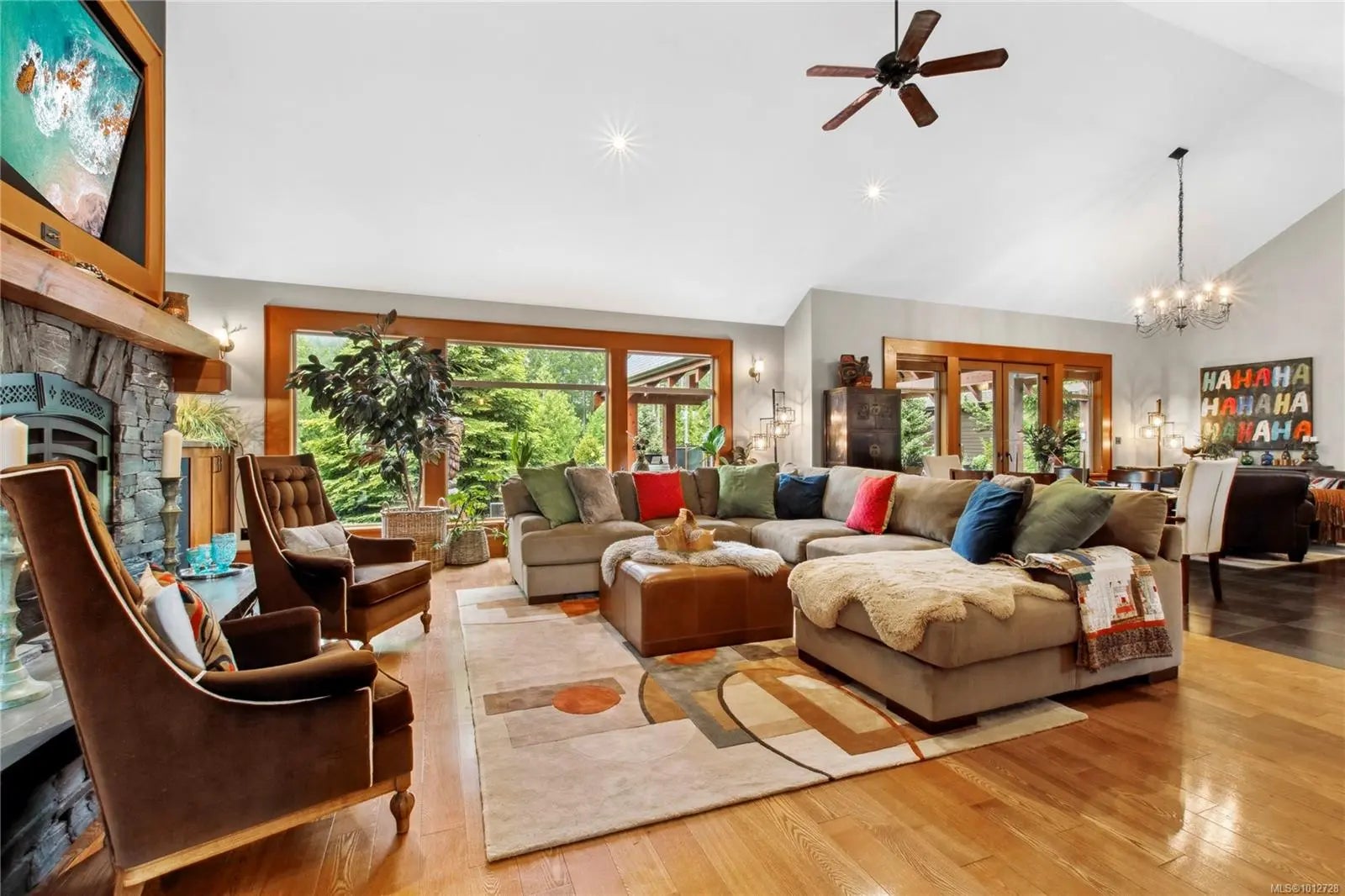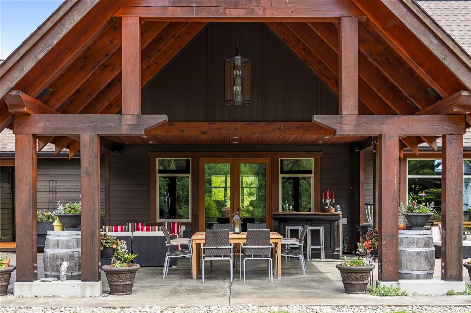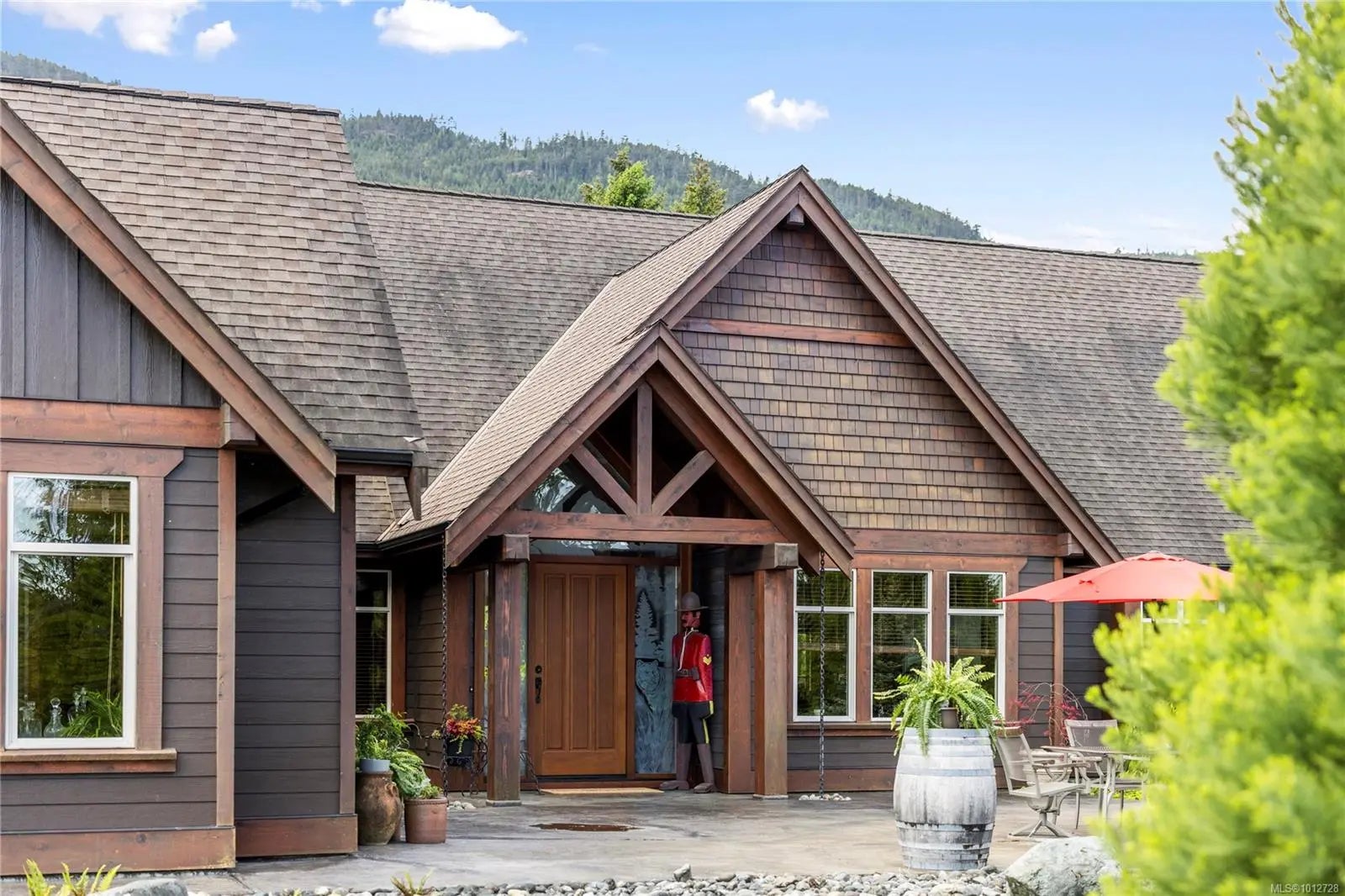 Set on nearly 3 acres in prestigious Benson Meadows, this custom-built estate offers exceptional privacy, craftsmanship & functionality. The 3-bedroom + den main home showcases timber accents, vaulted ceilings, a dramatic K2 stone fireplace & a chef’s kitchen with cherry cabinetry, dual ovens, walk-in pantry, and seamless flow to a 1,200 sq ft covered patio — perfect for year-round entertaining. The luxurious primary suite features a spa-inspired ensuite, fireplace, & private hot tub access. A separate guest wing includes a bedroom with ensuite & private lounge. Energy-efficient design, triple garage, massive crawlspace, heated tile floors & hot water on demand add convenience & comfort. A detached 2-bed carriage home sits above a 4-bay over-height shop — ideal for hobbyists, extended family or rental income. Fully fenced with dual driveways, beautifully landscaped yards, a bunkie, RV parking & direct trail access to Ammonite Falls and Mount Benson — just 15 mins from all amenities.