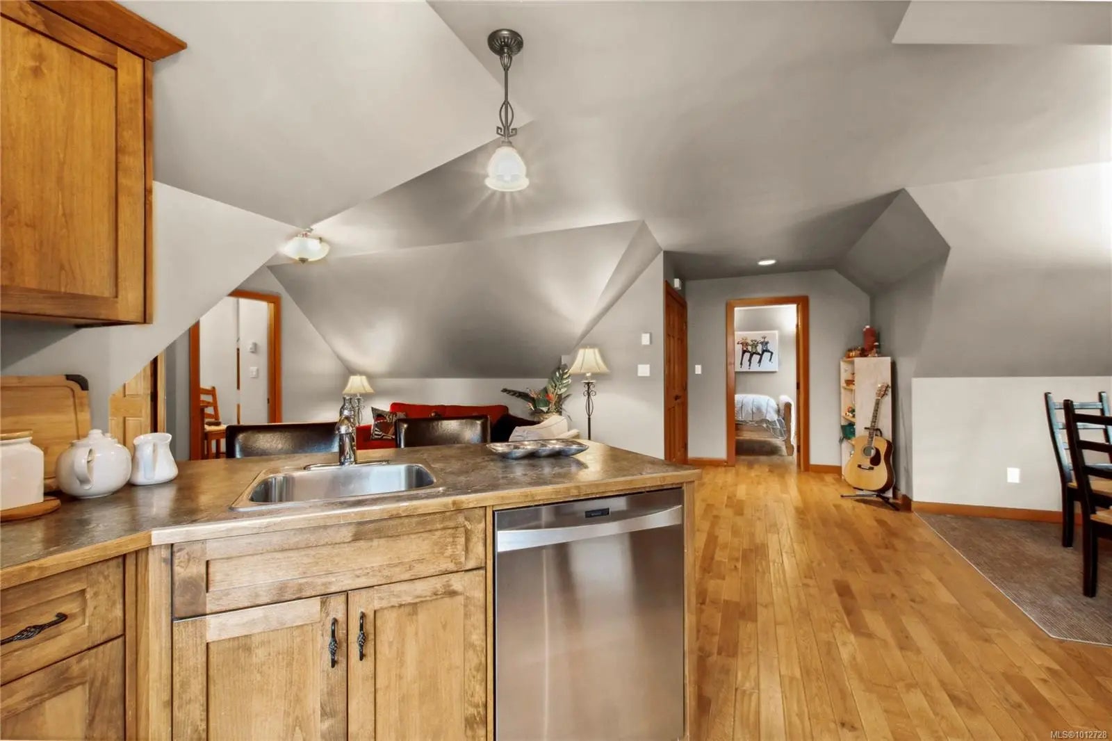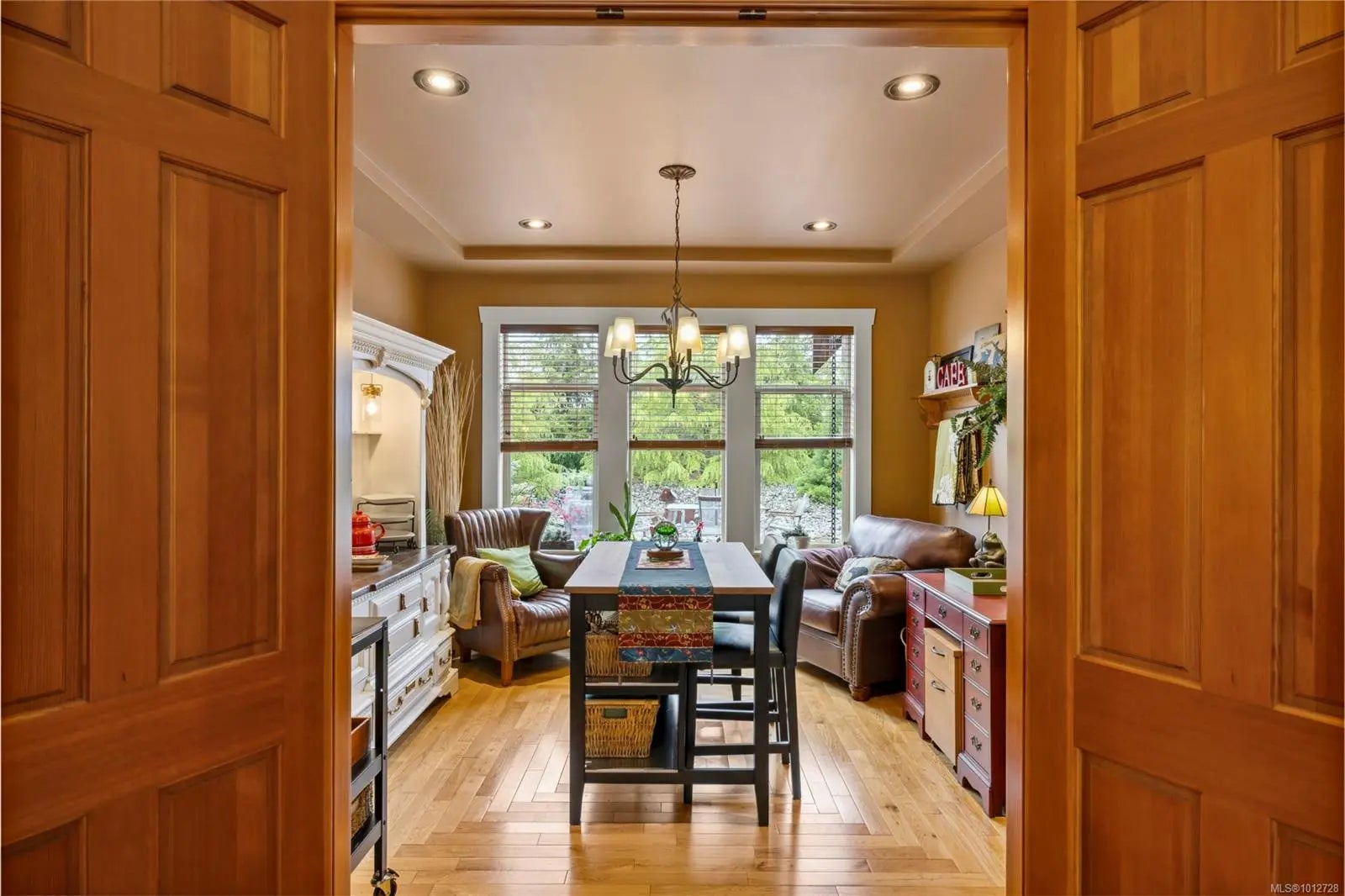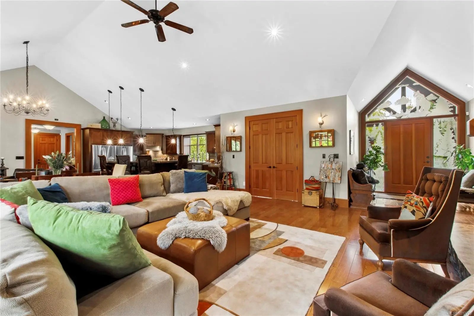 Set on nearly 3 acres in prestigious Benson Meadows, this custom-built estate offers exceptional privacy, craftsmanship & functionality. The 3-bedroom + den main home showcases timber accents, vaulted ceilings, a dramatic K2 stone fireplace & a chef’s kitchen with cherry cabinetry, dual ovens, walk-in pantry, and seamless flow to a 1,200 sq ft covered patio — perfect for year-round entertaining. The luxurious primary suite features a spa-inspired ensuite, fireplace, & private hot tub access. A separate guest wing includes a bedroom with ensuite & private lounge. Energy-efficient design, triple garage, massive crawlspace, heated tile floors & hot water on demand add convenience & comfort. A detached 2-bed carriage home sits above a 4-bay over-height shop — ideal for hobbyists, extended family or rental income. Fully fenced with dual driveways, beautifully landscaped yards, a bunkie, RV parking & direct trail access to Ammonite Falls and Mount Benson — just 15 mins from all amenities.