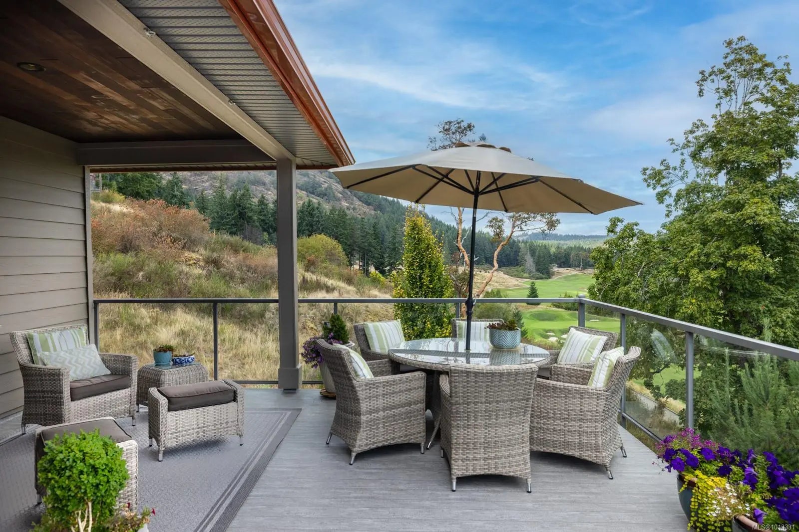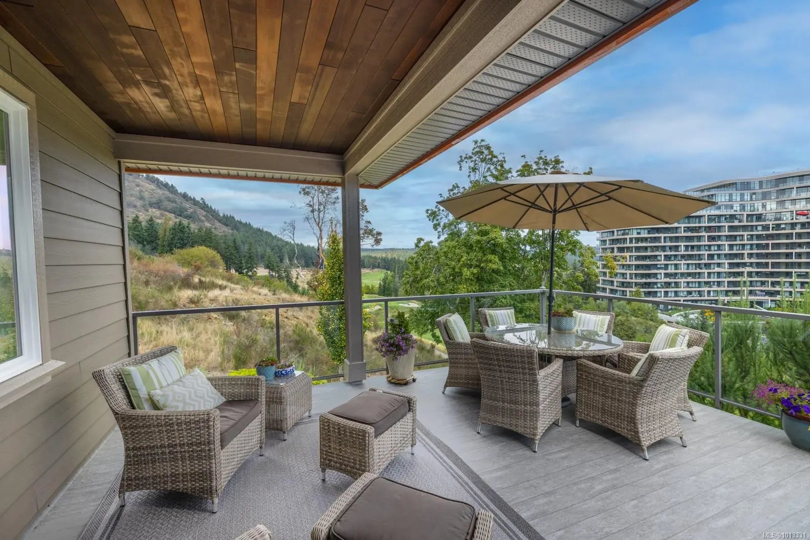 OPEN HOUSE Sunday November 9th, 2-4pm...Experience unparalleled craftsmanship in this West Coast contemporary residence on Bear Mountain, ideally positioned at the end of a private cul-de-sac with sweeping views of the Jack Nicklaus–designed 18th fairway & green. Offering 3,381sqft, 3 beds + office & 4 baths, the home is filled with refined finishes: 12’ ceilings, oak flooring, custom millwork, quartz counters, heated tile, & solid fir accents. The gourmet kitchen opens to a light-filled great rm w/gas FP, while a custom wine cellar sets the stage for elegant entertaining. The primary suite impresses w/walk-in & spa-inspired ensuite; a 2nd primary suite, family rm, 2nd kitchen, & guest quarters are found on the lower level. Multiple decks & professionally landscaped gardens frame the stunning golf course backdrop. $150,000 renovation completed in the last couple of years. A $60K golf membership completes this rare offering designed for those seeking luxury & lifestyle.