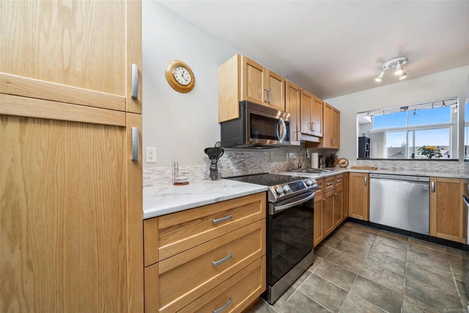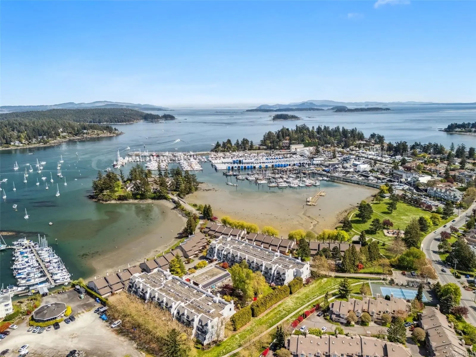 This top-floor, two-level suite is located in the picturesque Resthaven by the Sea—an oceanfront complex nestled right next to the marina. This residence offers coastal tranquility and vibrant community amenities, just minutes from the heart of Sidney. The moment you step into this elegant condo, you'll fall in love with the vaulted ceilings, skylights, and expansive windows that flood the space with natural light and capture stunning southeast views of the marina and Mount Baker. The home includes 2 beds, 3 baths, fireplace, and den. The primary bedroom has a walk-in closet, ensuite and private deck. Enjoy your morning coffee or unwind in the evening on one of two large private decks overlooking lush gardens. The complex includes an indoor pool, hot tub, sauna, gym, shared BBQ, and billiards room. You're just moments from marinas, shops, restaurants, and easy access to the airport and ferries to the Gulf Islands, Vancouver, and the San Juan Islands.