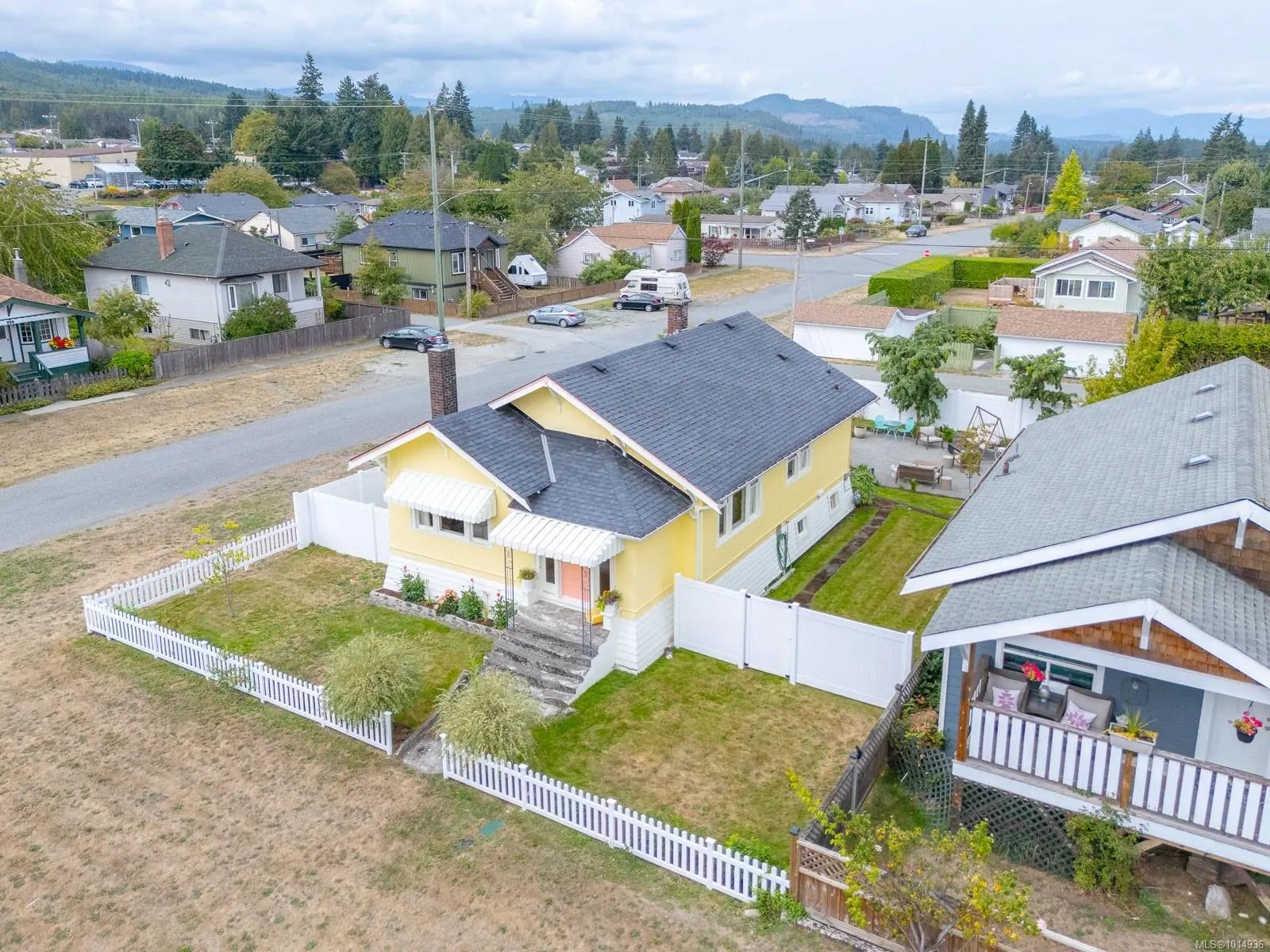 Step into timeless charm with this beautifully preserved Ladysmith character home, where vintage allure meets modern comfort. Warmth radiates from a cozy natural gas fireplace, complemented by a brand-new high-efficiency furnace. The kitchen blends old and new with a vintage-style gas range and sleek electric fridge, while the refreshed bathroom boasts custom fixtures and a tiled shower. Fresh paint inside and out enhances original details like period-style (new) switches, vintage-inspired lighting, and custom drapery. Outside, relax on the poured concrete patio surrounded by lush landscaping, full irrigation, and hundreds of spring bulbs poised to bloom. A flat, fully fenced 7,200 sq ft corner lot offers ample parking and privacy. Just a short walk to the pool, rec centre, schools, and restaurants, this home delivers character, comfort, and walkable convenience in one irresistible package.