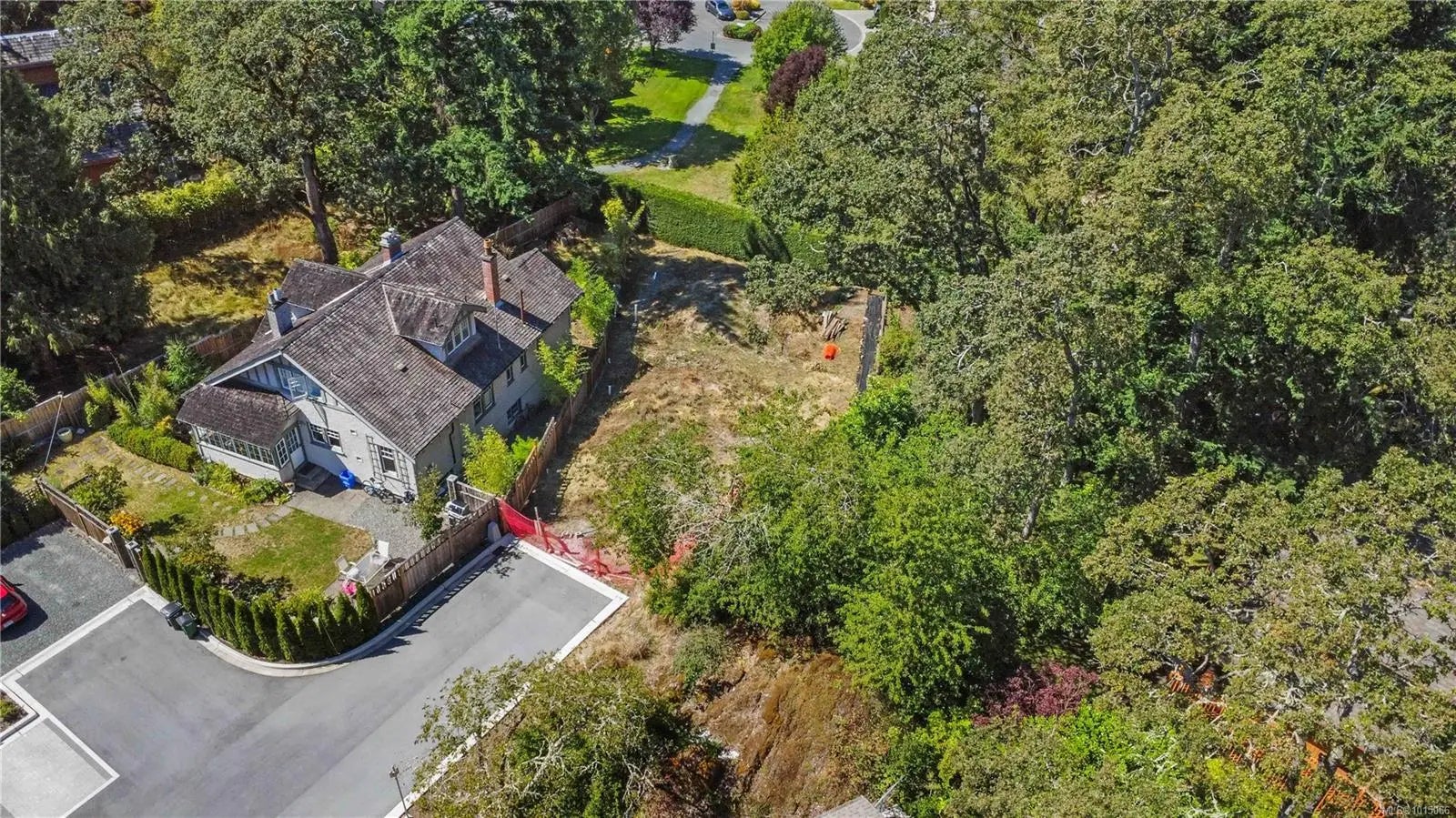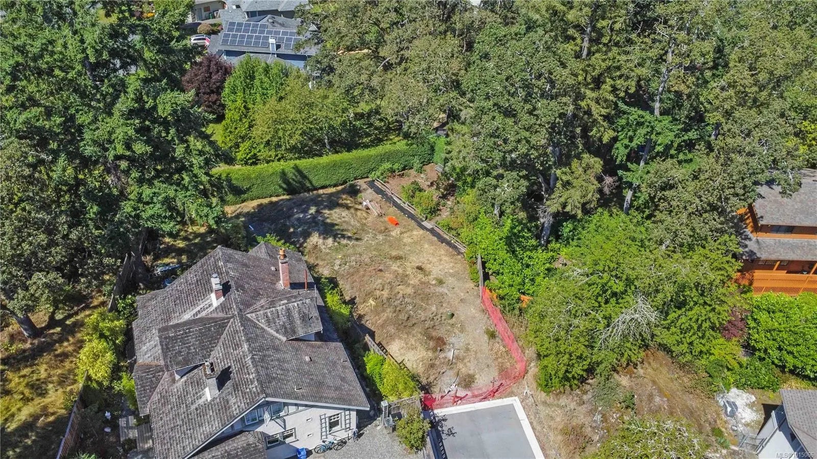 Nestled at the end of a quiet private lane, this 6,000+ sf lot offers a rare combination of sun, privacy, and natural beauty. Backing onto Rogers Court Park, the property enjoys a peaceful buffer of green space and natural landscaping for a serene garden retreat. With only one other home sharing the road, it feels secluded yet connected. This lot slopes down to the rear and lends itself to a level entry home. There are vibrant sunsets and westerly views toward the Sooke from this lot. Nearby are parks, Galloping Goose and Christmas Hill trails, access to major transit routes, shops, and restaurants. Families will appreciate the proximity to excellent schools, including Rogers Elementary. This fully serviced bare-land strata lot is zoned RS-6 (SSMUH eligible) and is an exceptional site to design and build your dream home.