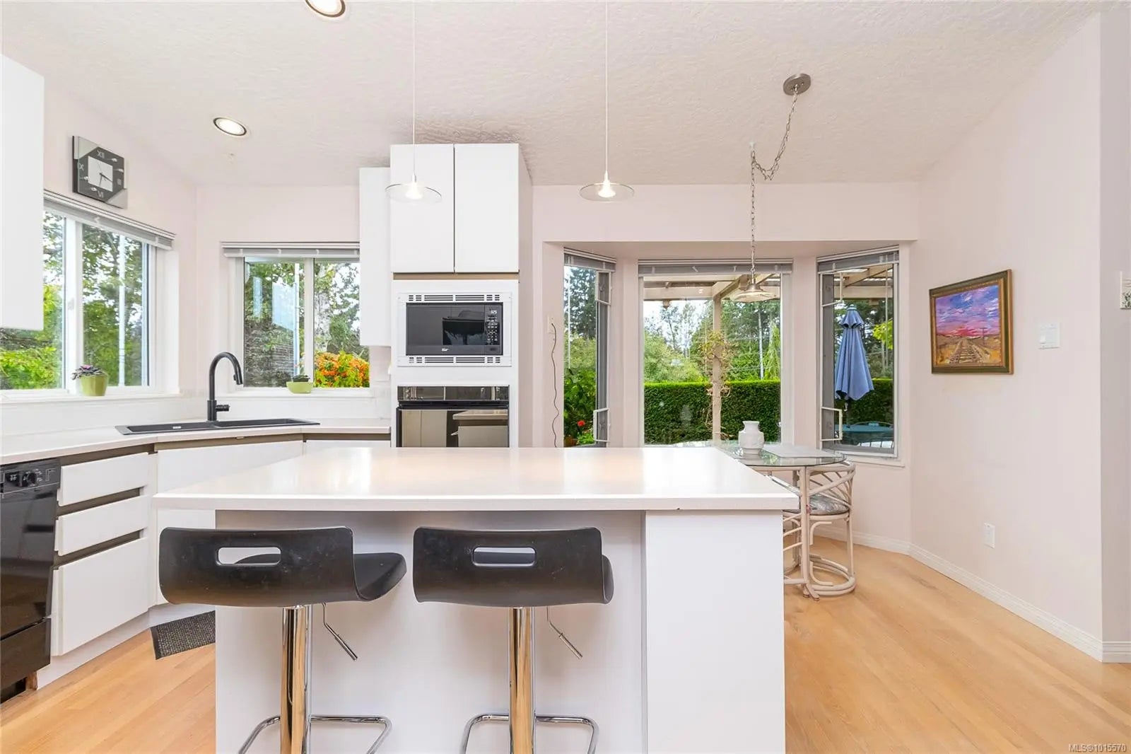 First time available in 25 years, located in the Uplands neighborhood of 55+ Arbutus Ridge for this light and airy home with vaulted ceilings and 4 skylights. Main level living with an ideal floorplan has 2 bedrooms, 2 bathrooms, plus a den, as well as a separate flex room downstairs. This checks all the boxes for everyday convenience plus entertaining. The separate living room has distant views to Salt Spring Island and the ocean. Separate dining room. The cozy family room adjacent to the kitchen has a natural gas fireplace, and opens onto the private back patio ~ sun drenched with south facing views of the first fairway on the Arbutus Ridge Golf course. The tranquil primary bedroom is located on the back of the house. This well loved home is an absolute gem.