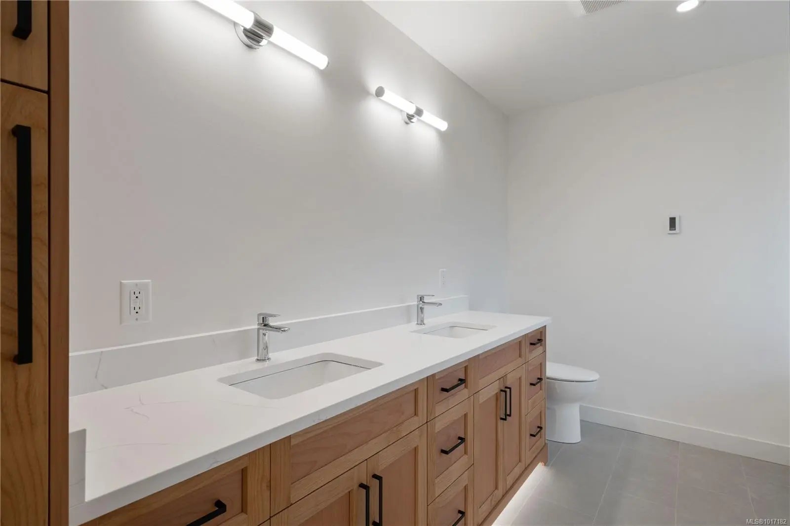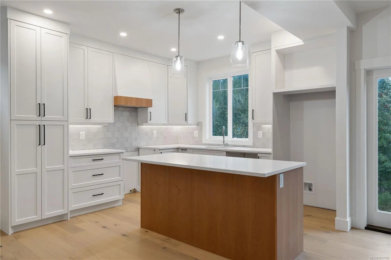 *GST REBATE* Modern 5-bed, 3.5-bath home including 2 bed legal suite, crafted by Mid-Island Homes. This newly constructed home spans just over 3000 sqft and boasts a spacious main living area with open concept kitchen, dining and living room areas. The kitchen features ample cabinetry, stone counters, stylish backsplash, and an eat-in center island with pendant lighting. Entertain guests or simply spend time at home with the family in the warmth of your electric fireplace during those winter evenings. A convenient 2 pc guest bathroom and mudroom, with access to your 2 car garage, round out the main level. Upstairs, the luxury primary suite features a spa-like ensuite with tile shower, vanity sinks, soaker tub, and WI closet. A bonus family room, two sizeable beds, a 4 pc bath and laundry complete the 2nd floor. The lower floor houses a generous 2 bed suite with separate entrance. Located a short drive to all major amenities. *Verify GST Rebate and GST* measurements are approximate.