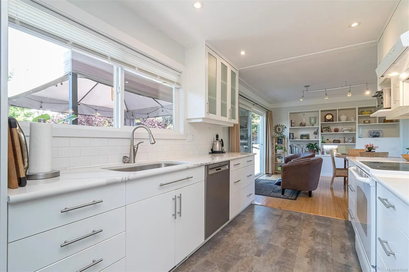 Charming and beautifully updated 4BD/2BA family home on a beautifully landscaped, level 0.35-acre lot in a country setting. Enjoy lush gardens, fruit trees & a true indoor/outdoor lifestyle. Recent updates include heat pump, furnace, A/C (2023), vinyl windows, roof (2017), large deck, and kitchen with quartz counters & more. The main level features a bright living room w/hardwood floors, cozy fireplace & large picture windows, plus a dining area w/built-in shelving & access to the scenic deck. Generous primary bdrm, 2nd bdrm & a 4pc bath complete this floor. The walk-out lower level offers a family room, 2 more bdrms, 4pc bath & laundry/mudroom, ideal for in-laws or an easy mortgage helper. Double garage w/upper storage, plus separate driveway for RV/boat parking. A gardener’s dream w/greenhouse & garden sheds. Meticulous & thoughtfully maintained for 36 yrs making it easy to call this home. Conveniently located near schools, shopping, parks, and rec center in the heart of Saanichton.
