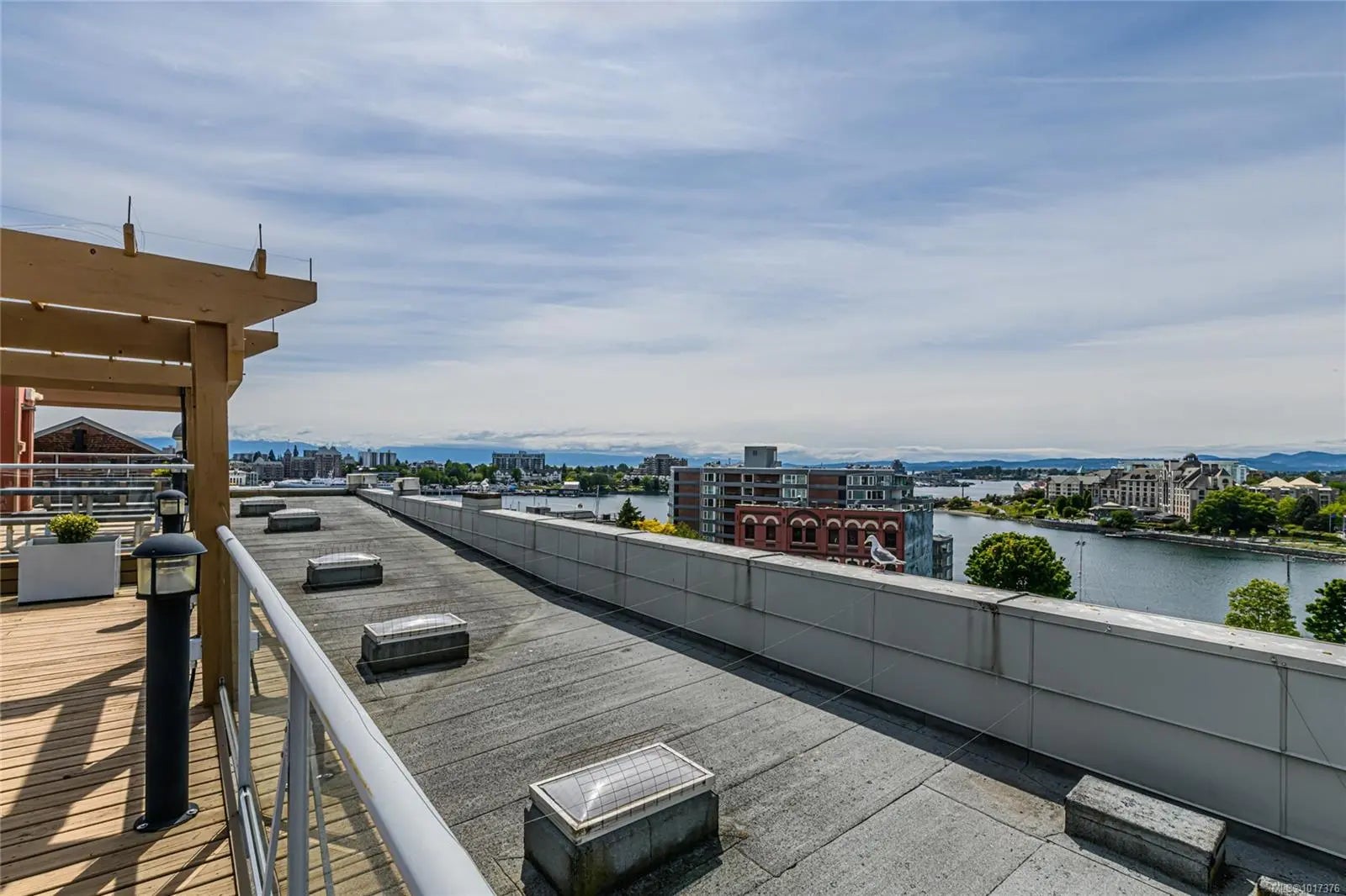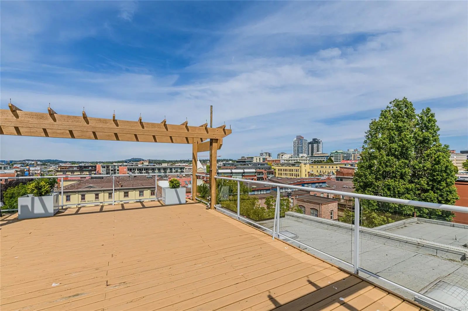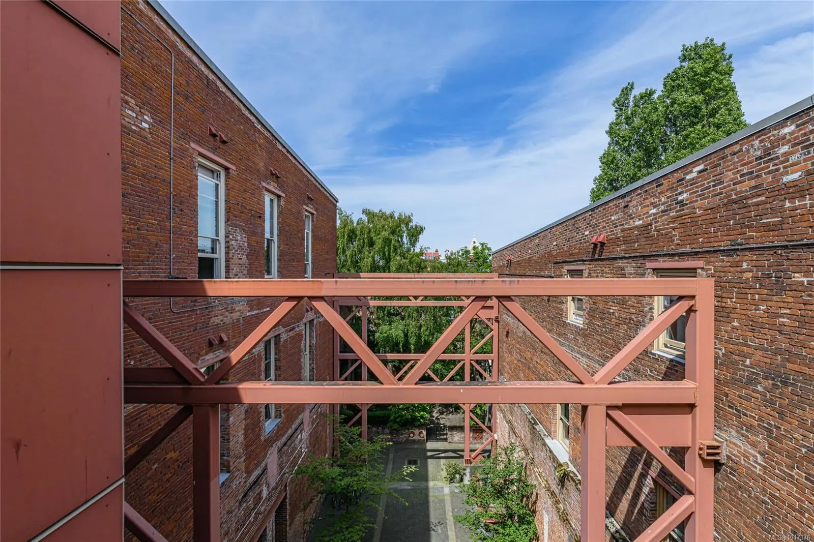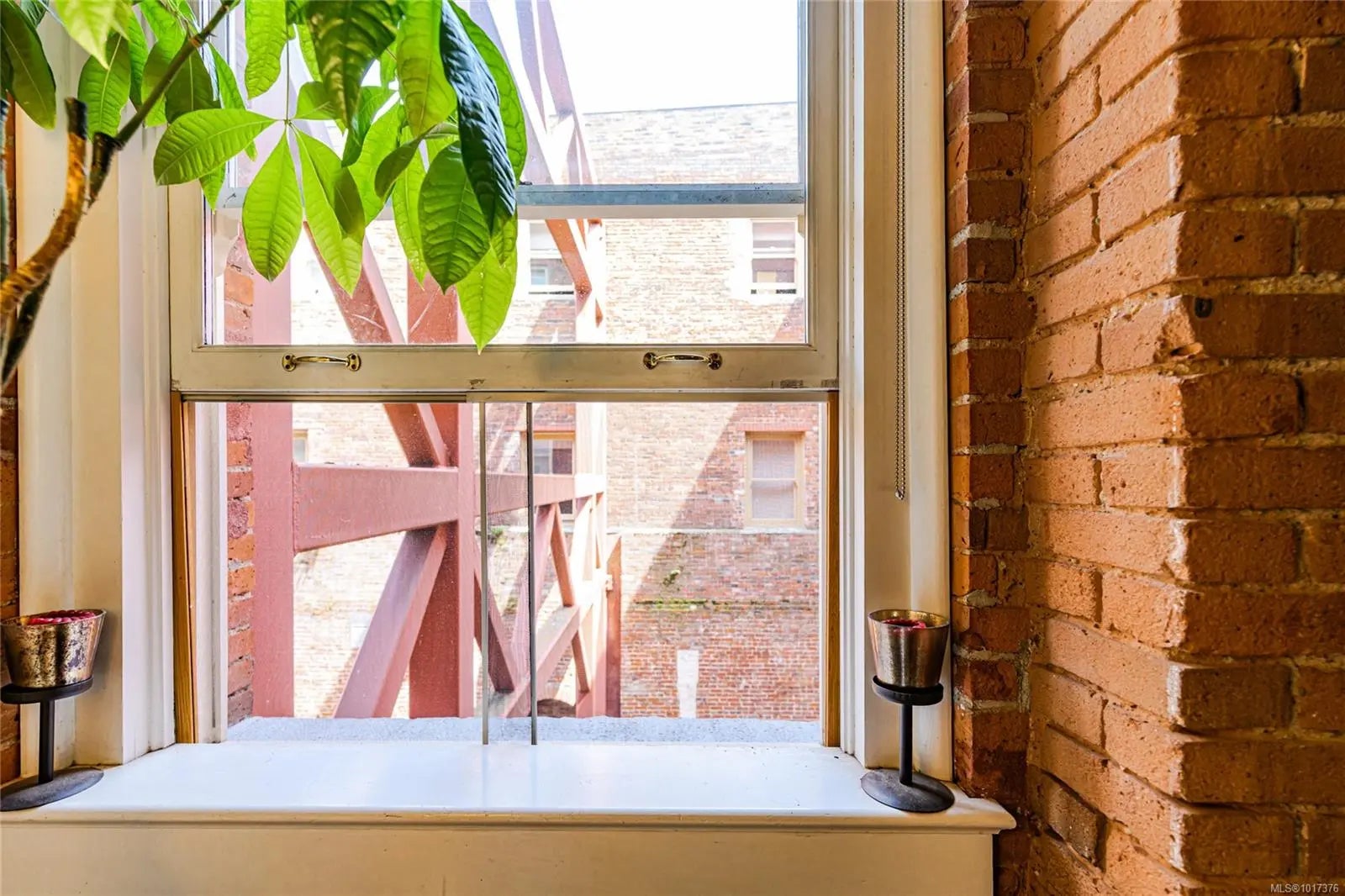 Welcome to The Leiser, a landmark brick building in the heart of Downtown Victoria. Originally built in 1896, this iconic structure was transformed in 2008, reimagined into stylish loft-style condos that beautifully fuse architectural character with contemporary finishes. The suite boasts nearly 14-foot ceilings adorned with a grand original window, framed in lovingly restored wood casings and meticulously restored brickwork. Inside, discover a chicly designed living space, in-suite laundry, and a modern kitchen with quartz countertops. Building amenities include bike storage, a separate storage locker, and a full rooftop patio offering breathtaking 360-degree ocean and city views. Just steps away from the stunning waterfront walkway, vibrant Oldtown, shops, restaurants, and attractions. This property invites you to embrace the walking and biking lifestyle while owning a piece of the city's rich history. Charming, convenient, and pets are welcome. Vacant and easy to show!