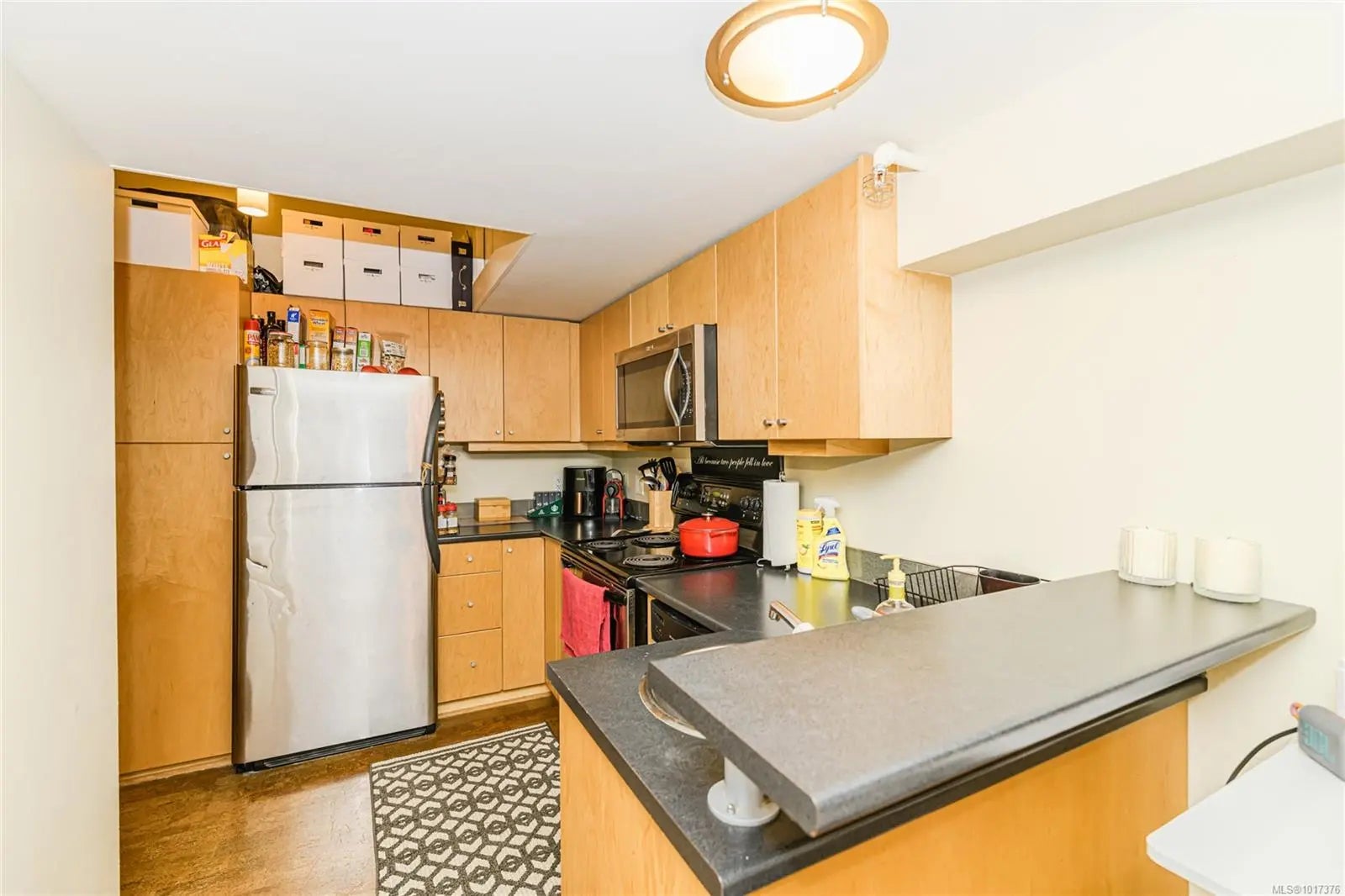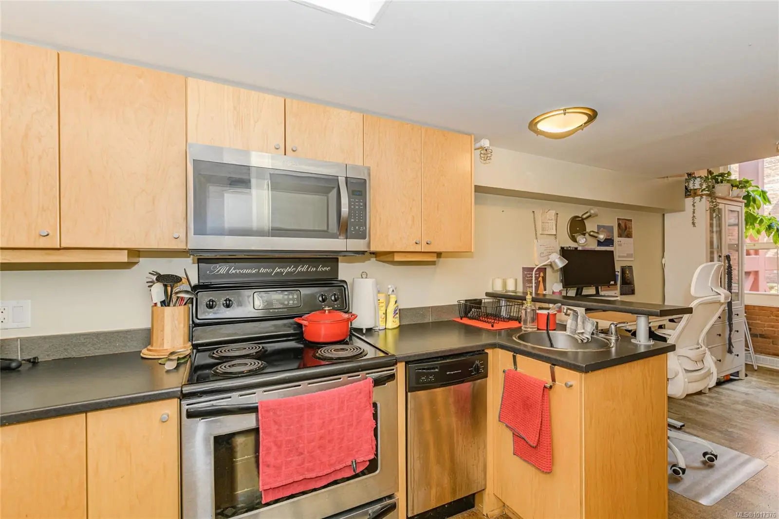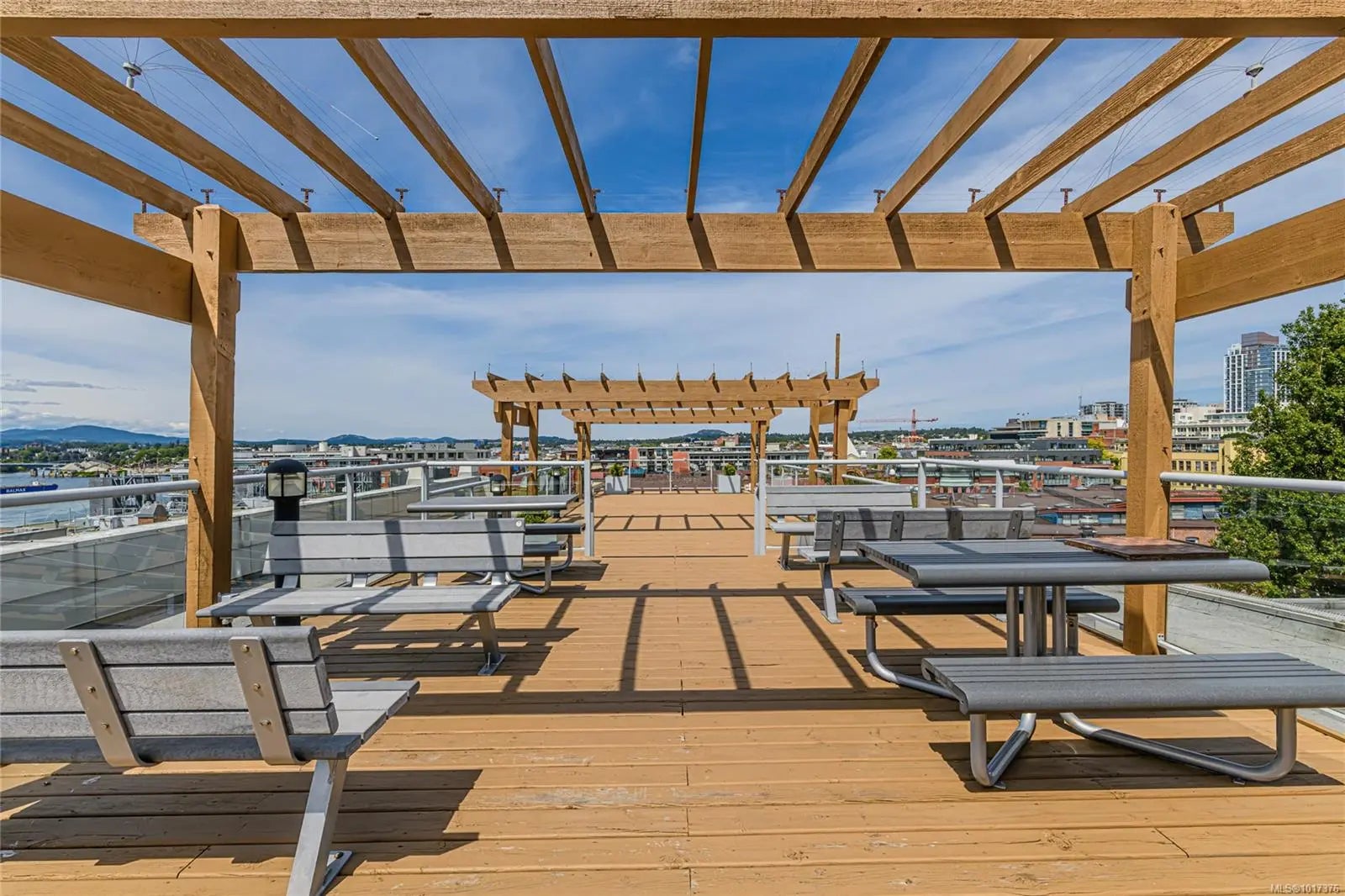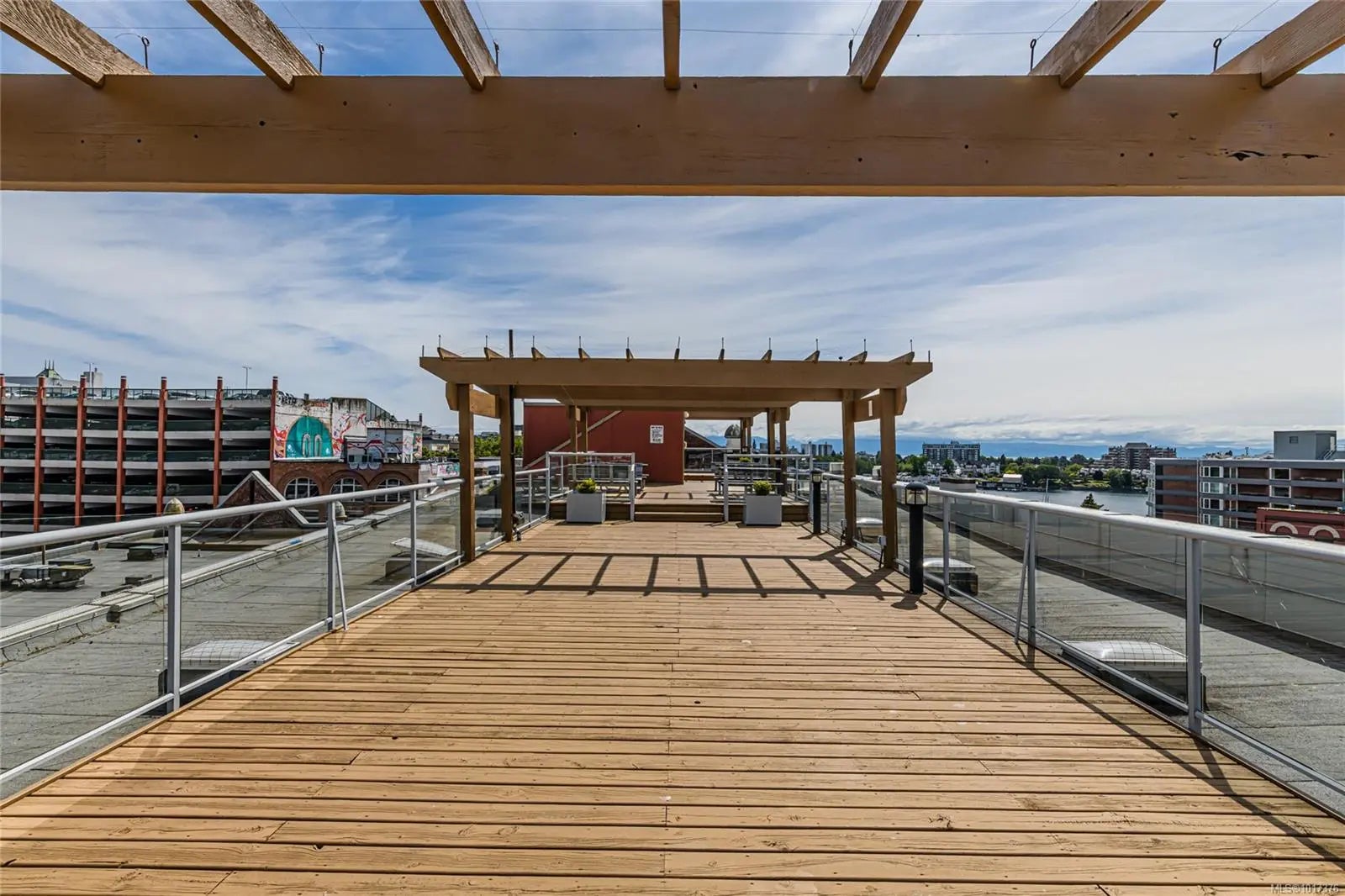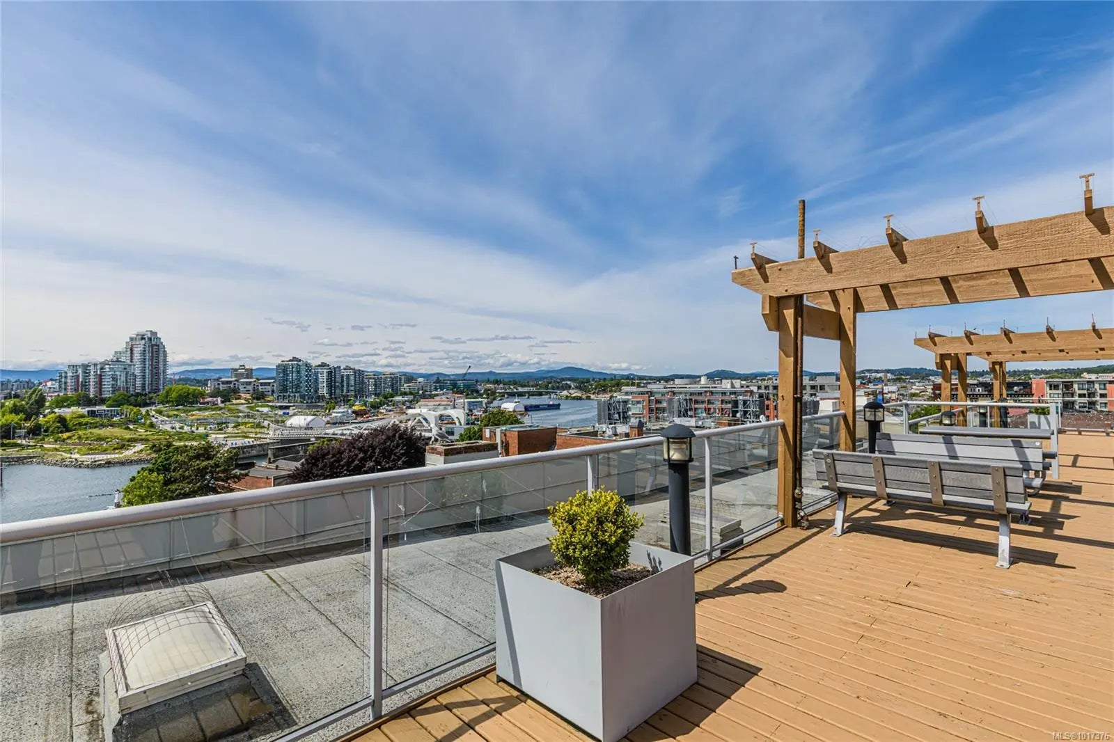 Welcome to The Leiser, a landmark brick building in the heart of Downtown Victoria. Originally built in 1896, this iconic structure was transformed in 2008, reimagined into stylish loft-style condos that beautifully fuse architectural character with contemporary finishes. The suite boasts nearly 14-foot ceilings adorned with a grand original window, framed in lovingly restored wood casings and meticulously restored brickwork. Inside, discover a chicly designed living space, in-suite laundry, and a modern kitchen with quartz countertops. Building amenities include bike storage, a separate storage locker, and a full rooftop patio offering breathtaking 360-degree ocean and city views. Just steps away from the stunning waterfront walkway, vibrant Oldtown, shops, restaurants, and attractions. This property invites you to embrace the walking and biking lifestyle while owning a piece of the city's rich history. Charming, convenient, and pets are welcome. Vacant and easy to show!