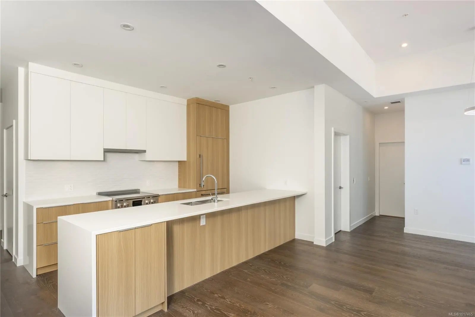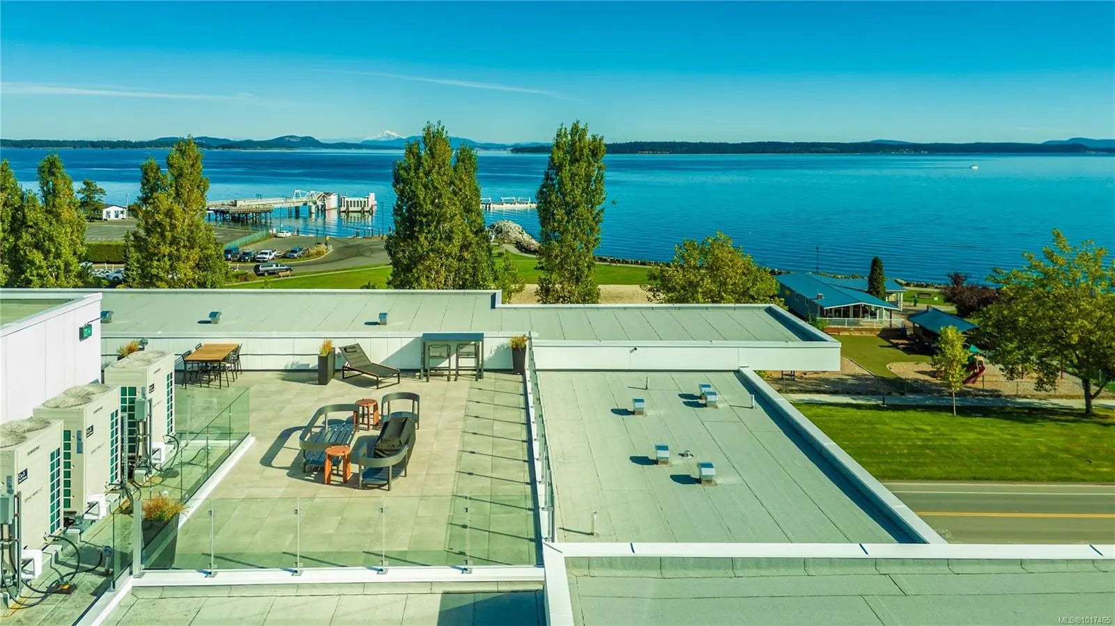 NO GST to Valentine's Day! 11 foot ceilings and three decks! A remarkable 2-bed top-floor corner Penthouse with magnificent ocean, mountain & city views. This thoughtfully designed residence offers an open-concept layout allowing natural light to fill the space. The gourmet kitchen features quartz waterfall countertops & a built-in Fisher & Paykel appliance package, perfect for both everyday living & entertaining. Spa-inspired bathrooms include floating vanities, tiled walk-in showers & deep soaker tub. Step outside to three decks totalling 365 square feet, including private decks off each bedroom and one from the living room with a fire pit, ideal for unwinding or hosting while taking in breathtaking views. Additional amenities include energy-efficient heating and cooling, home automation, underground Klaus parking, storage lockers, bicycle storage & a pet washing area. Relax on the rooftop patio with panoramic Haro Strait views or take a short stroll to the beach & Sidney’s downtown.