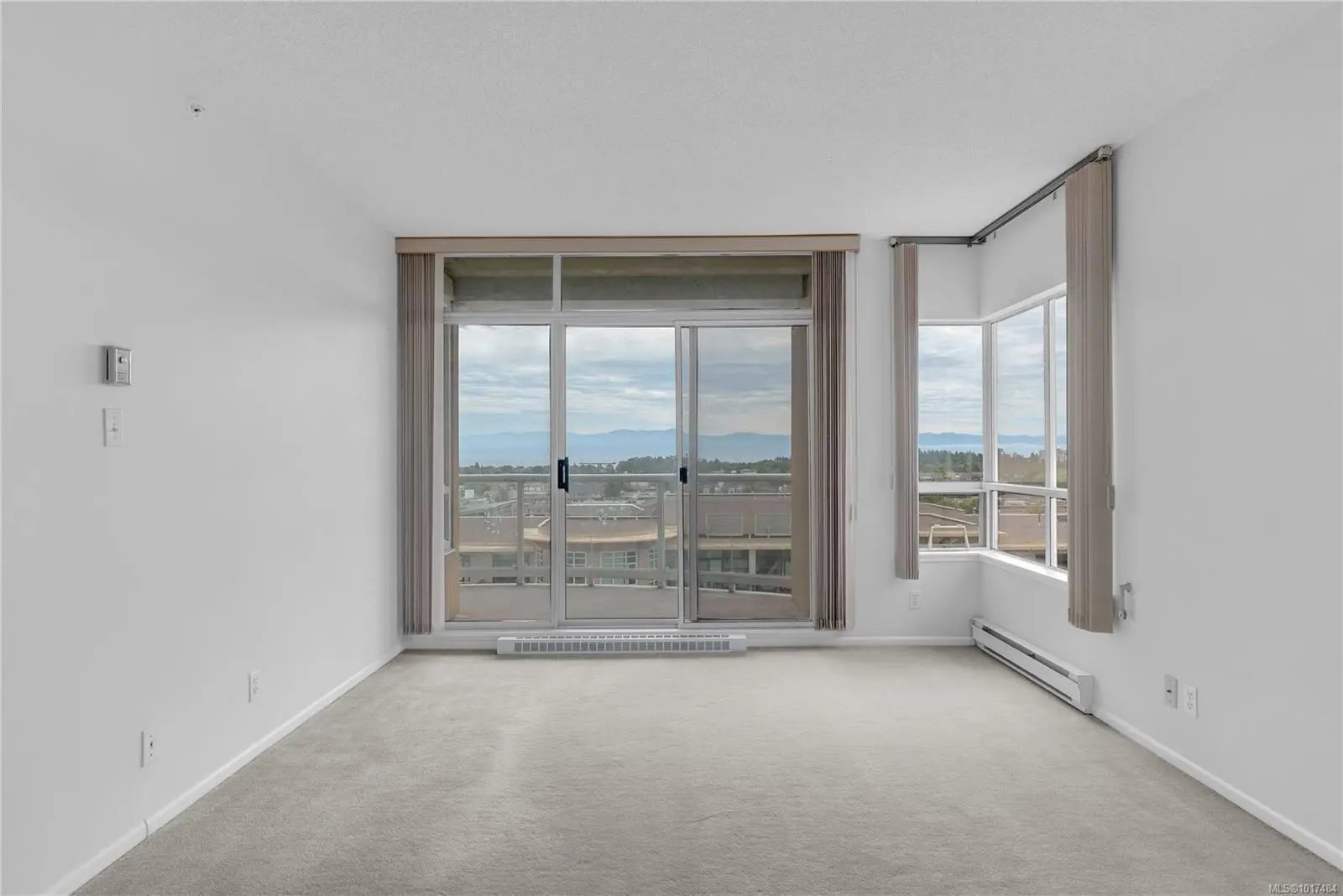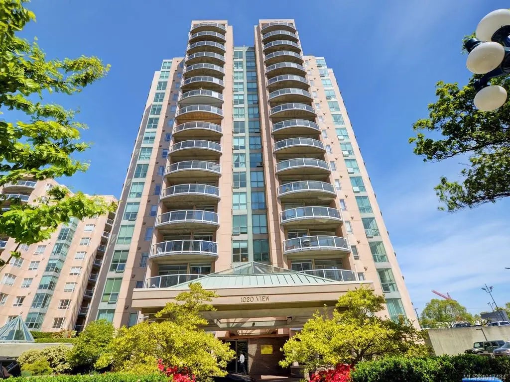 VIEWS, VIEWS, VIEWS! Set high above the city on the 13th floor of Regents Park, this south-facing 2-bedroom, 2-bath condo offers expansive views of the ocean, Olympic Mountains, and Victoria’s skyline. With over 1,100 sq ft of well-planned living space, the home features a thoughtful split bedroom layout, a spacious primary suite with walk through closet and ensuite, in-suite laundry, and a large balcony to take in the views. This well-managed steel and concrete building is pet friendly and includes secure underground parking, separate storage, a fitness centre, hot tub, and on-site caretaker, all just steps to groceries, local shops, dining, and the waterfront in the vibrant Harris Green neighbourhood.
