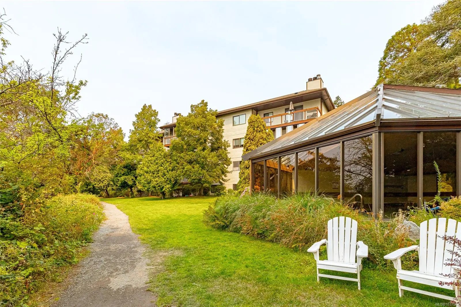 Hard to beat price! Top floor, spacious two bedroom, two bath condo just steps away from the Gorge Waterway. This 954 sq. ft. home offers maple cabinetry in an eat-in kitchen, separate dining room, wood burning fireplace in the living room, in-suite laundry, and tasteful cedar wainscotting features in the bedroom and walk-in closet. Seasonal water views from the balcony. This well managed complex (with on-site manager) offers many amenities: meeting room, swimming pool, hot tub, sauna and tennis courts so you can throw that costly gym membership away!