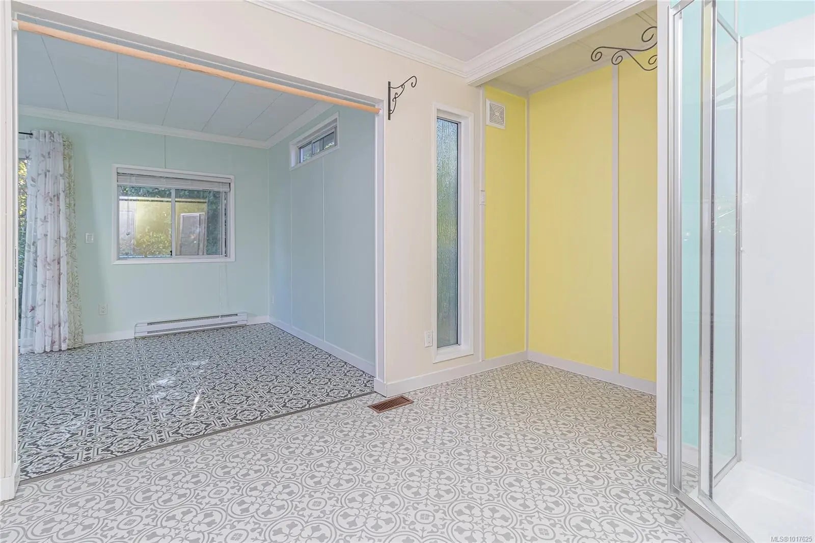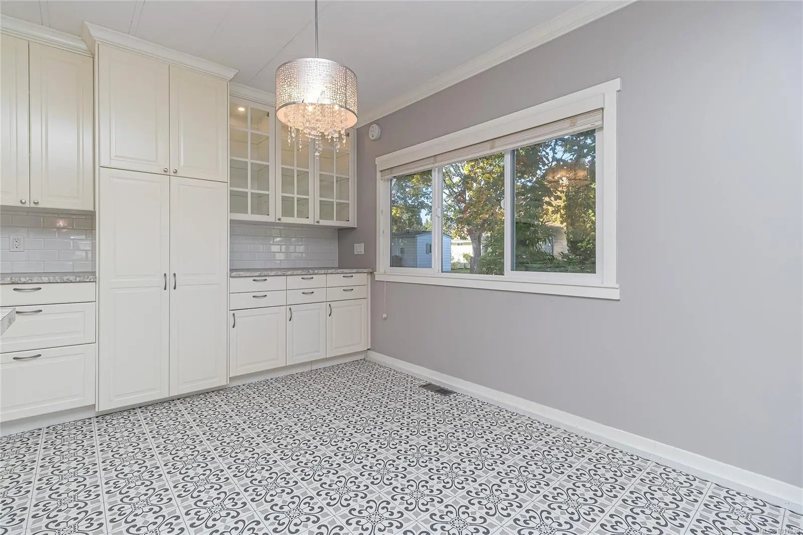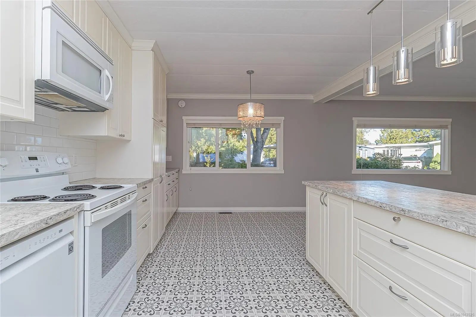 Welcome to Summergate Village, a sought-after 55+ Bareland Strata community of 235 homes. Set on a 3,196 sq ft lot, this beautifully updated 2-bed, 2-bath one-level residence is a wonderful alternative to condo living, offering comfort, privacy, and ease. Enjoy a huge new kitchen featuring endless storage with drawers, cupboards, and a built-in pantry. The open-concept living and dining area is bright and inviting, enhanced by crown mouldings and quality wood blinds. Recent improvements include new flooring, interior paint, and a private deck backing onto the forest—ideal for relaxing or entertaining. A new exterior shed provides added space for tools or hobbies. Year-round comfort comes from an efficient heat pump, while updated plumbing, wiring, and vinyl windows offer peace of mind. Low strata fee of $327/month. Enjoy vibrant amenities including a heated indoor pool and hot tub, community hall with daily activities, library, games room, and meeting space.