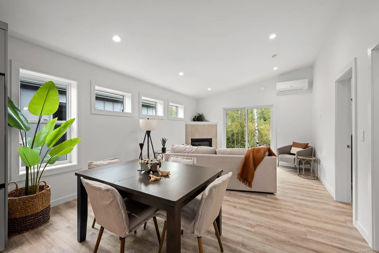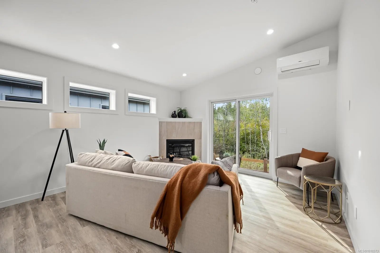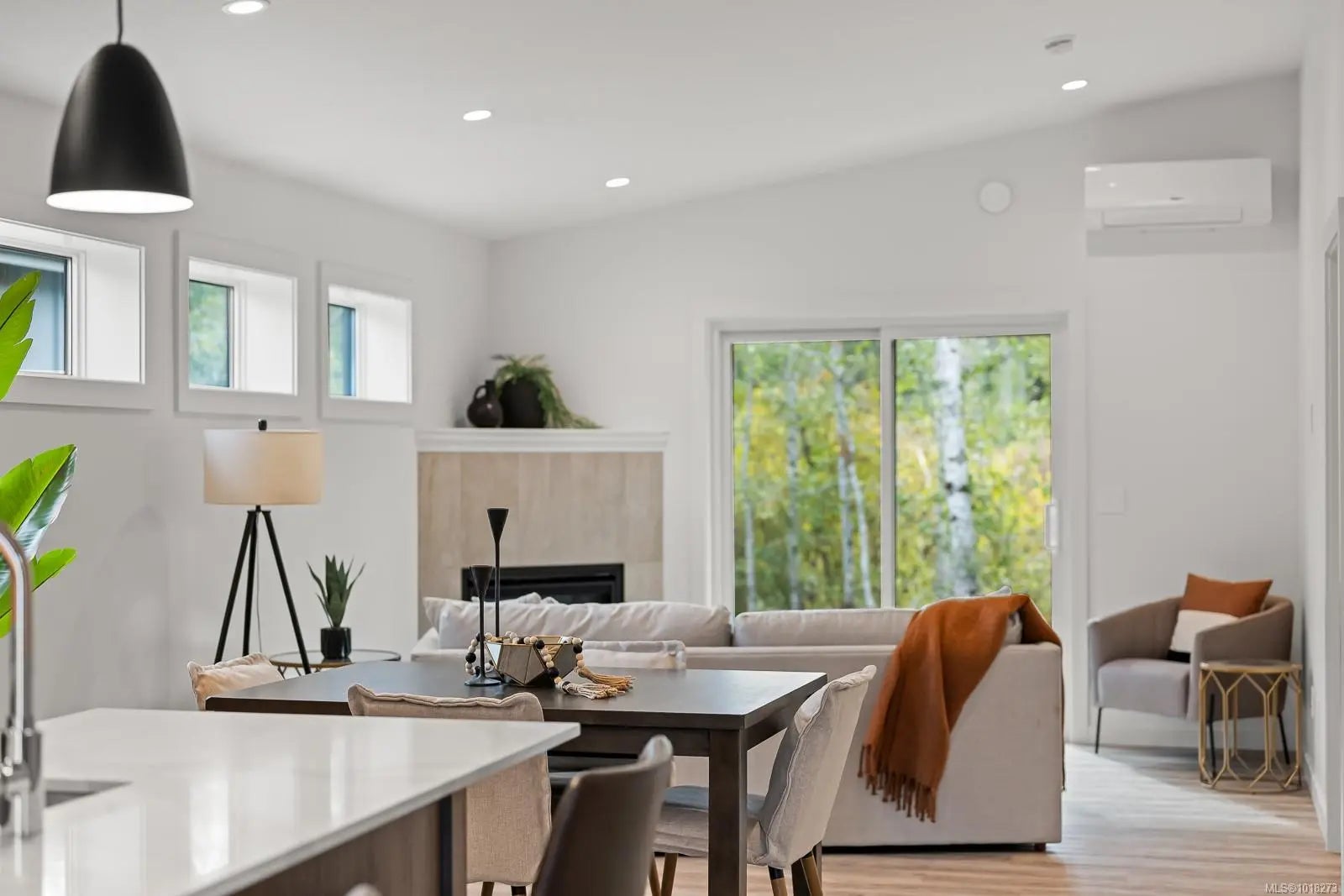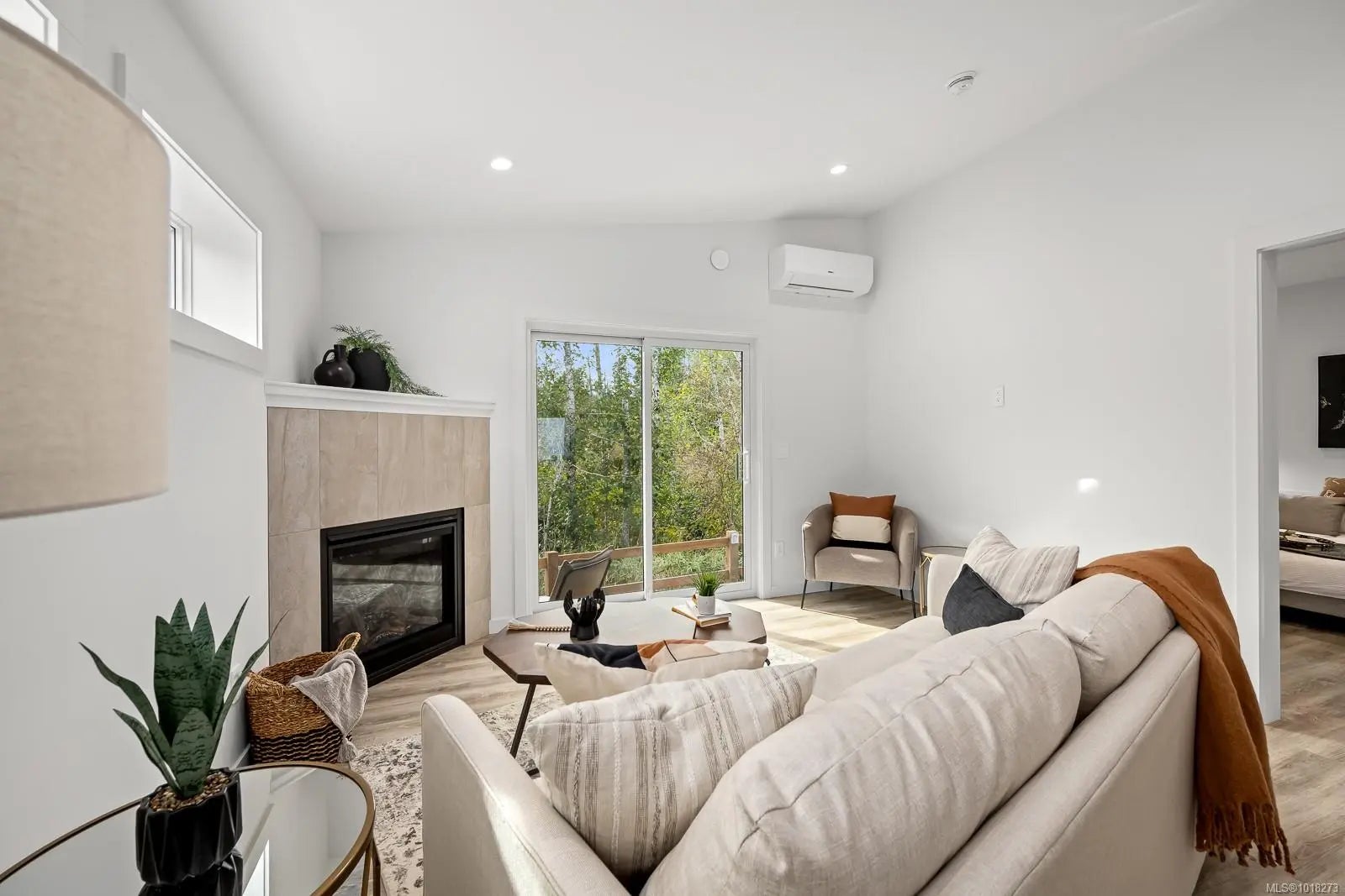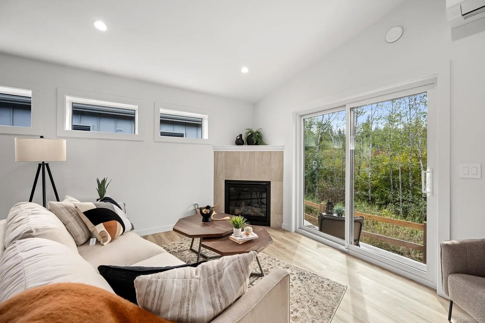 Welcome to our newest layout and our newest show suite, The Williamson. It is 1,130 sq ft, and has 2 bedrooms, 2 bathrooms and a very flexible den space. The Williamson has a fantastic open concept design with a Kitchen, Dining, Living and Outdoor space all in a convenient flow. The kitchen island is long and perfect for entertaining family and friends. Relax in the vaulted ceilings whilst enjoying the warmth and coziness of the natural gas fireplace. In addition the heat pump will heat and cool efficiently. The rear private patio is your sanctuary to unwind and enjoy nature and forest views. The primary bedroom features a large built-in closet with two sliding doors and access to a serene 3 piece ensuite. Don't forget the laundry room and upper cabinet storage. The den offers so much potential as an office, exercise, hobby or spare room. Check out our video walkthroughs and information at www.theflatsofcumberland.ca GST applies. Book your showing today