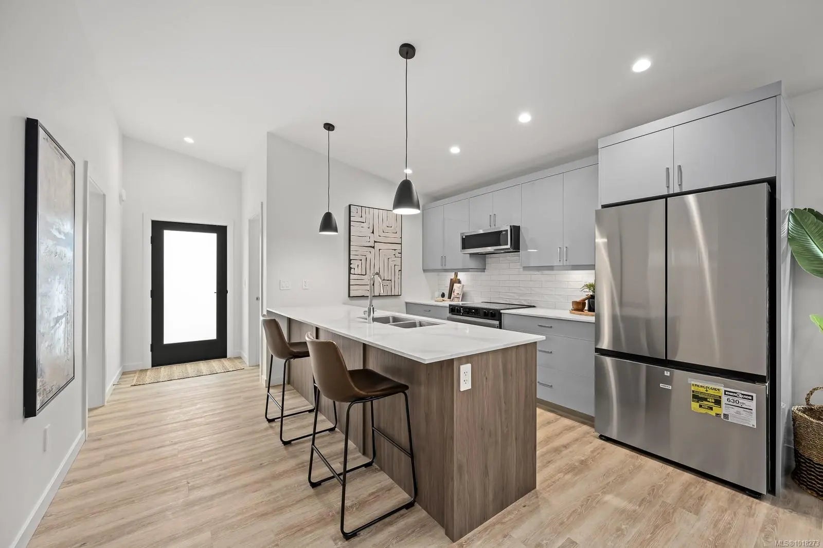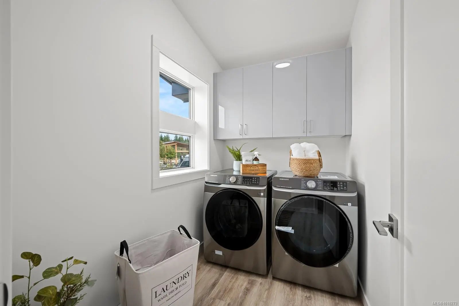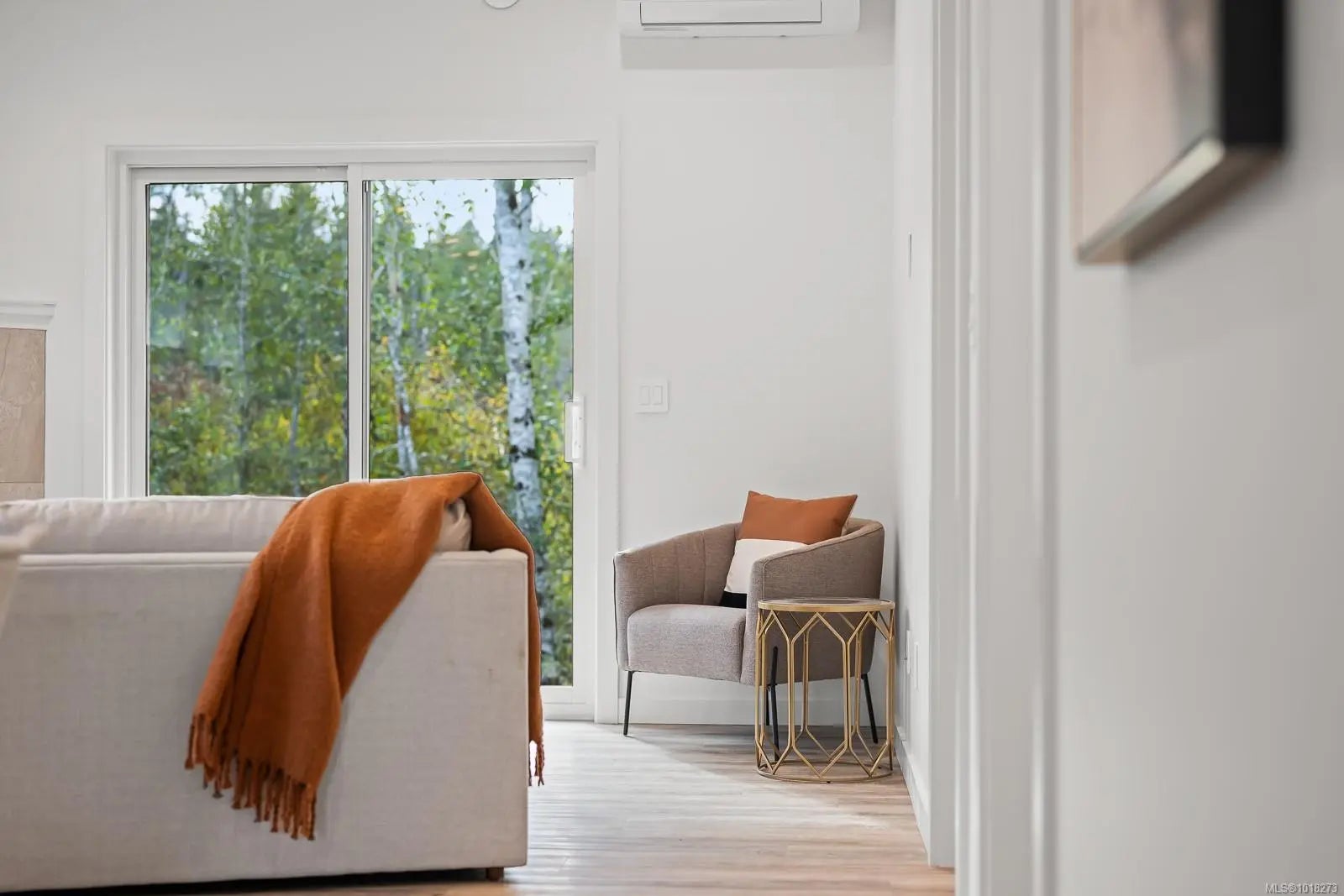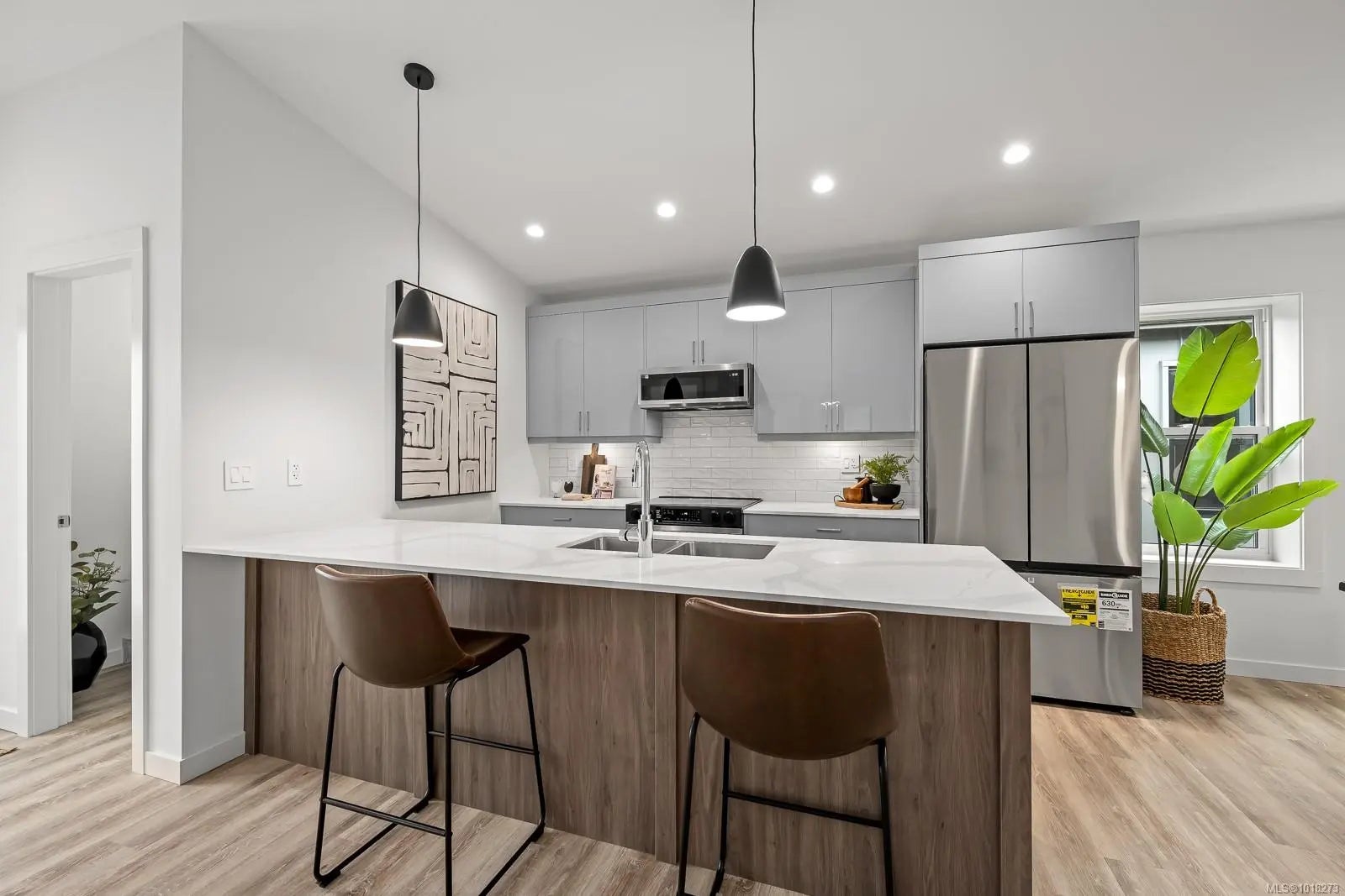 Welcome to our newest layout and our newest show suite, The Williamson. It is 1,130 sq ft, and has 2 bedrooms, 2 bathrooms and a very flexible den space. The Williamson has a fantastic open concept design with a Kitchen, Dining, Living and Outdoor space all in a convenient flow. The kitchen island is long and perfect for entertaining family and friends. Relax in the vaulted ceilings whilst enjoying the warmth and coziness of the natural gas fireplace. In addition the heat pump will heat and cool efficiently. The rear private patio is your sanctuary to unwind and enjoy nature and forest views. The primary bedroom features a large built-in closet with two sliding doors and access to a serene 3 piece ensuite. Don't forget the laundry room and upper cabinet storage. The den offers so much potential as an office, exercise, hobby or spare room. Check out our video walkthroughs and information at www.theflatsofcumberland.ca GST applies. Book your showing today
