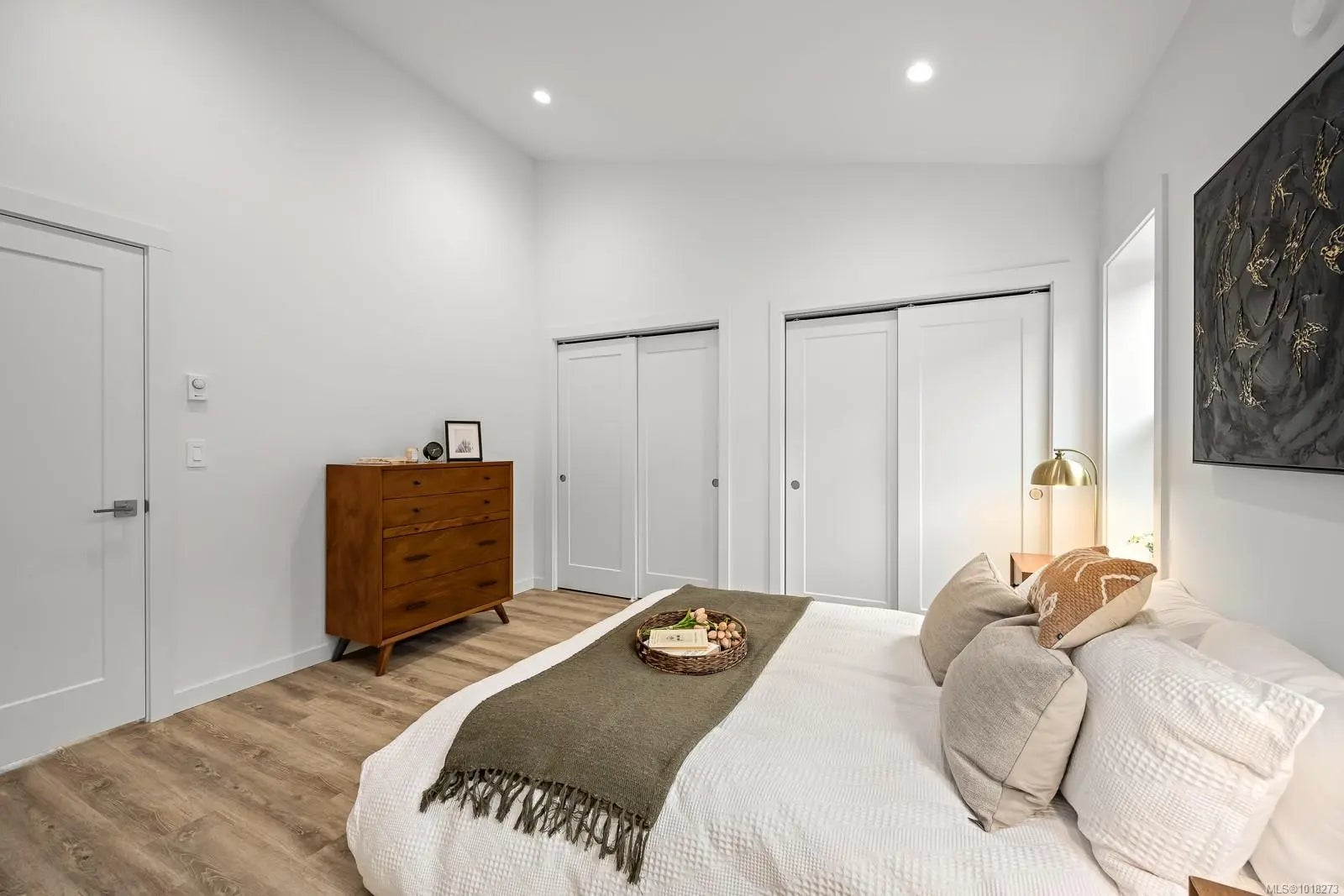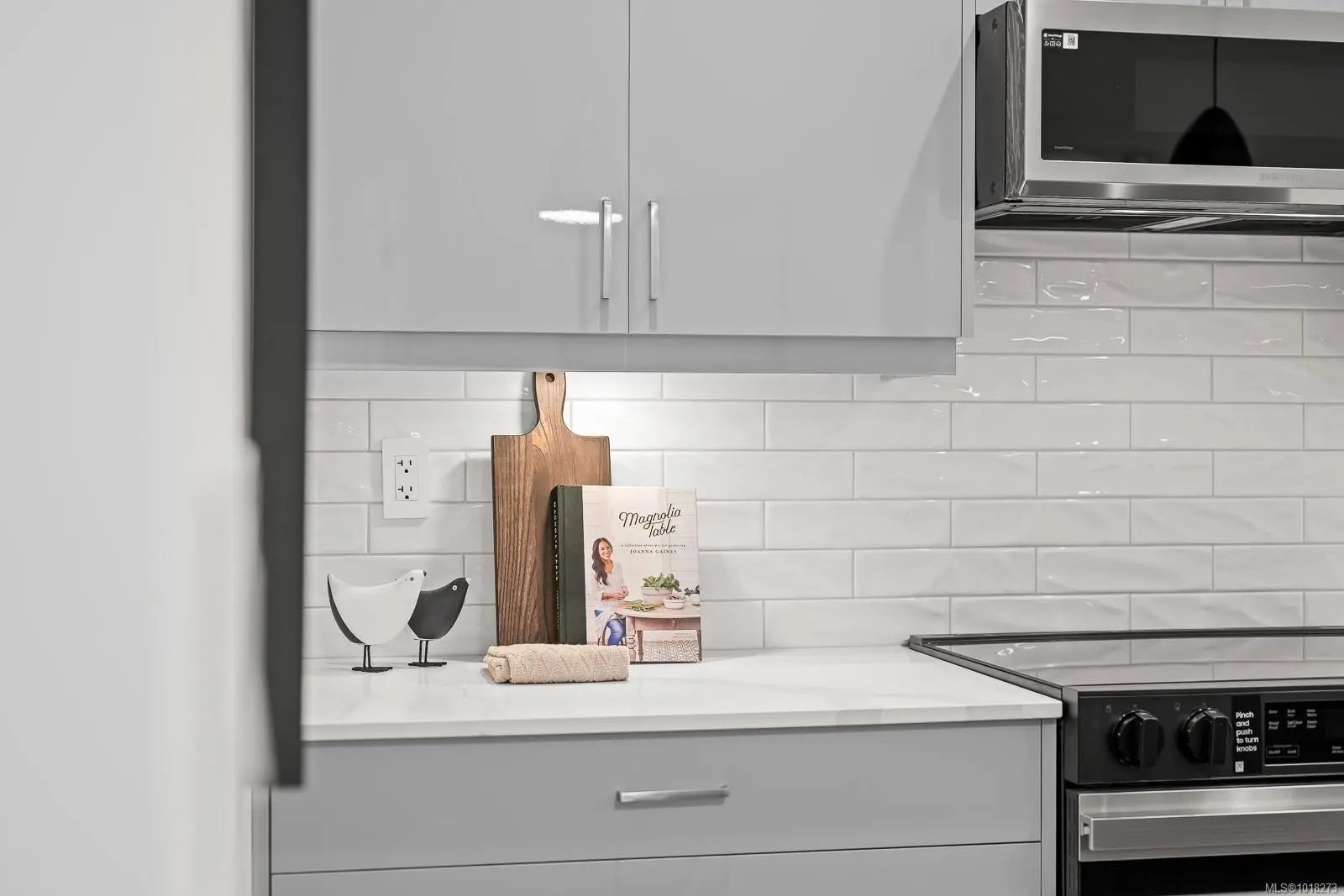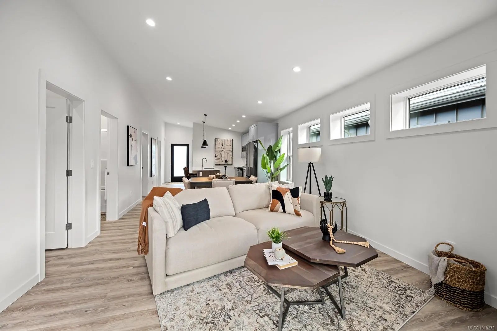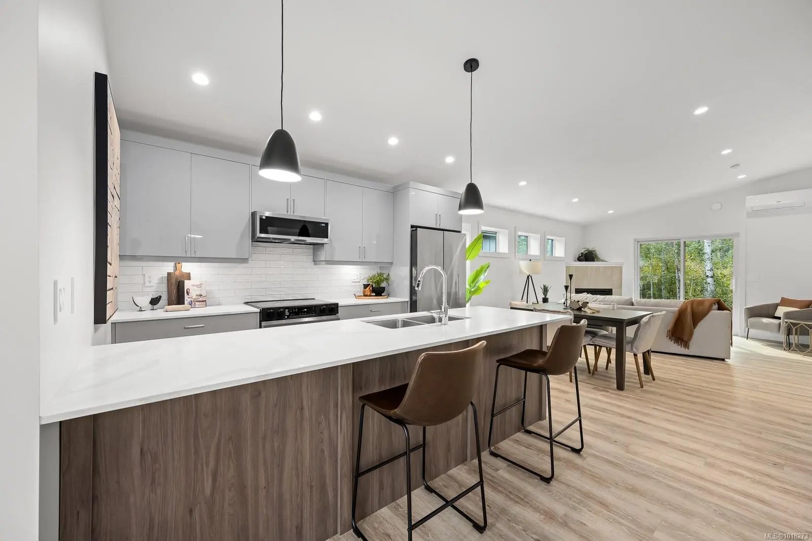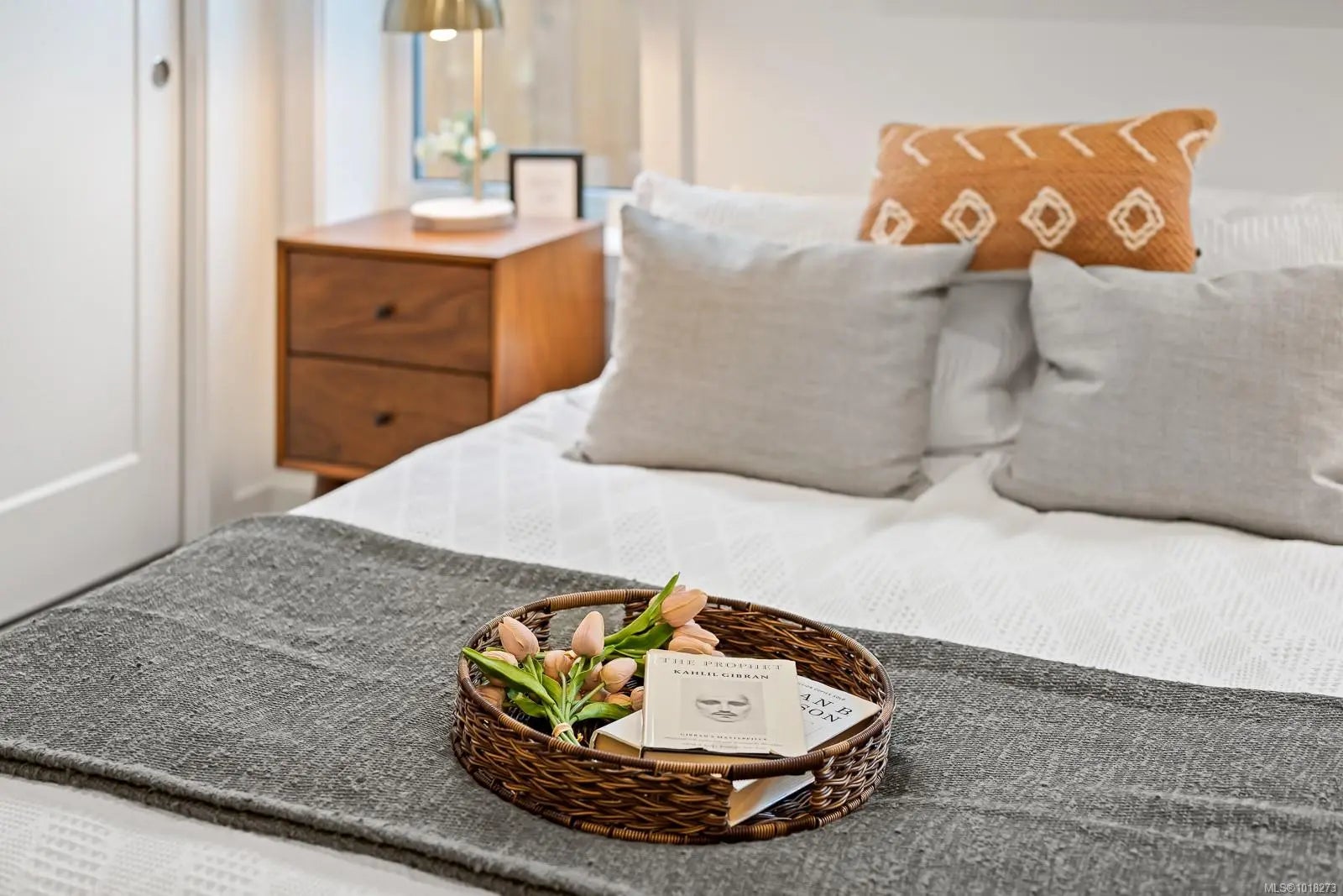 Welcome to our newest layout and our newest show suite, The Williamson. It is 1,130 sq ft, and has 2 bedrooms, 2 bathrooms and a very flexible den space. The Williamson has a fantastic open concept design with a Kitchen, Dining, Living and Outdoor space all in a convenient flow. The kitchen island is long and perfect for entertaining family and friends. Relax in the vaulted ceilings whilst enjoying the warmth and coziness of the natural gas fireplace. In addition the heat pump will heat and cool efficiently. The rear private patio is your sanctuary to unwind and enjoy nature and forest views. The primary bedroom features a large built-in closet with two sliding doors and access to a serene 3 piece ensuite. Don't forget the laundry room and upper cabinet storage. The den offers so much potential as an office, exercise, hobby or spare room. Check out our video walkthroughs and information at www.theflatsofcumberland.ca GST applies. Book your showing today