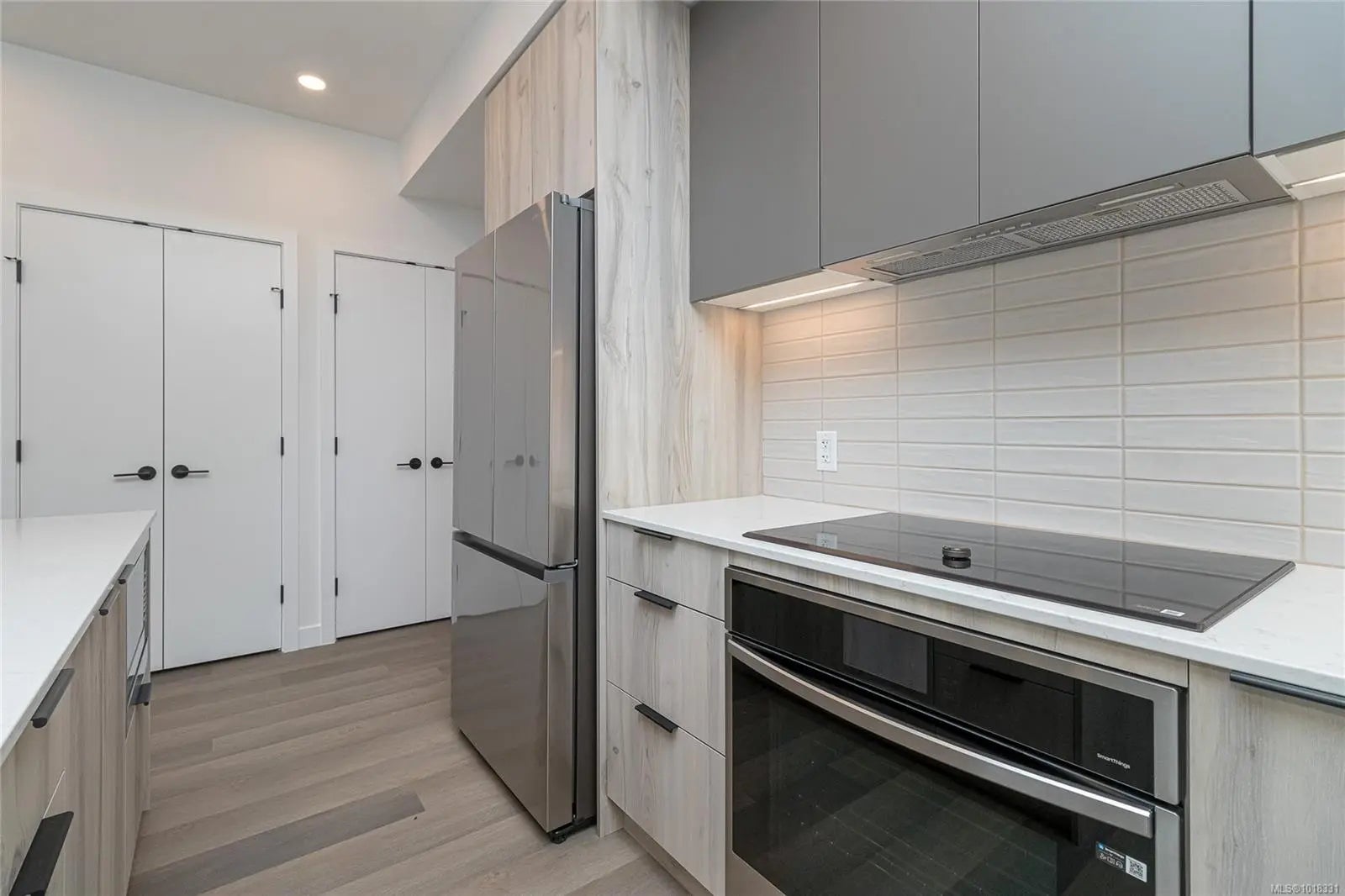 GST INCLUDED and TWO PARKING SPACES with EV CHARGERS! Experience the best of Royal Bay living — just steps from the ocean and surrounded by parks, trails, and vibrant community amenities. This bright and modern two-bedroom home offers an open-concept layout, abundant natural light, and a high-end kitchen perfect for entertaining. Unwind on your spacious balcony with unobstructed views, ideal for quiet evenings or morning coffee. At The Eliza, residents enjoy access to premium amenities including: A fully equipped fitness room, Social lounge for gatherings and events, Rooftop terrace with shared BBQs and ocean views, Community garden planters, Bike storage, and Pet-friendly wash station. Walk to The Commons for shopping, dining, and daily essentials — everything you need is right at your doorstep. Don't miss out! Don’t miss your chance to join this sought-after seaside community — and with no GST, there’s even more to love!