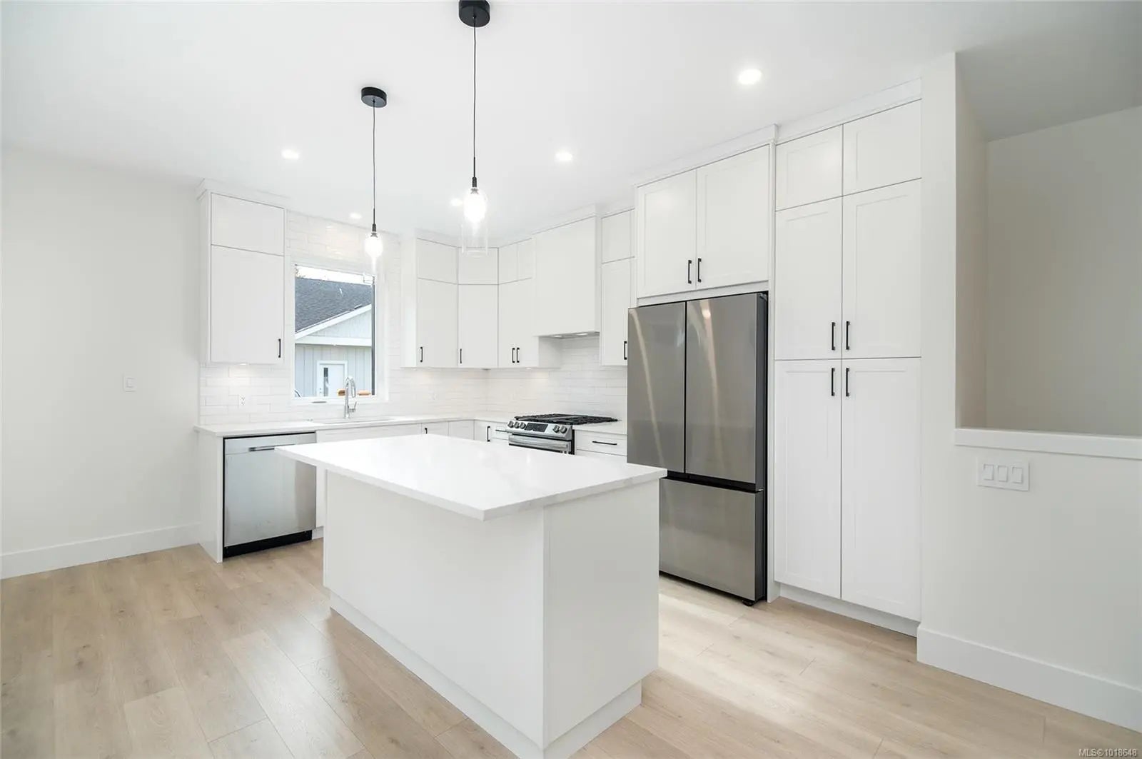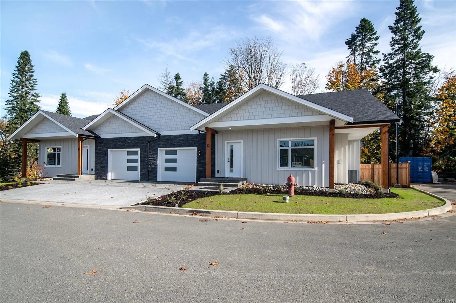 Under Construction, a massive 3238 sq. ft! Main level entry with lower walk-out! Welcome to Eagle Ridge Executive Patio Homes—Campbell River’s premier new development! This spacious five-bed, four-bath home offers 3,238 sq. ft. of high-quality living, ideal for multi-generational families. Enjoy a main-level entry with open-concept living and a fully finished lower-level walk-out featuring an in-law suite (no appliances). Built with attention to detail: quartz counters, gas range, concrete fireplace, floating shelves, waterproof laminate flooring, two living rooms, a rec room, and plenty of storage. Outside, relax on the expansive rear balcony overlooking a forested backdrop or enjoy the fenced, landscaped backyard with irrigation—perfect for kids and pets. Located near schools, shopping, marinas, and golf. Includes 2-5-10 new home warranty. Only 28 homes in total—22 half duplexes and six free-standing ranchers—don’t miss your chance to live in Eagle Ridge! Photos are of similar unit.