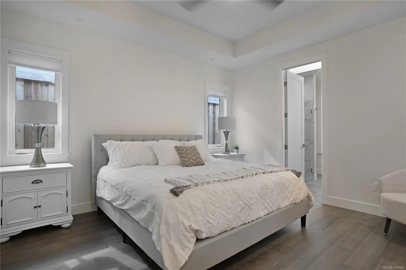 Last single detached home remaining in Windward-Estates.ca! Situated in sought-after area of Parksville & developed by Windward Construction. Exceptional location w/ sunny south facing rear yard. Includes 2-5-10 new home warranty & is just over 1830 Sq.Ft + 440 Sq.Ft garage w/ 3 bdrms, 2 bath, complete appliance pkg. Home will be beautifully fenced along the sides & rear in addition to a landscaping package. Property staddles two roads making this a unique location with other benefits. Premium finishes incl 9 & 10 Ft. tray ceilings, engineered hardwood floors, 8 Ft. interior doors, quartz countertops in kitchen & bathrooms, high-efficiency gas furnace, HRV, heat pump w/ cooling & comfort of heated tile floors in the ensuite. See Oceanside's newest subdivision is now complete. When building w/ Windward Construction expect the best quality, finishings & management. (All data is approximate, must be verified if important & subject to change, photos of similar built homes but not exact)