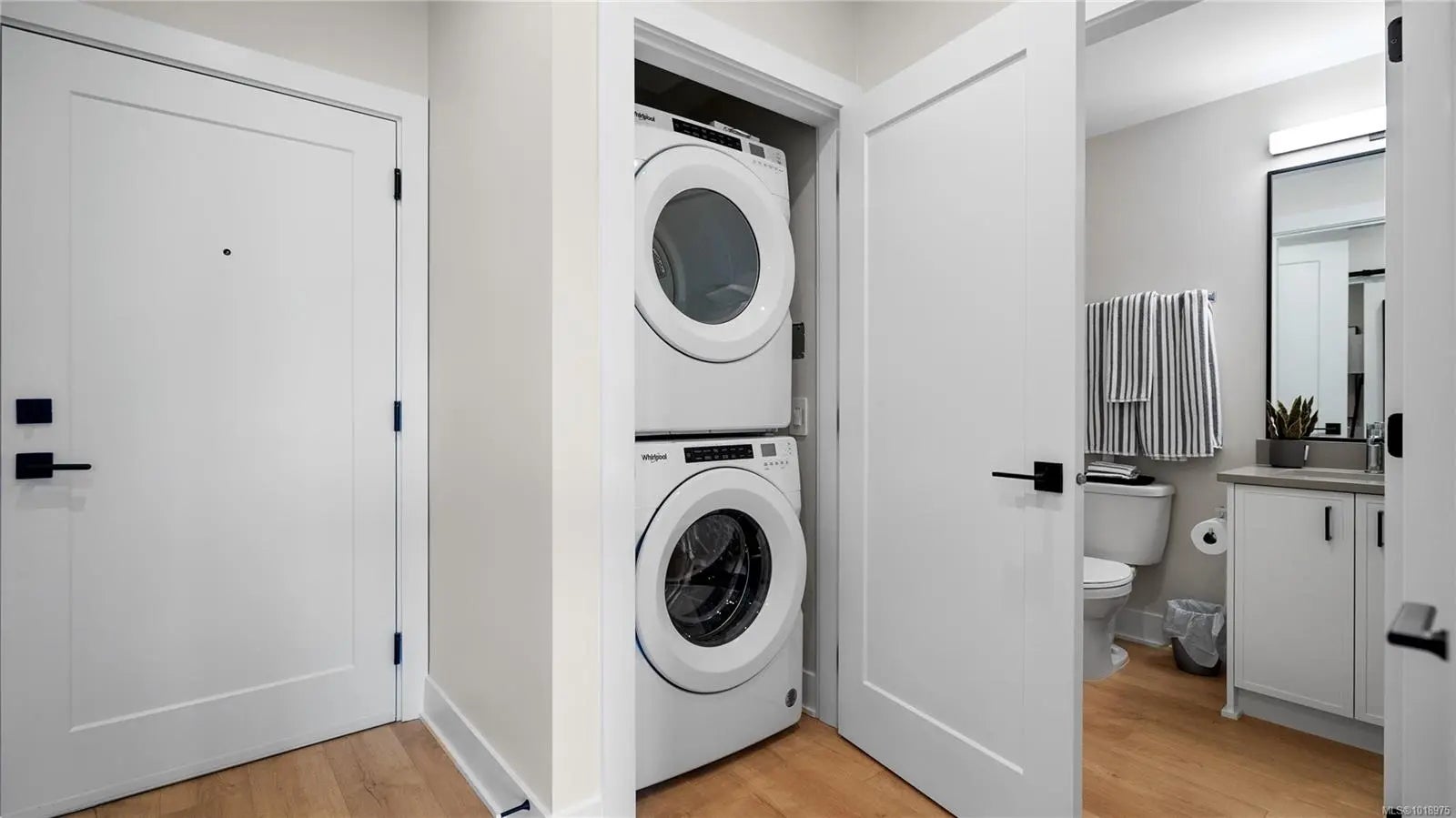 GST INCLUDED for any contract that goes firm on or before Dec 31st, 2025. Enjoy the peaceful park setting and water and nature outlooks from your living room and deck in this spacious 1 bed and den home. Ready for immediate possession, enjoy brand new construction with air conditioning, one (EV ready) parking space, and the convenience of a storage locker on your floor. Poised on the shores of Langford Lake, all homes at Trailside at the Lake come equipped with all the amenities for modern living. Bright and airy including large windows to showcase the views, 9 ft ceilings, luxury laminate flooring, spacious kitchens with quartz counters and a Whirlpool appliance package, window blinds and screens. Building amenities include cardio space, weight room, yoga space, lounge, & work from home office space. Just steps to the Ed Nixon trail and Langford Lake for outdoor adventures. You can also enjoy a short walk to YMCA, Eagle Ridge and City Center activity complex, as well as many amenities