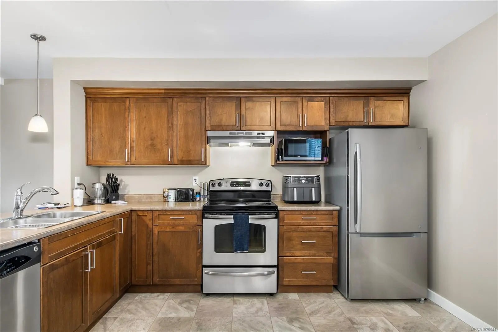 Welcome to this beautifully designed two-storey townhome in a charming four-unit strata complex. This bright and spacious home offers three bedrooms and three bathrooms, including a large primary suite with a full ensuite and walk-in closet. The main level features a generous open-concept layout with a stylish kitchen showcasing stainless-steel appliances, bar seating, and pendant light. Perfect for entertaining, the kitchen flows effortlessly into the dining and living areas, while large windows fill the space with natural light. Enjoy the convenience of main-floor laundry and a powder room, plus level, easy access from the entry and to the sunny south-facing patio-ideal for relaxing or summer barbecues. Upstairs, the bedrooms are roomy and comfortable, with great storage and plenty of light. Set within a quiet, well-kept strata with low maintenance and a friendly atmosphere, this home is close to schools, shopping, and recreation. Combining comfort, function, and modern style.