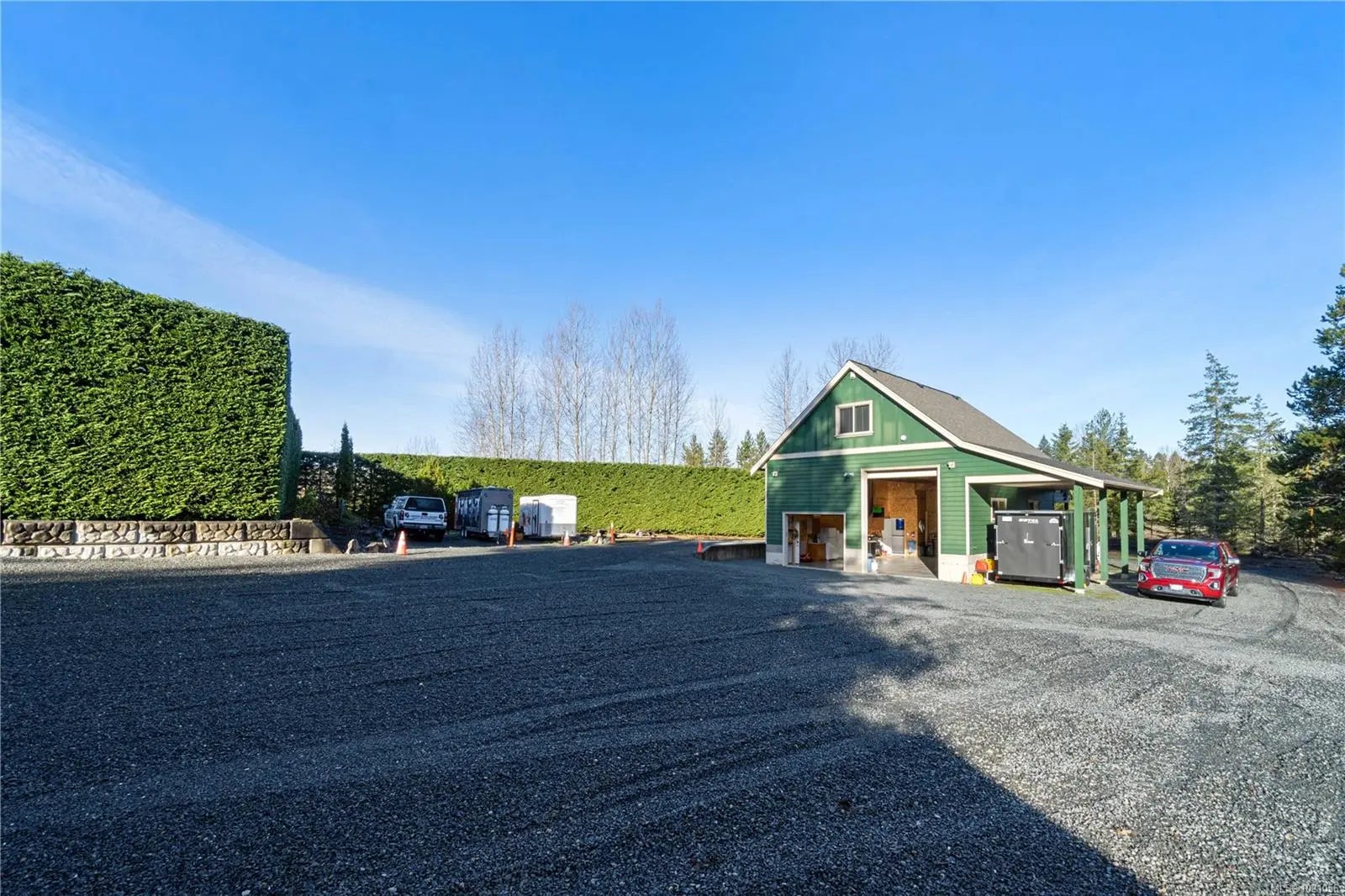 Offered for the first time, custom built in 2004, this River’s Edge Estate sits on 3.14 fenced acres and showcases a spectacular recently added gourmet chef’s kitchen featuring a Sub-Zero fridge, Wolf double wall ovens, cooktop & built-in microwave, Fisher Paykel dishwasher drawers, quartz counters, reinforced pot drawers, and a beverage fridge. Engineered wood floors, a propane fireplace with gorgeous stonework, and two massive 11’6” patio doors anchor the main level. The primary suite offers heated tile floors in the ensuite along with an extra large steam shower. You’ll also find a family room, office with French doors, two heat pumps, full security system, stamped concrete patio with hot tub and an outdoor kitchen featuring a pizza oven, BBQ, and smoker. A powered gate, pond, raised garden beds, fruit trees, and a large shop with studio suite (separate septic, HWT, shop 2pc bath, suite 3pc bath with heated floors) complete this rare find.