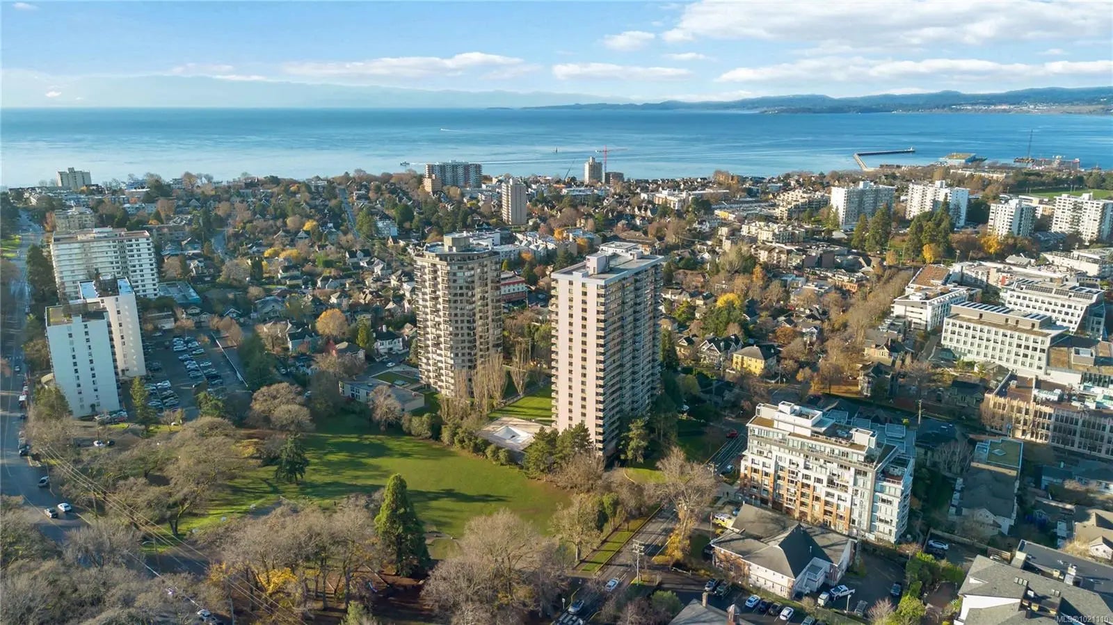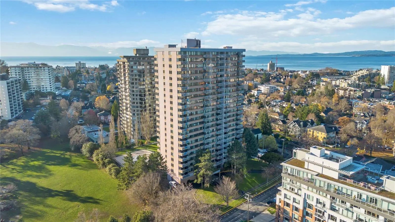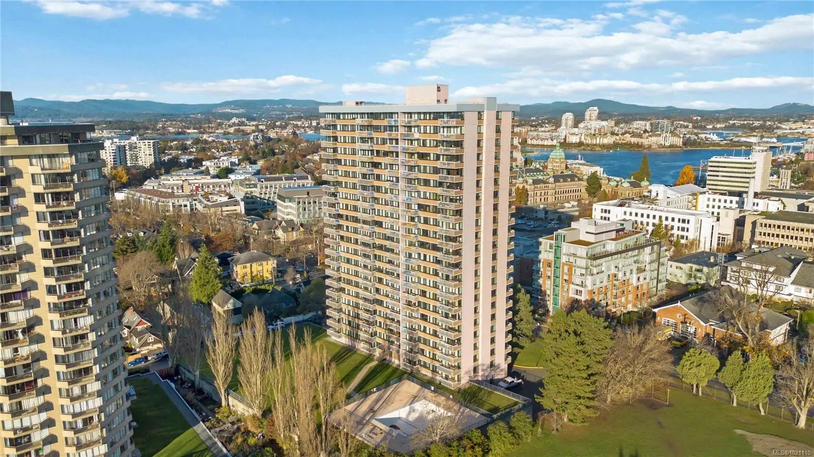 This 17th-floor corner suite offers sweeping 180-degree views from the northeast to the southwest, capturing the ocean, the Olympic Mountains, and the activity of the harbour. From this height, the scenery feels endless. Enjoy your morning coffee as cruise ships arrive, framed by the mountains in the distance. This well-maintained home reflects years of thoughtful care and is comfortable, bright, and move-in ready. The location is exceptional, quietly set behind the Parliament Buildings and the Royal BC Museum, and beside Beacon Hill Park. Walk to downtown, James Bay Square, Fisherman’s Wharf, Cook Street Village, cafés, shops, and shoreline paths. The adult-oriented leasehold building features a hot tub, a seasonally heated outdoor pool, saunas, secured bike storage, a workshop, a storage locker, and underground parking. The monthly fee of 766.52 dollars includes prop taxes, heat, h/w, amenities, insurance, and 24-hour on-site management. A rare offering at this price point.