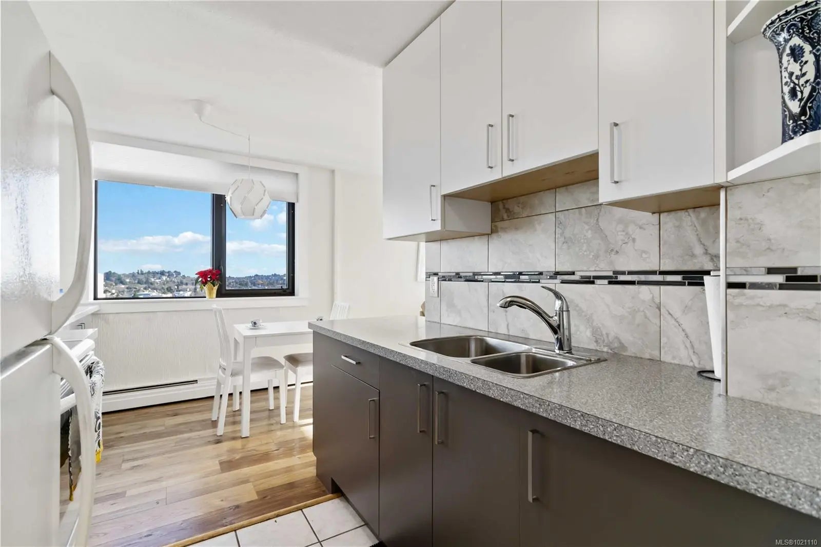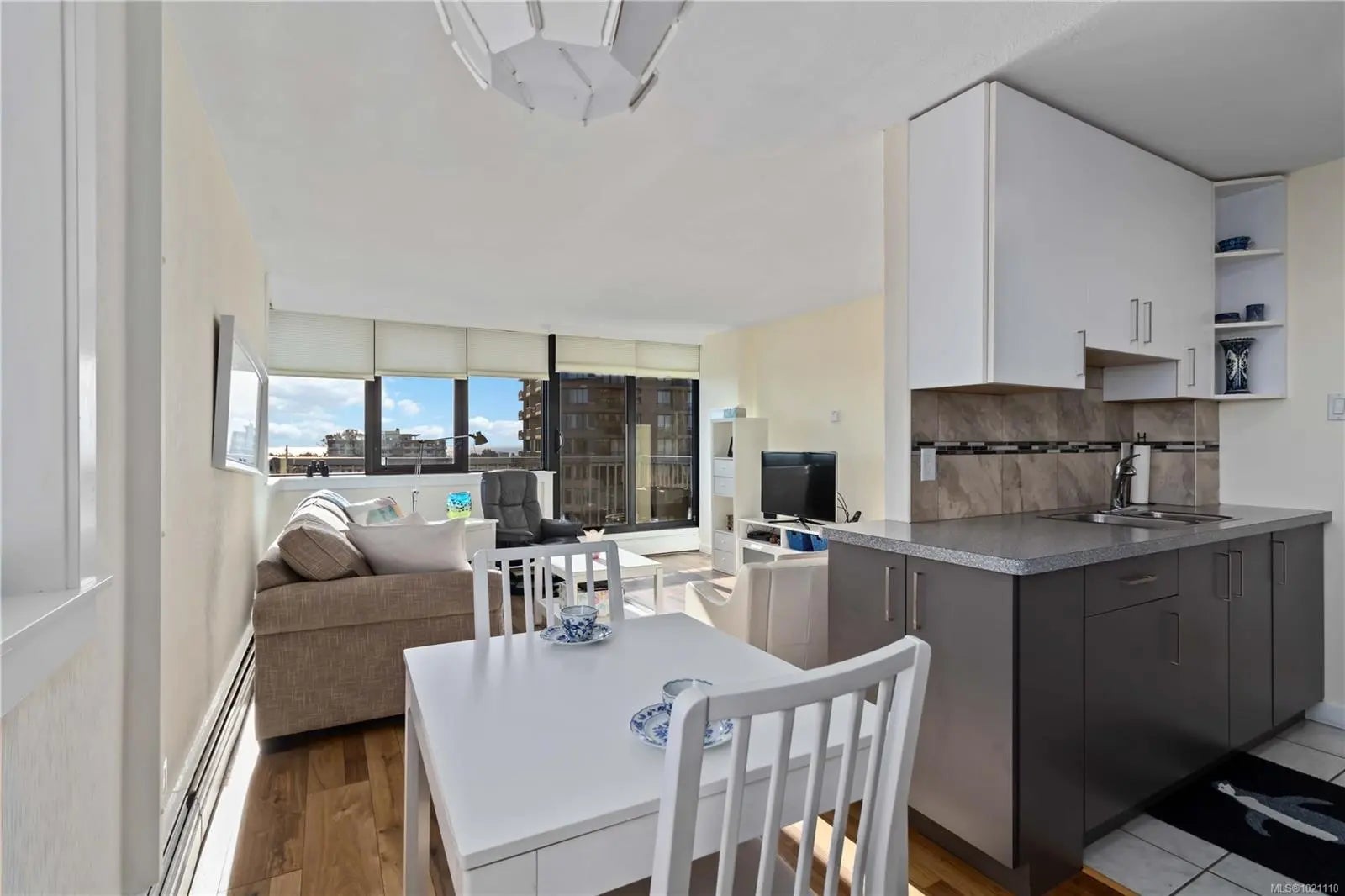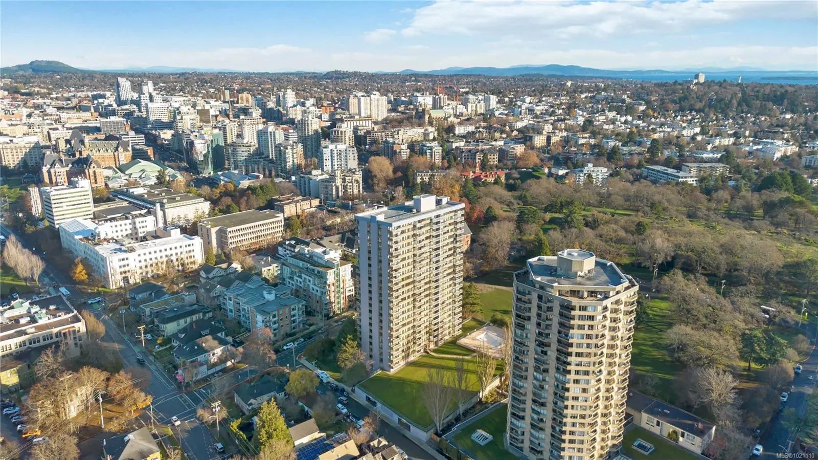 This 17th-floor corner suite offers sweeping 180-degree views from the northeast to the southwest, capturing the ocean, the Olympic Mountains, and the activity of the harbour. From this height, the scenery feels endless. Enjoy your morning coffee as cruise ships arrive, framed by the mountains in the distance. This well-maintained home reflects years of thoughtful care and is comfortable, bright, and move-in ready. The location is exceptional, quietly set behind the Parliament Buildings and the Royal BC Museum, and beside Beacon Hill Park. Walk to downtown, James Bay Square, Fisherman’s Wharf, Cook Street Village, cafés, shops, and shoreline paths. The adult-oriented leasehold building features a hot tub, a seasonally heated outdoor pool, saunas, secured bike storage, a workshop, a storage locker, and underground parking. The monthly fee of 766.52 dollars includes prop taxes, heat, h/w, amenities, insurance, and 24-hour on-site management. A rare offering at this price point.