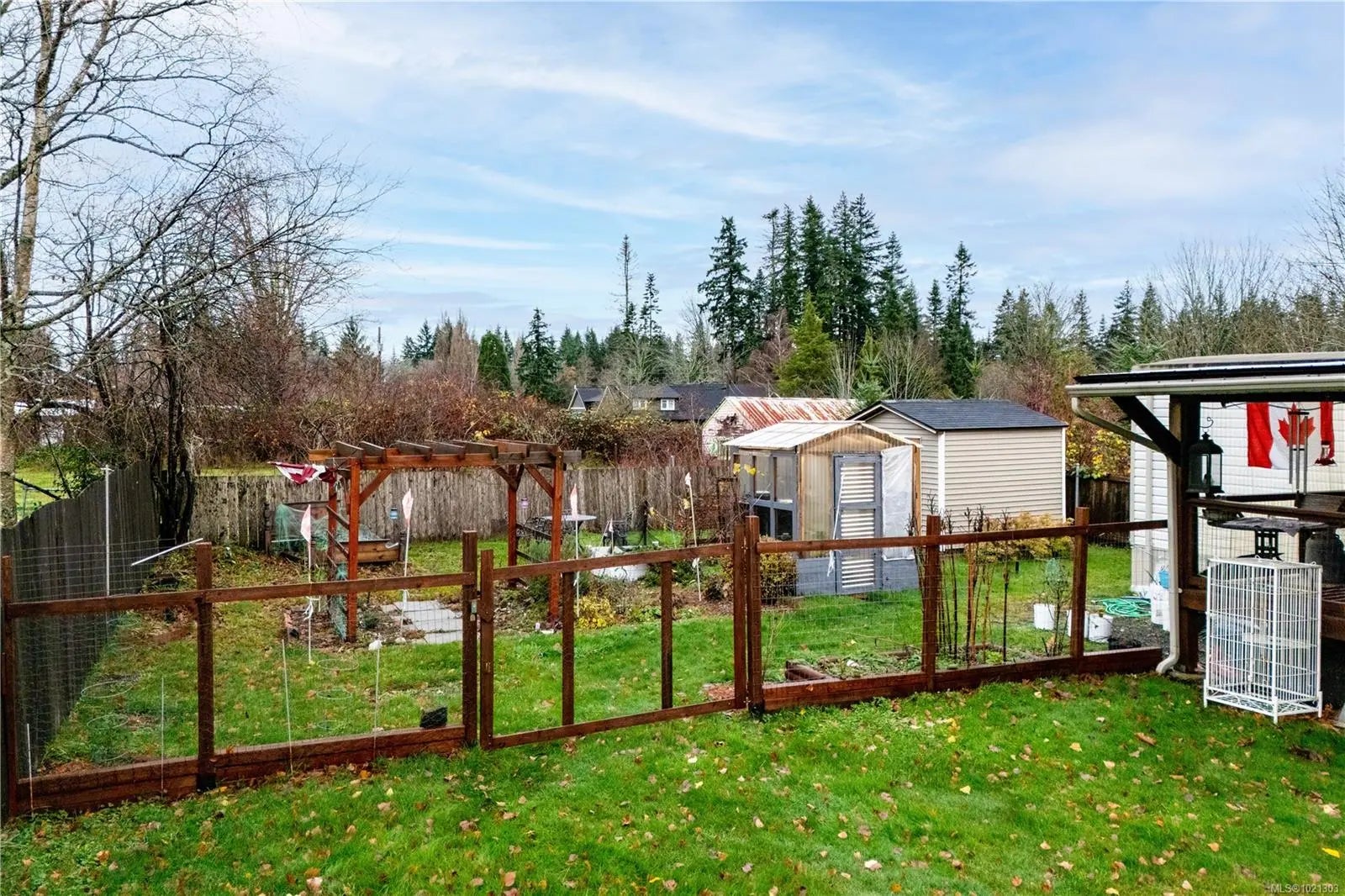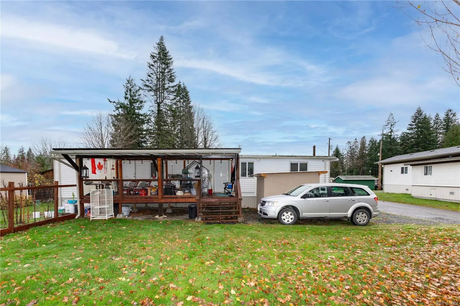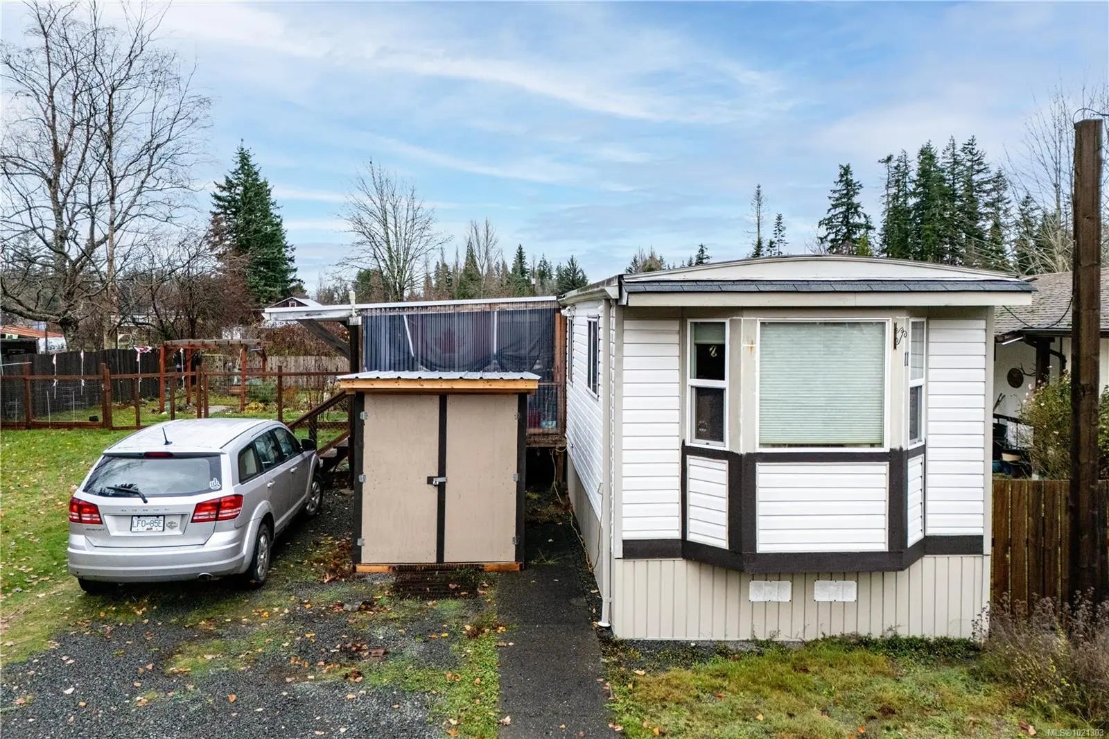 Charming mobile home in a 55+ community, featuring extensive updates throughout. Incredible double lot with fully fenced garden area. The kitchen boasts new cabinets. Bathroom has a soaker tub, newer laminate flooring, new interior doors, and the electrical have all been upgraded. Two convection wall heaters, vinyl windows and drywalled throughout add comfort and style. Outside, enjoy new siding, 2 storage sheds, reinforced covered deck, exterior doors, roof, and skirting with double-door access, plus updated gutters and downspouts. Relax on the 12'x24' deck overlooking a spacious double lot with garden beds at the end of a no thru road. A perfect little place to call home, with small pets welcome.