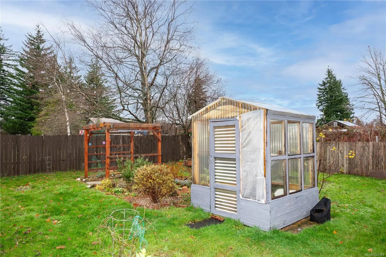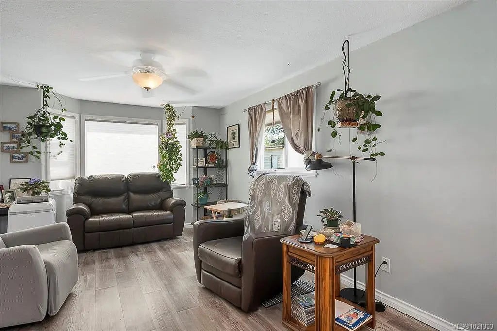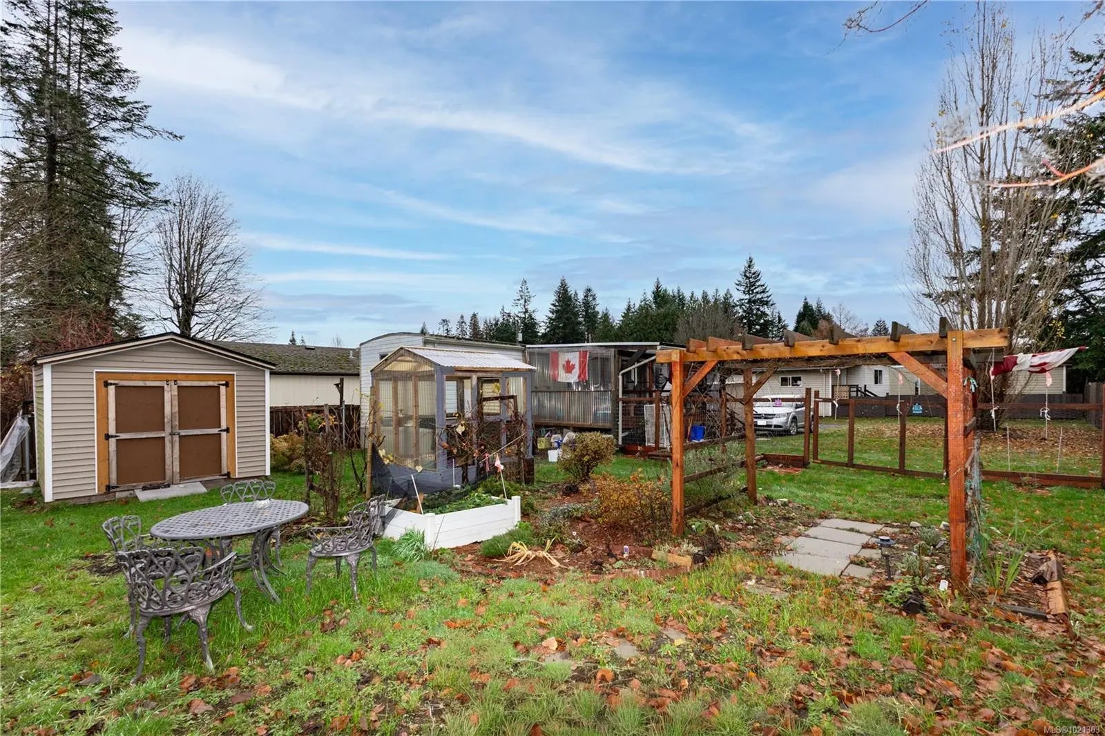 Charming mobile home in a 55+ community, featuring extensive updates throughout. Incredible double lot with fully fenced garden area. The kitchen boasts new cabinets. Bathroom has a soaker tub, newer laminate flooring, new interior doors, and the electrical have all been upgraded. Two convection wall heaters, vinyl windows and drywalled throughout add comfort and style. Outside, enjoy new siding, 2 storage sheds, reinforced covered deck, exterior doors, roof, and skirting with double-door access, plus updated gutters and downspouts. Relax on the 12'x24' deck overlooking a spacious double lot with garden beds at the end of a no thru road. A perfect little place to call home, with small pets welcome.
