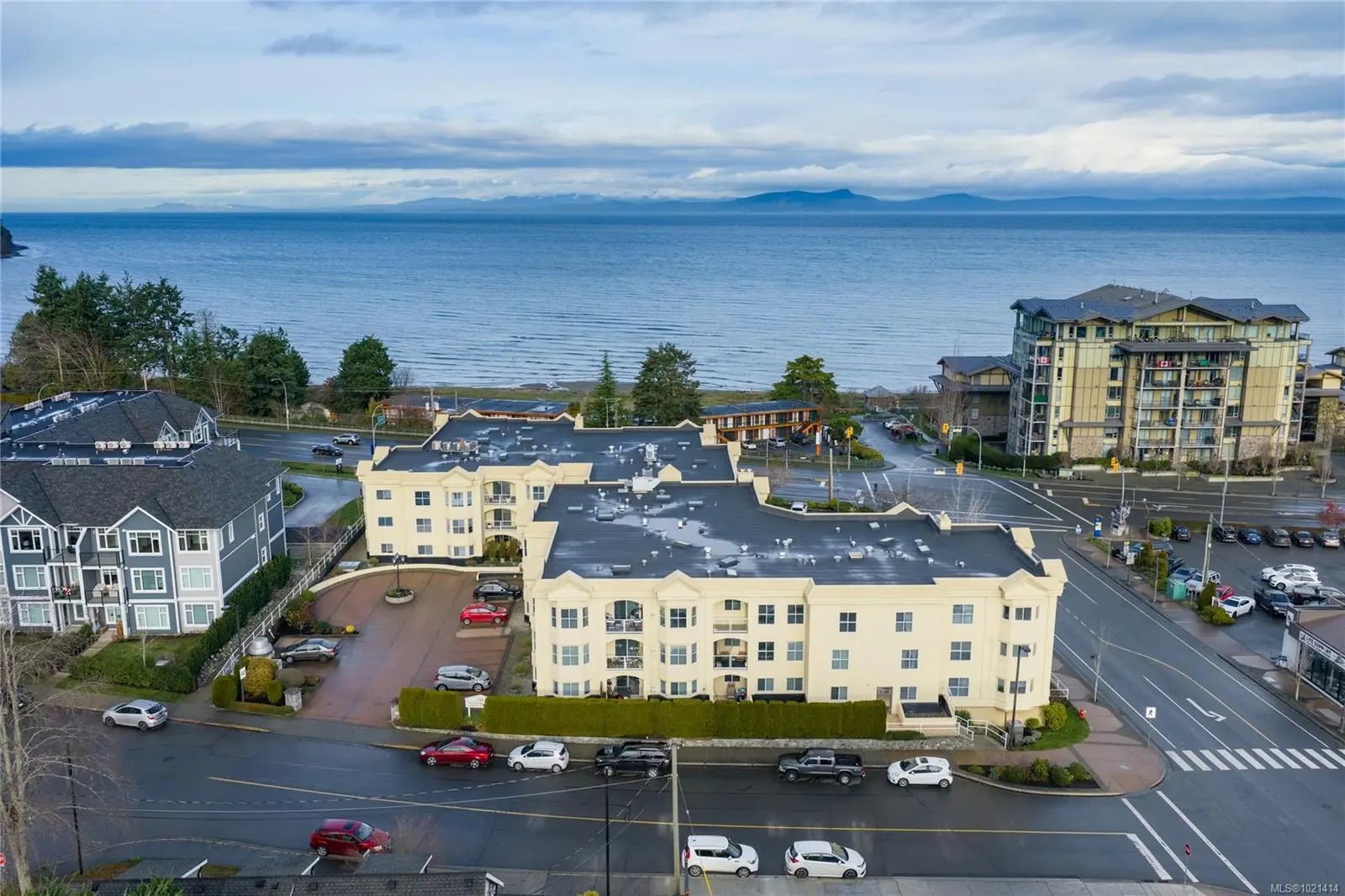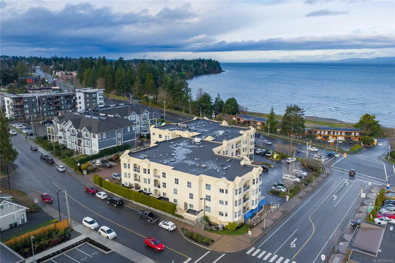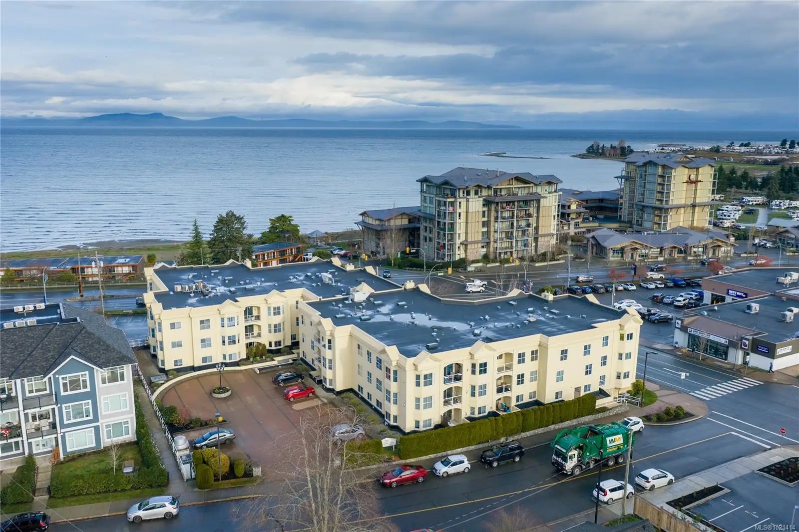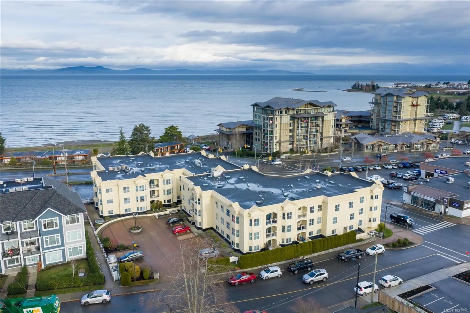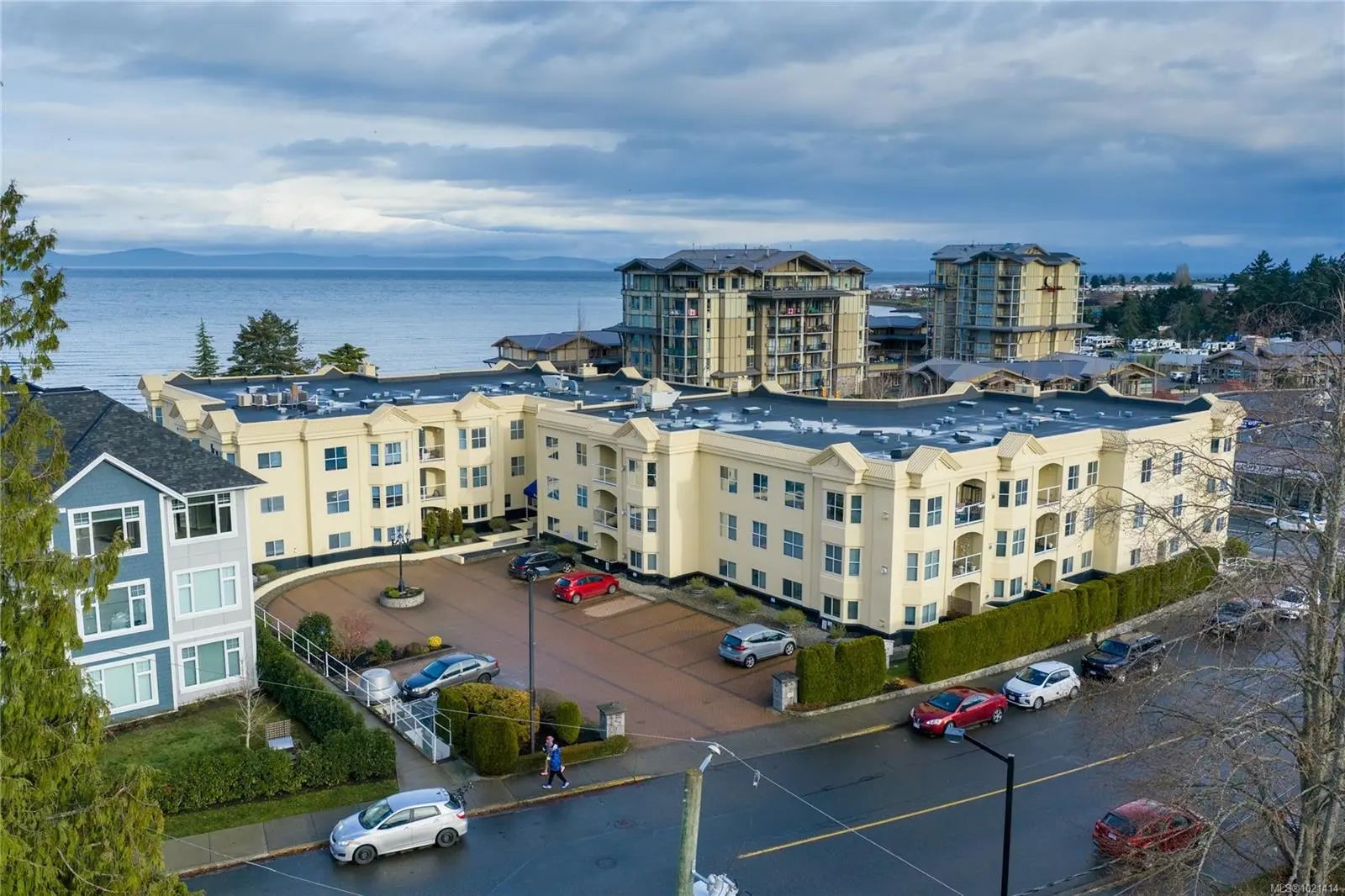 This top-floor 2-bedroom, 2-bathroom condo in Waterford Place offers an ideal combination of comfort and location. Set directly across from Parksville Beach and the boardwalk, it features a bright, spacious living room with crown molding and a gas fireplace. You are sure to appreciate the inviting eat-in kitchen equipped with stainless steel appliances and the covered west-facing balcony perfect for dining al fresco. Both bedrooms are generously sized, and the primary suite includes a walk-in closet with built-ins and an ensuite complete with a deep soaker tub. Waterford Place is a well-maintained, sought-after building where units like this are rarely available. Residents enjoy secure entry, elevator, underground parking, and a storage locker. All of this is just steps from the best Parksville has to offer: the beach, boardwalk, shops, cafés, dining, and downtown amenities. With no age restrictions and rentals permitted, this home is not to be missed!
