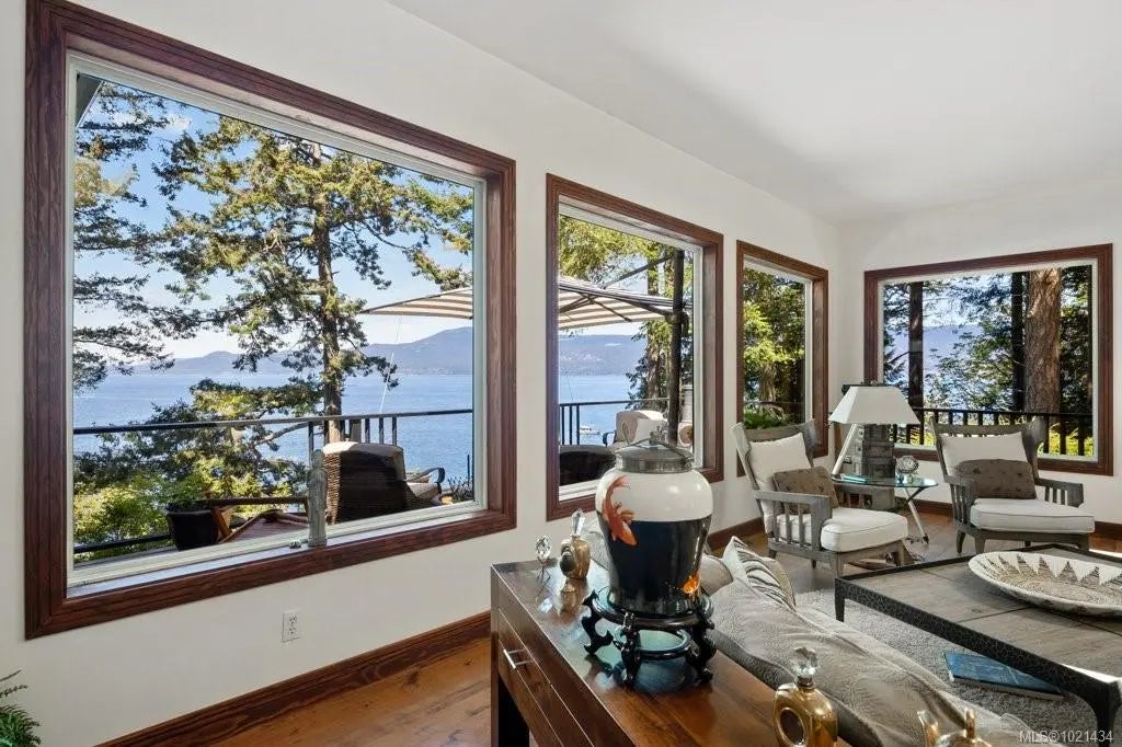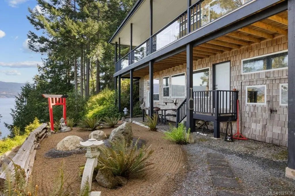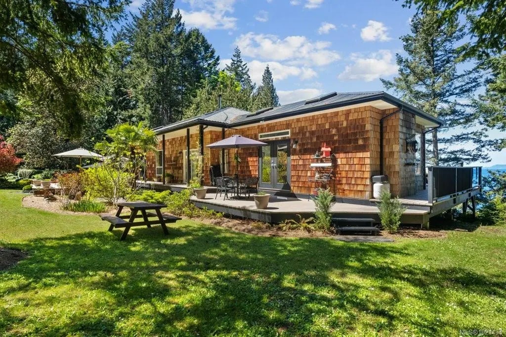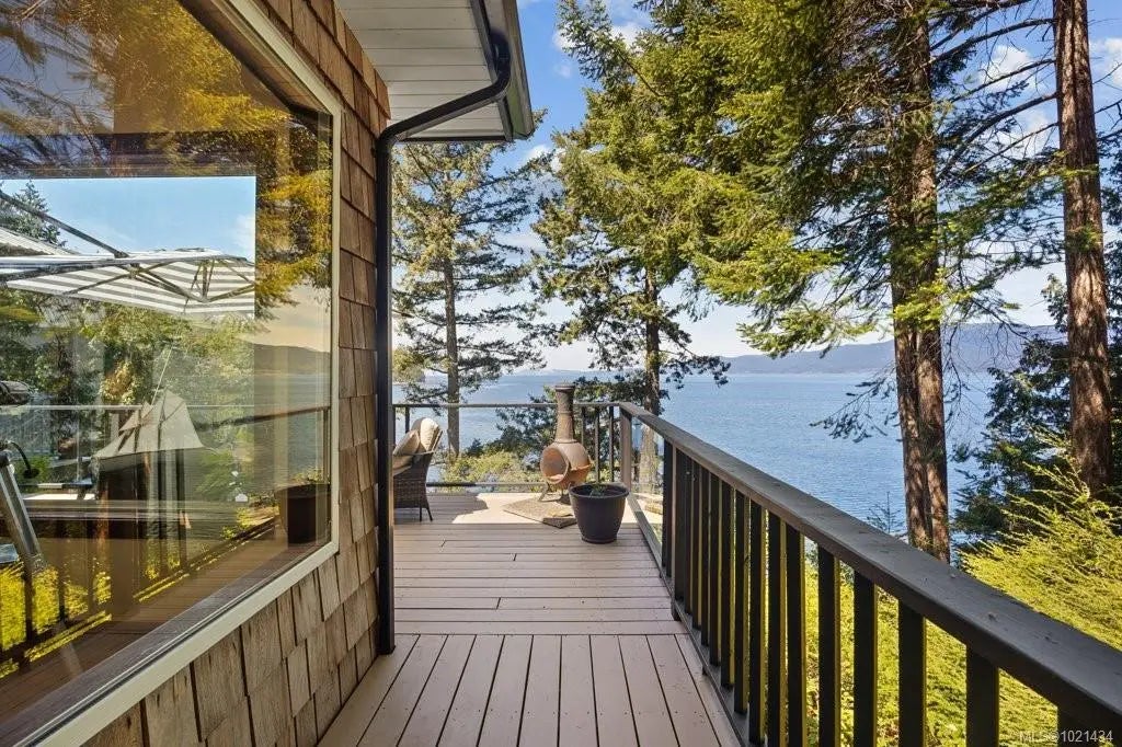 Welcome to a slice of serenity nestled in a remarkable 3+ acre waterfront property. This immaculate home is surrounded by tranquil beauty, offering a breathtaking view of the Sabine Channel, where the sun sets in a blaze of colours. The house sits within a fully-fenced acre with meticulously maintained grounds and a beautifully kept garden that comes alive with a riot of colours Spring through Fall. This property boasts a semi-private beach, accessible only by you and your neighbour where you can enjoy undisturbed moments of relaxation in the cool sea breeze. The home itself is a testament to thoughtful design, bathed in loads of natural light that creates a bright and welcoming atmosphere. There is a guest studio or B&B situated downstairs, perfect for visitors or as an income-generating opportunity. This property has an excellent solar setup, supported by a backup generator as well. In essence, this property is a harmonious blend of comfort, privacy, and natural beauty.