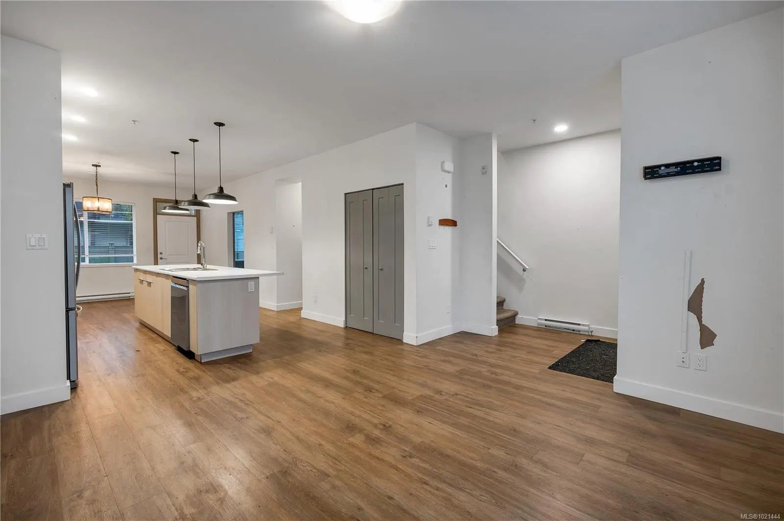 Open House Sunday February 8, 1:00-3:00. Welcome to this semi-waterfront, 3-bedroom + den, 3 bathroom Brownstone townhome! With 9' ceilings on both levels the main features an open concept living room, dining room and kitchen area with a large island with sink, flexible den/office and a 2 piece bathroom. The upper level has 3 spacious bedrooms including a primary with a large walk in closet, a full 4 piece ensuite, laundry area and an additional 3 piece bathroom. Custom cabinetry, luxury plank flooring, an attractive brick and hardy board siding exterior, two designated parking spaces, a large storage unit and a fully fenced backyard. Built in 2018 this home has the balance of new home warranty. Located across from Campbell River's famed Seawalk enjoy an easy stroll to restaurants or coffee shops while soaking in the relaxing oceanfront ambience. No rental restrictions and 2 dog/cats allowed with no size restrictions. Vacant and ready for your quick possession!