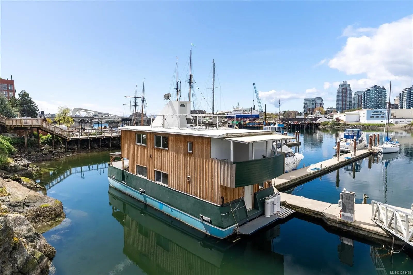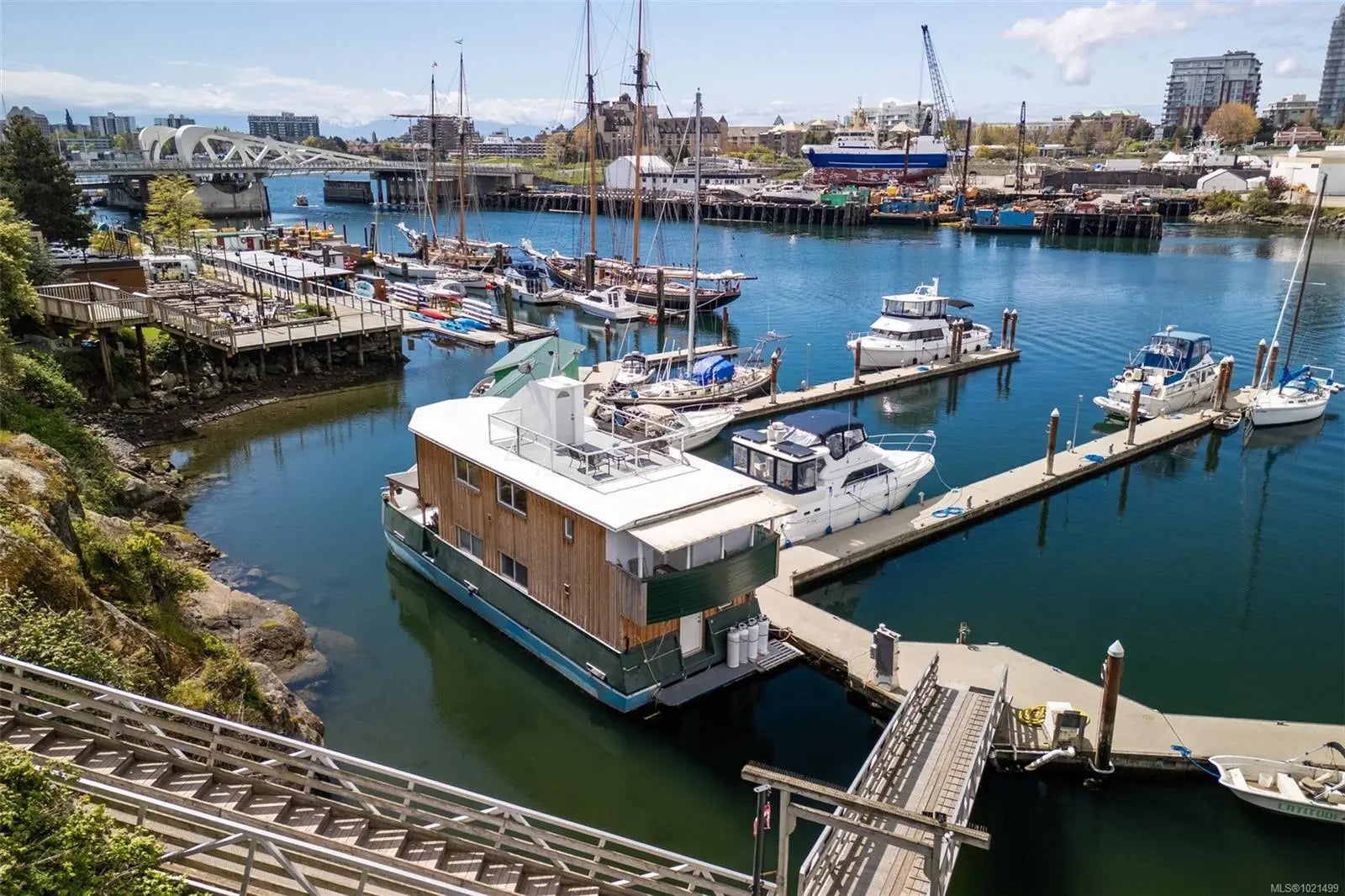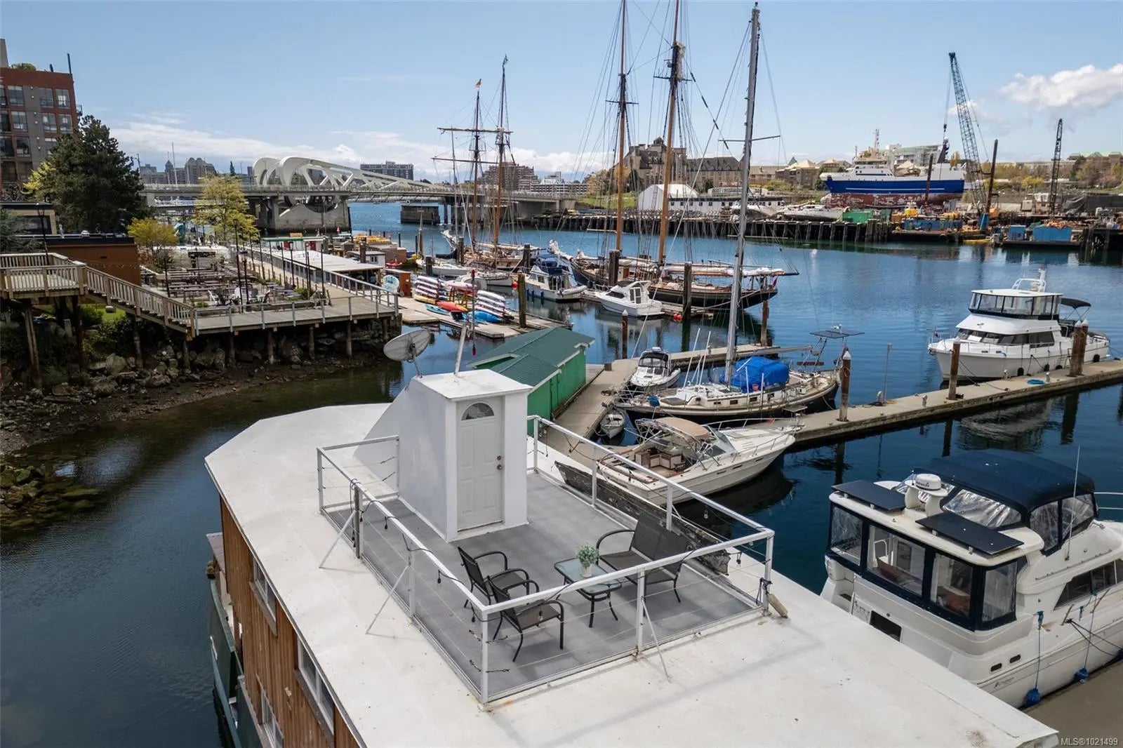 Welcome to rare waterfront float home living in the beautiful Victoria harbour. This 3 bedroom, 2 bathroom vessel offers the opportunity to enjoy Victoria inner harbour living at a fraction of the cost. The first level enters into a spacious foyer, with a spacious primary bedroom equipped with a built-in stone fireplace & 2-piece ensuite bathroom. The first level also offers an office space, laundry & storage room, as well as a second bedroom. The well-appointed main level includes a gourmet kitchen w/stunning inner harbour views, cozy living room, dining area, third bedroom & 4-piece bathroom. With every window offering water views, you'll enjoy natural light & beautiful sights no matter where you are in the home. Entertain or relax on one of the 3 outer decks, incl. a 207sqft rooftop patio, perfect for appreciating this special location. This home is equipped w/propane heaters, hot water on demand & chlorine filtration system for municipal water. Walk to dining, cafes, shops & more!