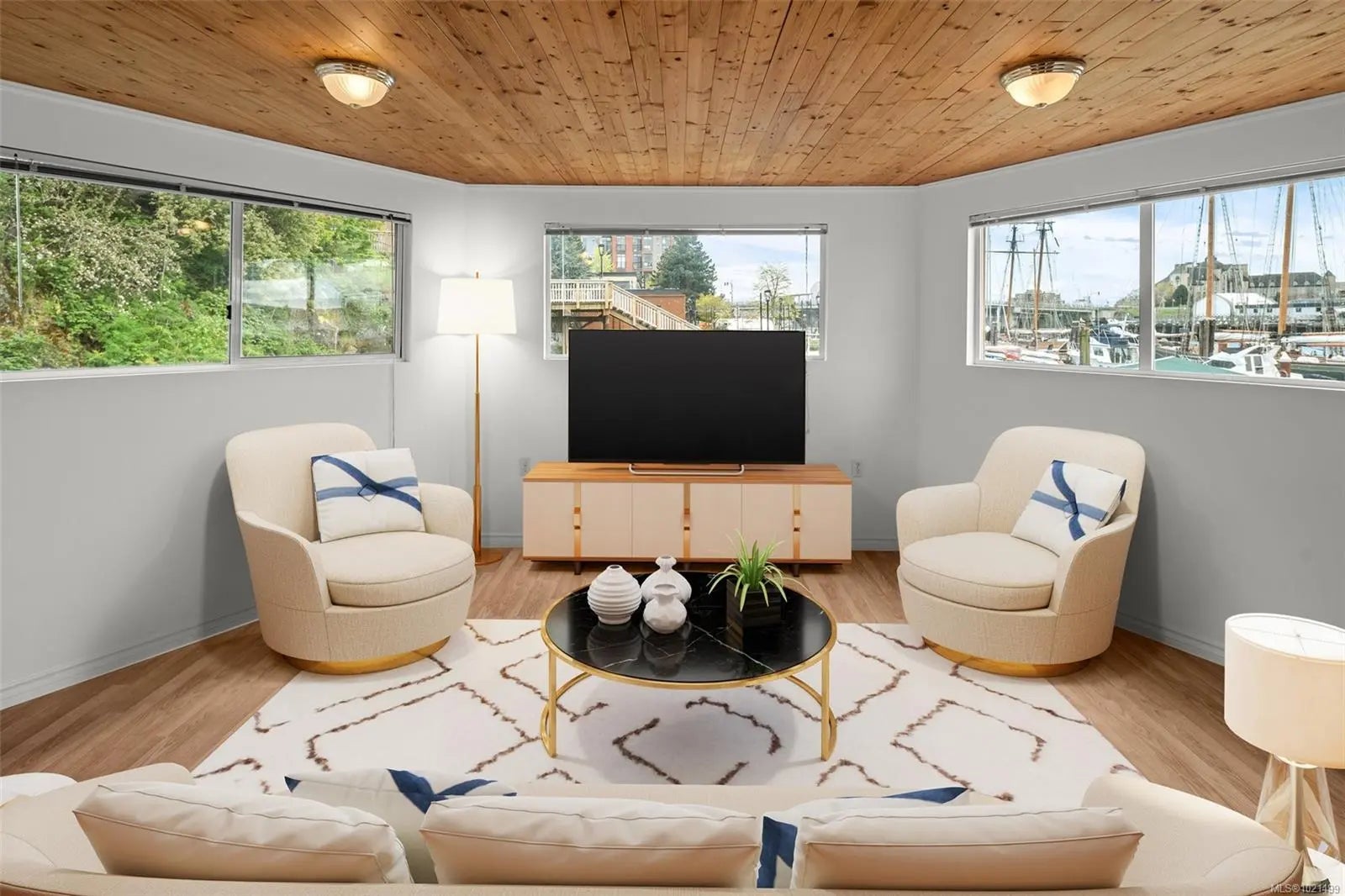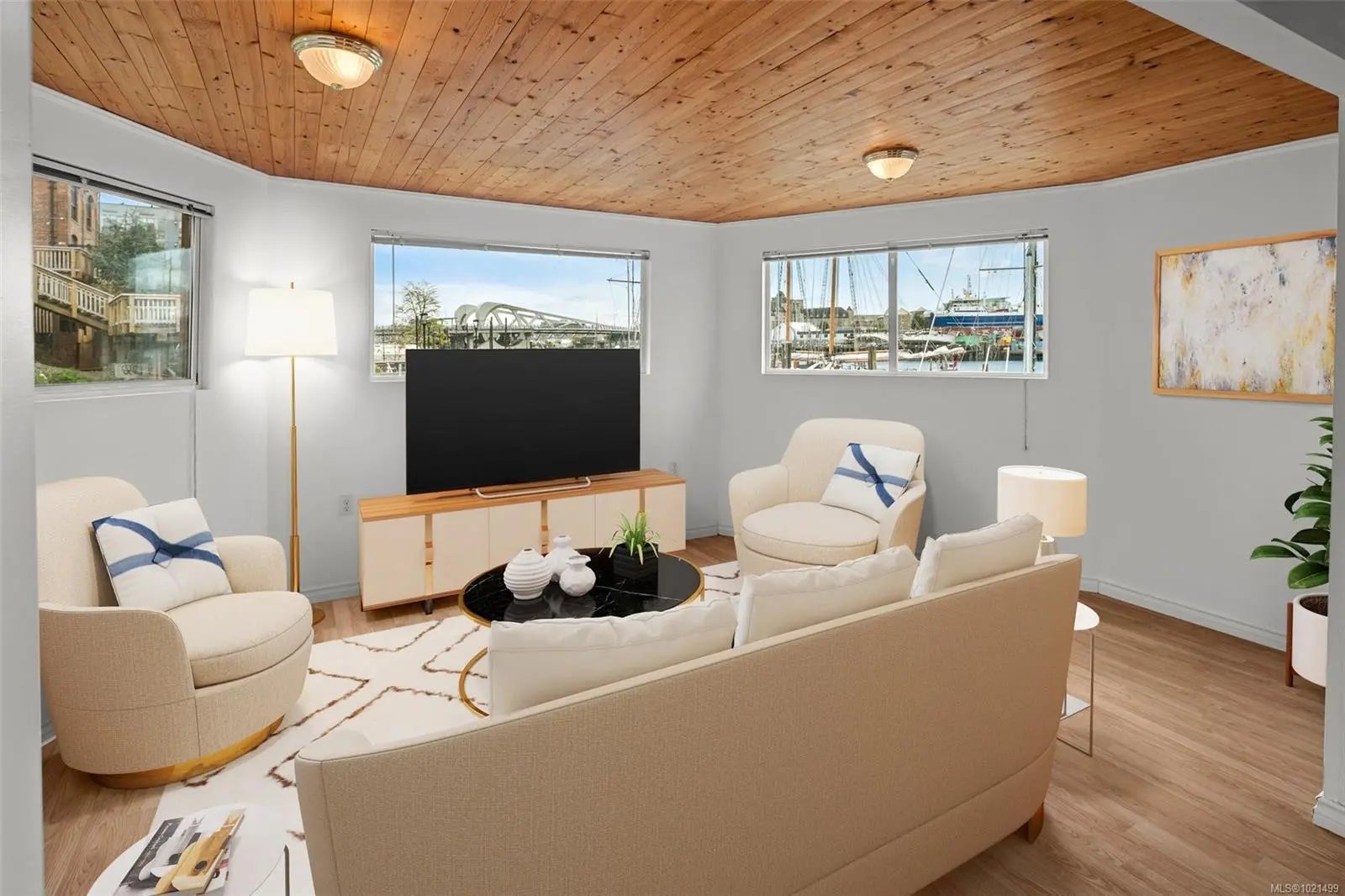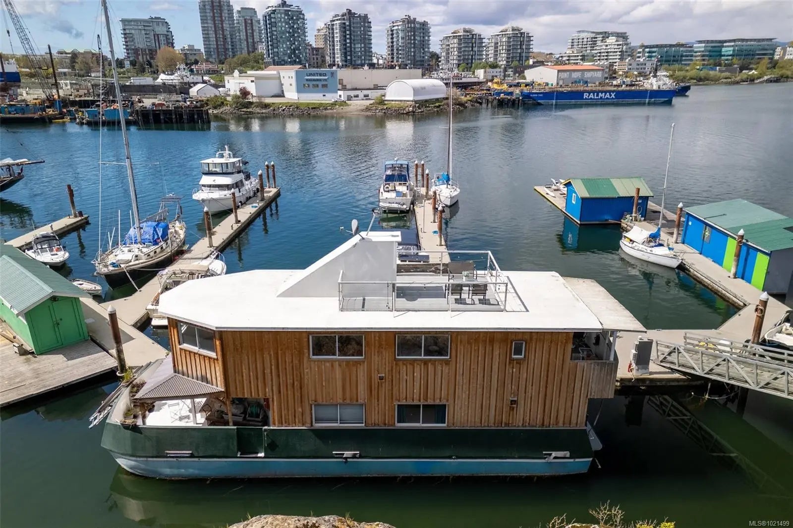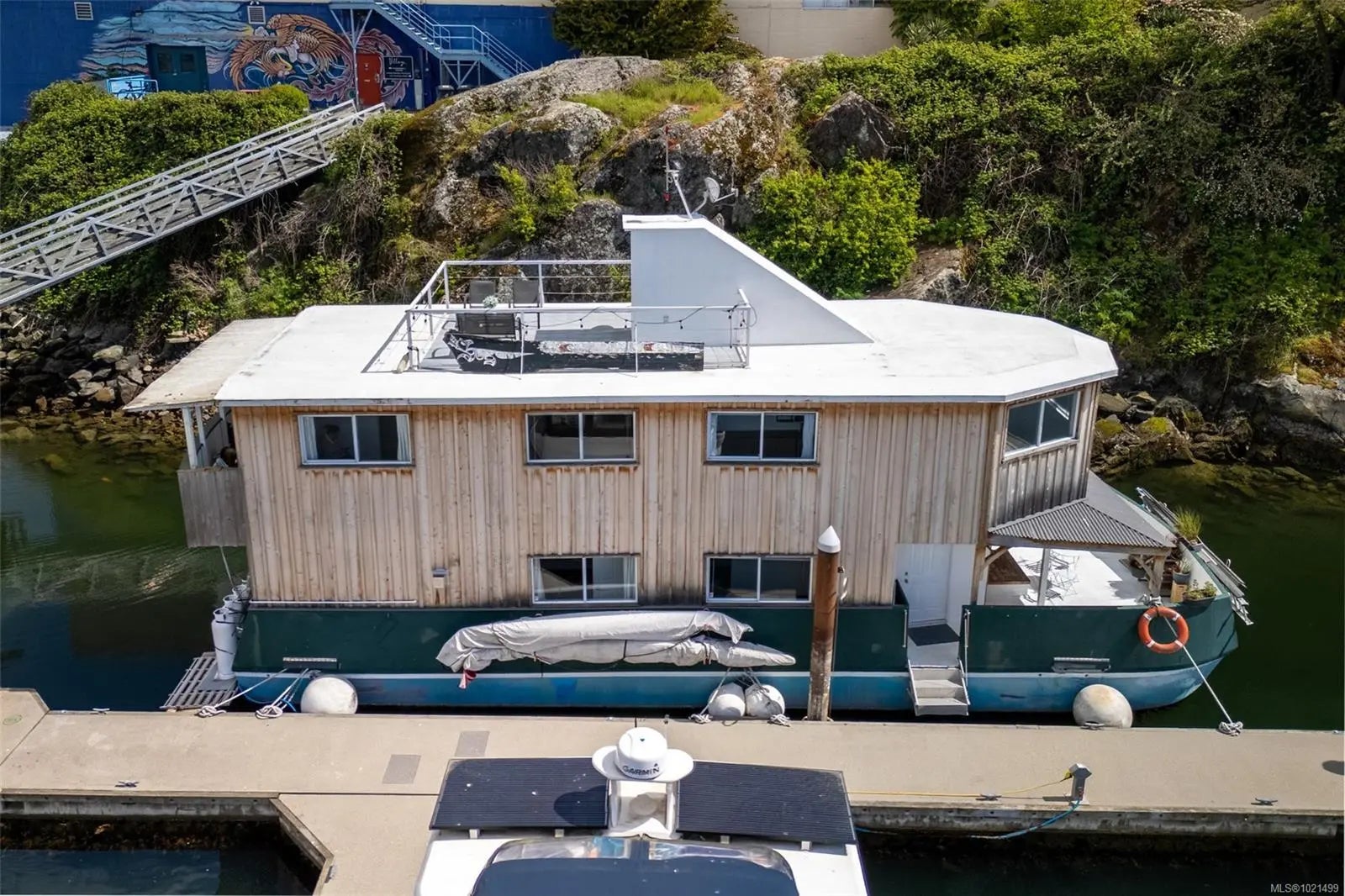 Welcome to rare waterfront float home living in the beautiful Victoria harbour. This 3 bedroom, 2 bathroom vessel offers the opportunity to enjoy Victoria inner harbour living at a fraction of the cost. The first level enters into a spacious foyer, with a spacious primary bedroom equipped with a built-in stone fireplace & 2-piece ensuite bathroom. The first level also offers an office space, laundry & storage room, as well as a second bedroom. The well-appointed main level includes a gourmet kitchen w/stunning inner harbour views, cozy living room, dining area, third bedroom & 4-piece bathroom. With every window offering water views, you'll enjoy natural light & beautiful sights no matter where you are in the home. Entertain or relax on one of the 3 outer decks, incl. a 207sqft rooftop patio, perfect for appreciating this special location. This home is equipped w/propane heaters, hot water on demand & chlorine filtration system for municipal water. Walk to dining, cafes, shops & more!