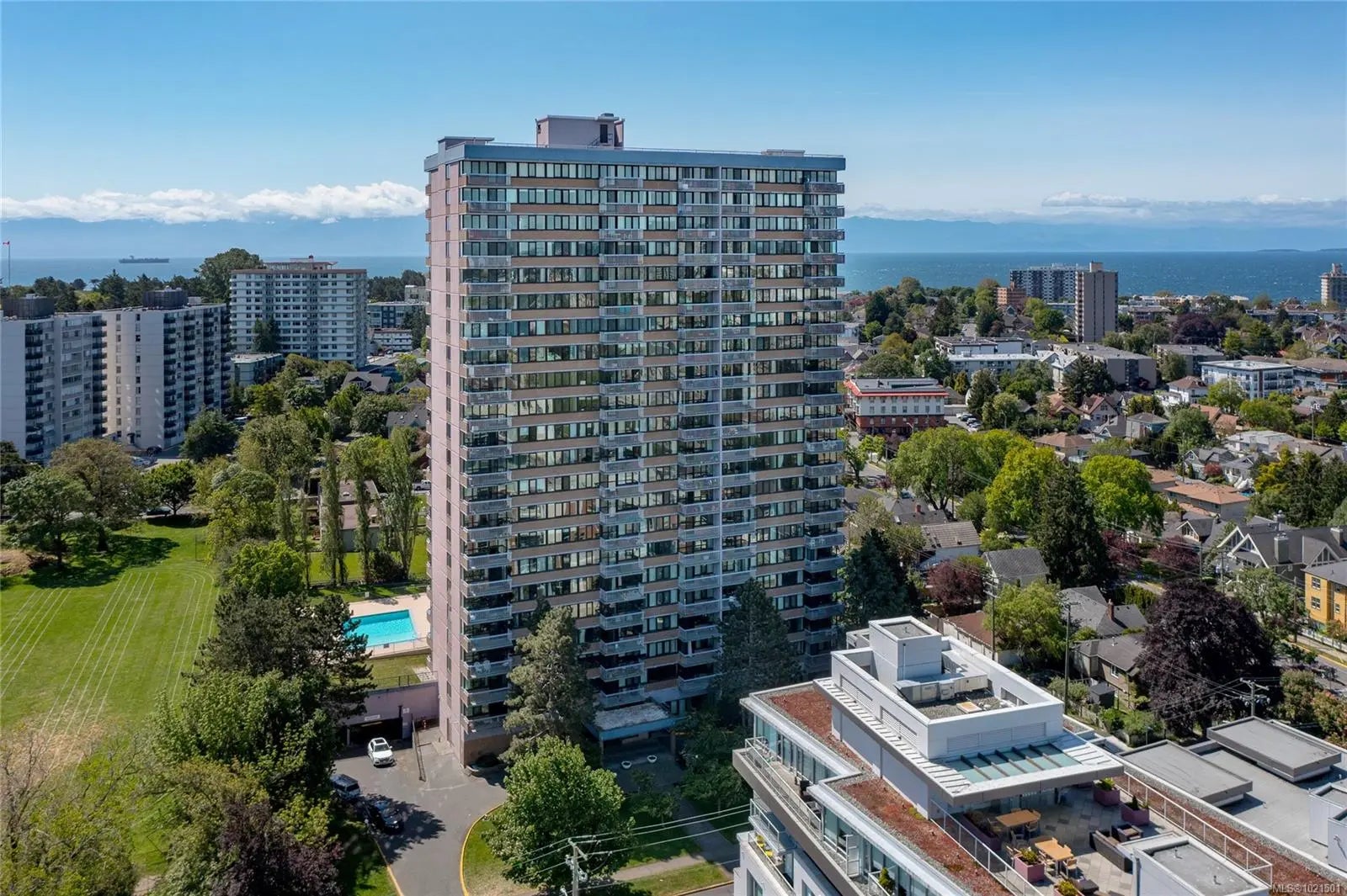 *NEW PRICE* Come view this bright and elevated 1-bedroom suite offering beautiful outlooks and ever-changing views. Located in the well-maintained Orchard House, a steel & concrete leasehold building in the heart of James Bay, this home delivers exceptional affordability and lifestyle. Enjoy a Walk Score of 90 with easy access to downtown, Beacon Hill Park, Dallas Road, Cook Street Village, and major transit routes. The building features an onsite caretaker, secure underground parking, large storage locker, workshop, bike storage, shared laundry, sauna, hot tub, and heated outdoor pool. Monthly fees include hot water, hot water heating, and property taxes. No age restrictions and rentals allowed—an excellent opportunity for homeowners or investors. Book your showing today! Leasehold expires December 31, 2073.