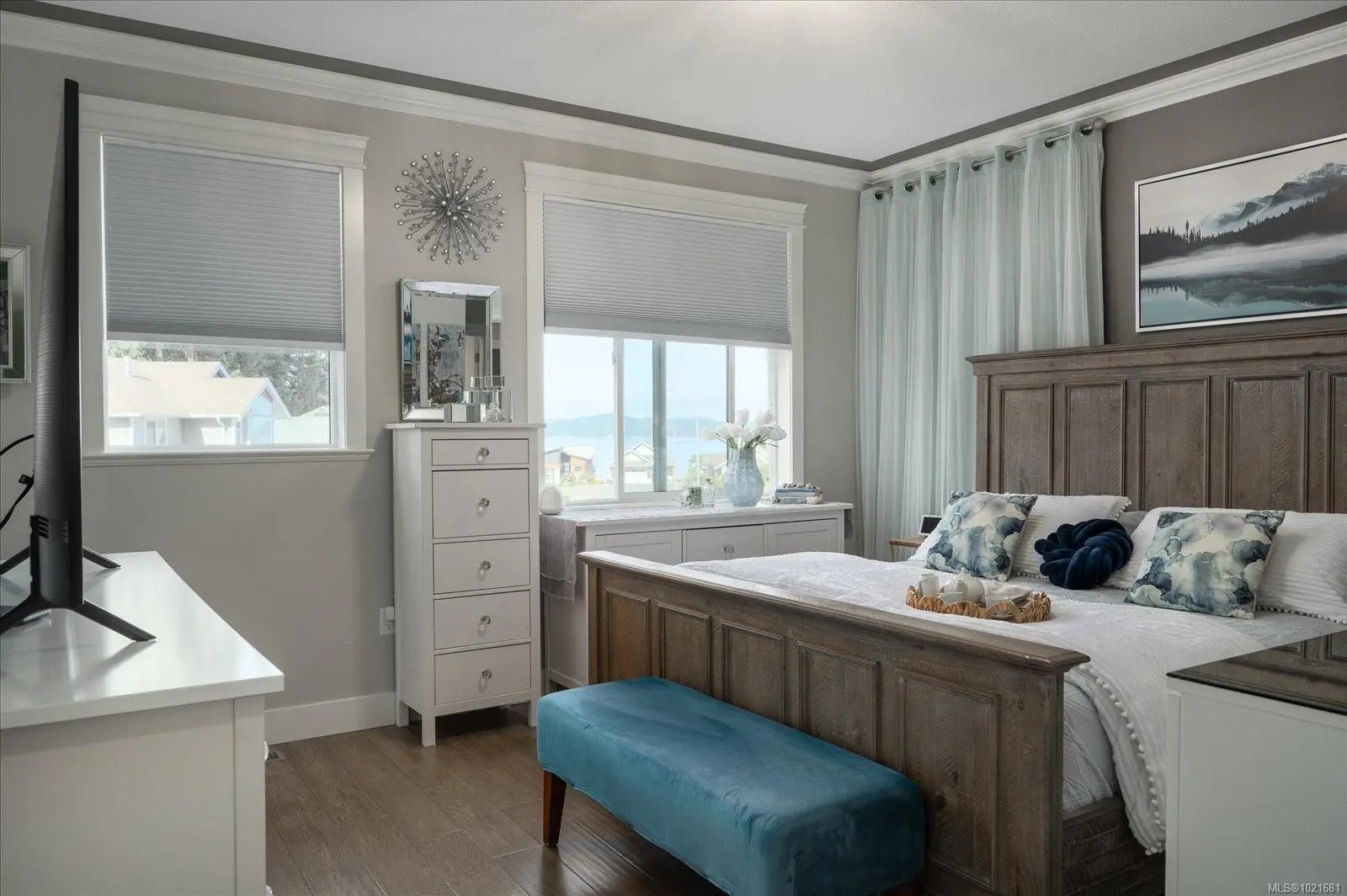 Wake up every day to ocean, Gulf Island & Coastal Mountain views from this refined 2019 custom built 3 bed, 3 bath residence. Offering approx. 2,333 sqft of thoughtfully curated living space, it showcases 9’ ceilings, hand-scraped hickory floors & designer lighting, with quartz surfaces carried through the chef’s kitchen, spa-inspired baths & laundry. The gourmet kitchen features quality cabinetry & a large island, flowing into a light-filled great room anchored by a statement gas fireplace. Upstairs, a media/lounge retreat opens to an oceanview balcony – an exquisite spot for sunrise coffee or sunset wine. Outside, enjoy a fully fenced yard, elegant partially covered patio for year-round entertaining & RV parking. Set on a quiet street just steps to the beach, walkable to schools & parks, and minutes to charming downtown Chemainus, this home offers a rare opportunity to elevate your Vancouver Island lifestyle.