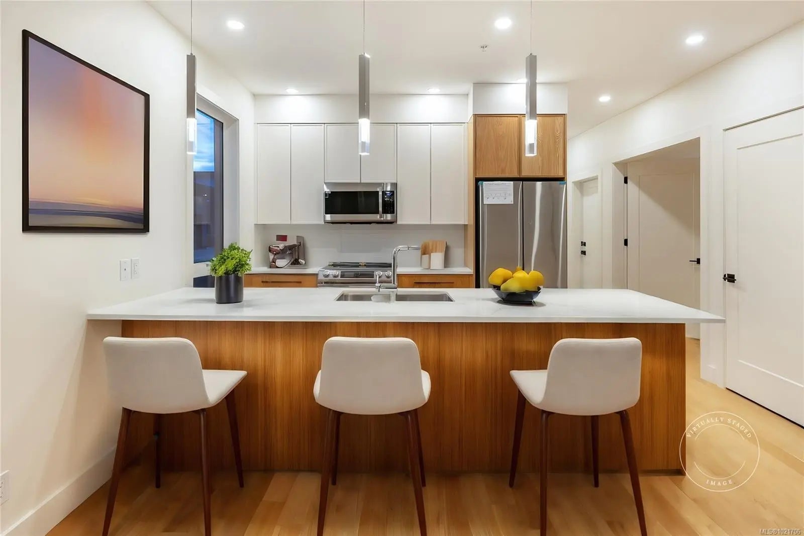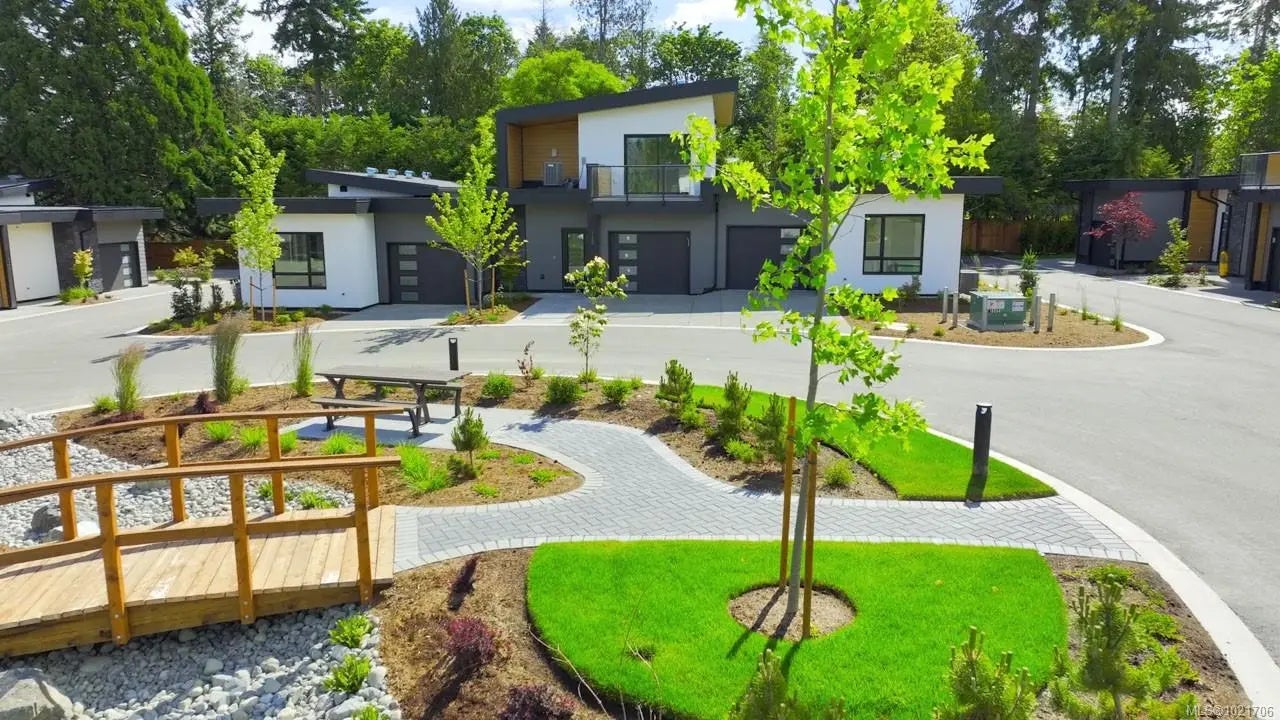 Welcome to "DUO" – a luxury development in the heart of town, just blocks from shopping, amenities, the boardwalk, and the beach! Unit #116 is an "A" Model" Patio Home with a Living/Dining Room sporting a nat gas FP and a door to a patio, an ultra-modern Island Kitchen with quartz CTs & Wi-Fi-enabled stainless appls, a Primary Bedroom Suite with a 4 pc ensuite and a door to a patio, a 2nd Bedroom with a 3 pc ensuite, a Den/Office, and a Laundry Closet. This Contemporary Home offers sophisticated finishing, spacious rooms for house size furnishings, energy star appls, and lovely outdoor living space. All Baths boast quartz-topped vanities and big mirrors with LED lighting, and each ensuite has in-floor heating. Features include eng hardwood floors, hot water on demand, a heat pump, and an OS Single Garage pre-wired for EV. Two dogs/cats allowed. A Base Window Covering/Blinds Package is included. Visit our website for more.