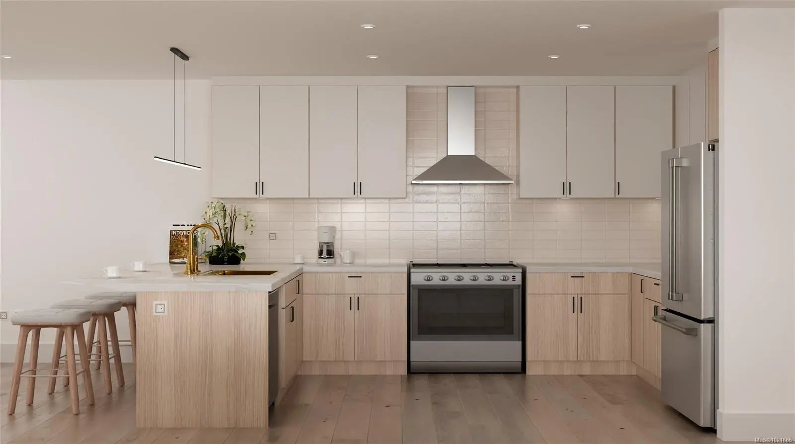 Experience exceptional coastal living in this gorgeous new build by Paltiel Homes, perfectly positioned in the heart of Sidney. Just steps from local coffee shops, everyday amenities, the charming boutiques of downtown, & the scenic oceanfront seawall. Crafted with superior attention to detail, the residence features a high-efficiency heat pump, cozy gas fireplace, stainless steel appliances including a gas cooktop, & hardwood flooring throughout. The stunning west-facing living room boasts soaring 11' ceilings, filling the space with natural light. The thoughtfully designed floorplan includes a main-level primary bedroom with laundry conveniently roughed-in. Enjoy low-maintenance, irrigated gardens that create an inviting outdoor space. The upper floor provides a versatile flex area—perfect for a home office, or media room. A detached garage adds both convenience & ample storage. Modern style, quality construction, and an unbeatable location—this is Sidney living at its finest.