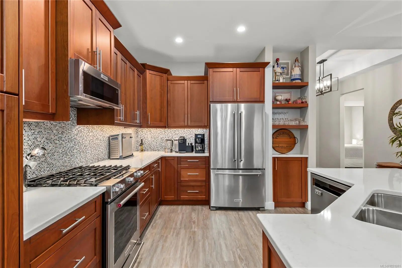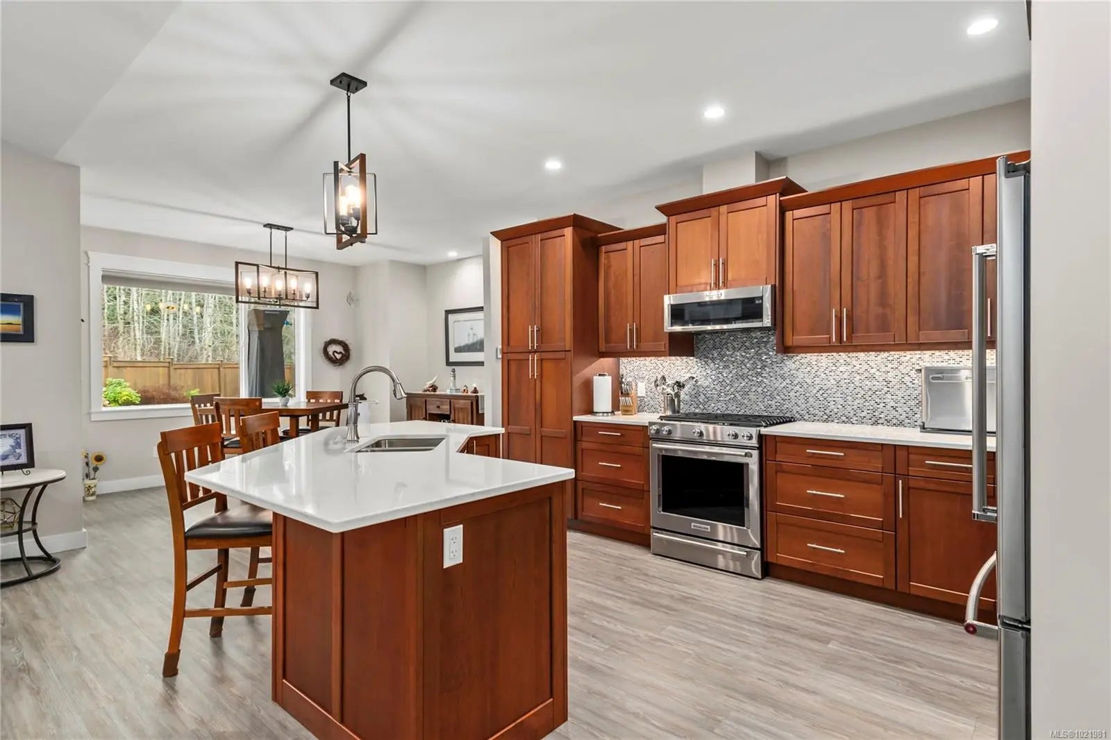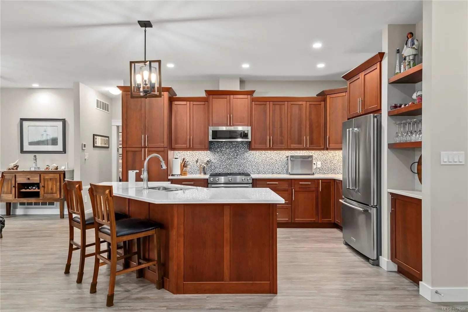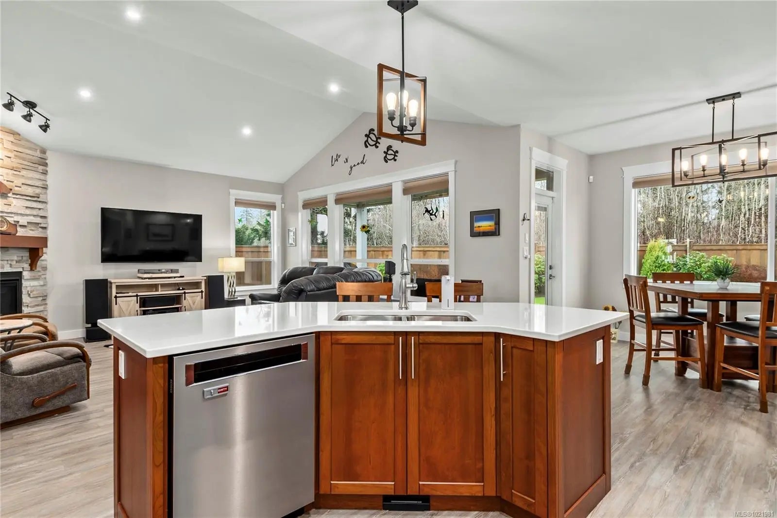 15 Nikola Road is ready to welcome you home- This like-new rancher has been beautifully maintained and offers exceptional open-concept living with vaulted ceilings, quality finishes and and a cozy gas fireplace. The kitchen boasts rich wood cabinetry, quartz countertops, a large island, lots of counter space and KitchenAid stainless appliances. The primary suite features a huge walk in closet and a thoughtfully designed ensuite bathroom. The front bedroom, currently being used as an office is versatile and spacious. Outside, enjoy plenty of parking, with access to the back on both sides, providing space for your RV and/or boat! The fully fenced yard is exceptionally private, low maintenance and backing onto green space. With additional features such as irrigation, built-in vacuum, and gas line to the patio, this home combines comfort, style, and practicality. Centrally located close to trails, shopping, and all amenities Campbell River has to offer.
