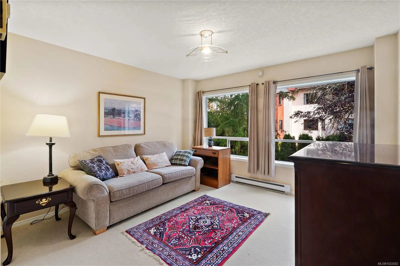 Rarely available in this well-managed building, this spacious 2 bedroom, 2 bathroom NE corner suite offers the ultimate Sidney lifestyle. Steps to shops, restaurants, cafés, and the waterfront, the location couldn’t be better. Large windows flood the home with natural light, highlighting the open living/dining area with cozy fireplace. A covered balcony surrounded by greenery feels like a private forest retreat—perfect for bird watching. The generous floorplan offers more space than most condos, with a large kitchen featuring stainless steel appliances, granite countertops, and built-in buffet. The primary bedroom includes three closets and an ensuite with granite counters. Ample storage throughout completes this rare offering. A bright, spacious home in the heart of Sidney—don’t miss it!