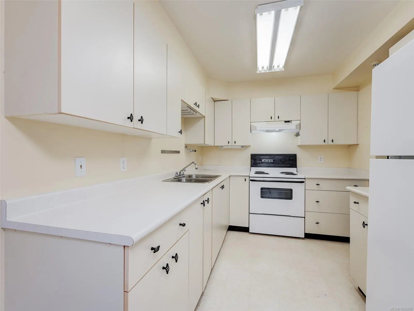 Welcome to Unit 408 at 1063 Southgate Drive – a bright and top-floor condo in a well-maintained building offering comfort and convenience. This spacious unit features a welcoming living and dining area with large windows that fill the space with natural light. The functional kitchen provides generous cabinetry and counter space, perfect for everyday living. Enjoy a comfortable bedroom, a full bathroom, and in-suite laundry for added convenience. Step out onto your private balcony and take in the elevated views. Underground parking and a separate storage locker are included as well! Located in a quiet 55 plus building that allows pets and is professionally managed, this residence offers quick access to local shops, Beacon Hill Park and the waterfront. Priced to allow a buyer to add their own cosmetic décor, and enjoy this highly desirable location.