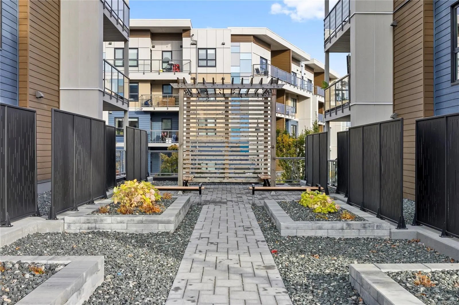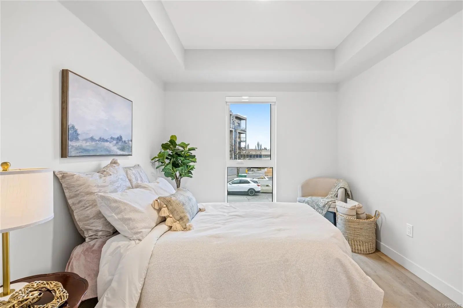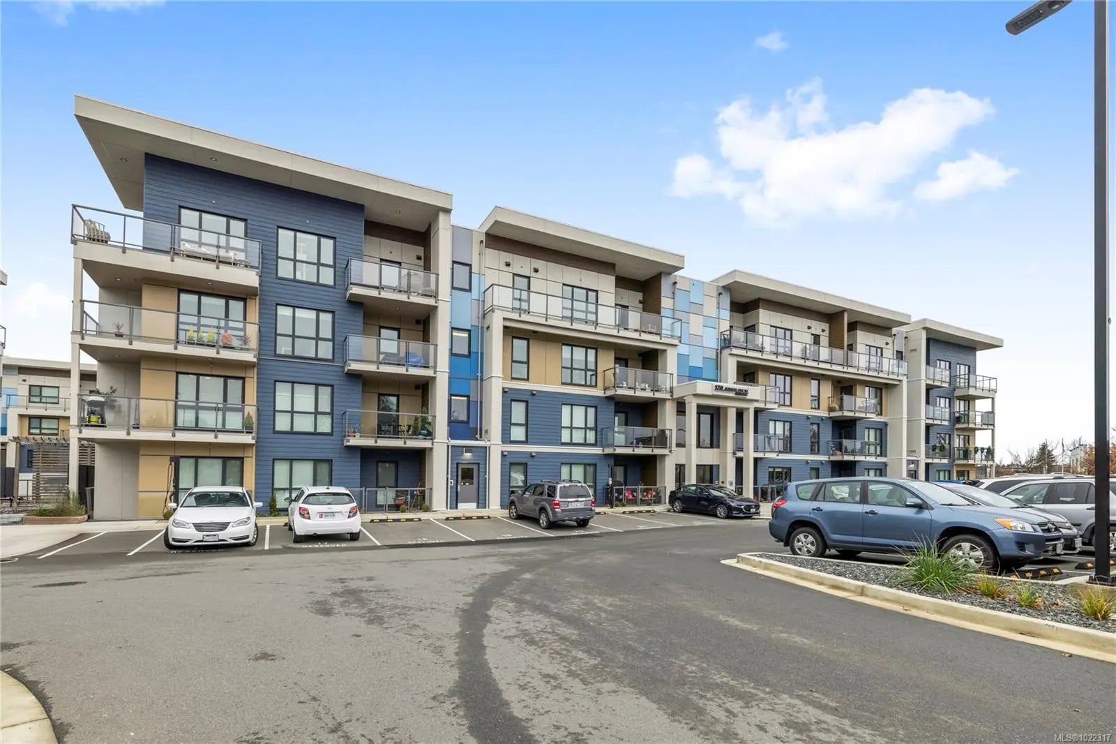 Welcome to Mosaic, a modern 2 bed/2 bath home built in 2023. This light filled first floor unit offers easy access while sitting above street level for added privacy, with open sightlines to the coastal mountains and a peekaboo ocean view. Oversized windows enhance the airy feel, while the stylish kitchen features quartz countertops, soft close cabinetry and a large island. The open floor plan is ideal for entertaining and extends to a covered balcony perfect for morning coffee or summer evenings. Both bedrooms feature walk-in closets, complemented by an in-suite laundry/storage room plus a separate storage locker. Included is a sought after underground parking stall with opt. EV charging upgrade. Designed with efficiency, the home offers a heat pump for heating/cooling, hot water on demand, triple pane windows and smart water shut off. Steps to Parksville’s main beach, groceries, coffee shops, restaurants and trails, this is central living at its best. Pet/rental friendly.
