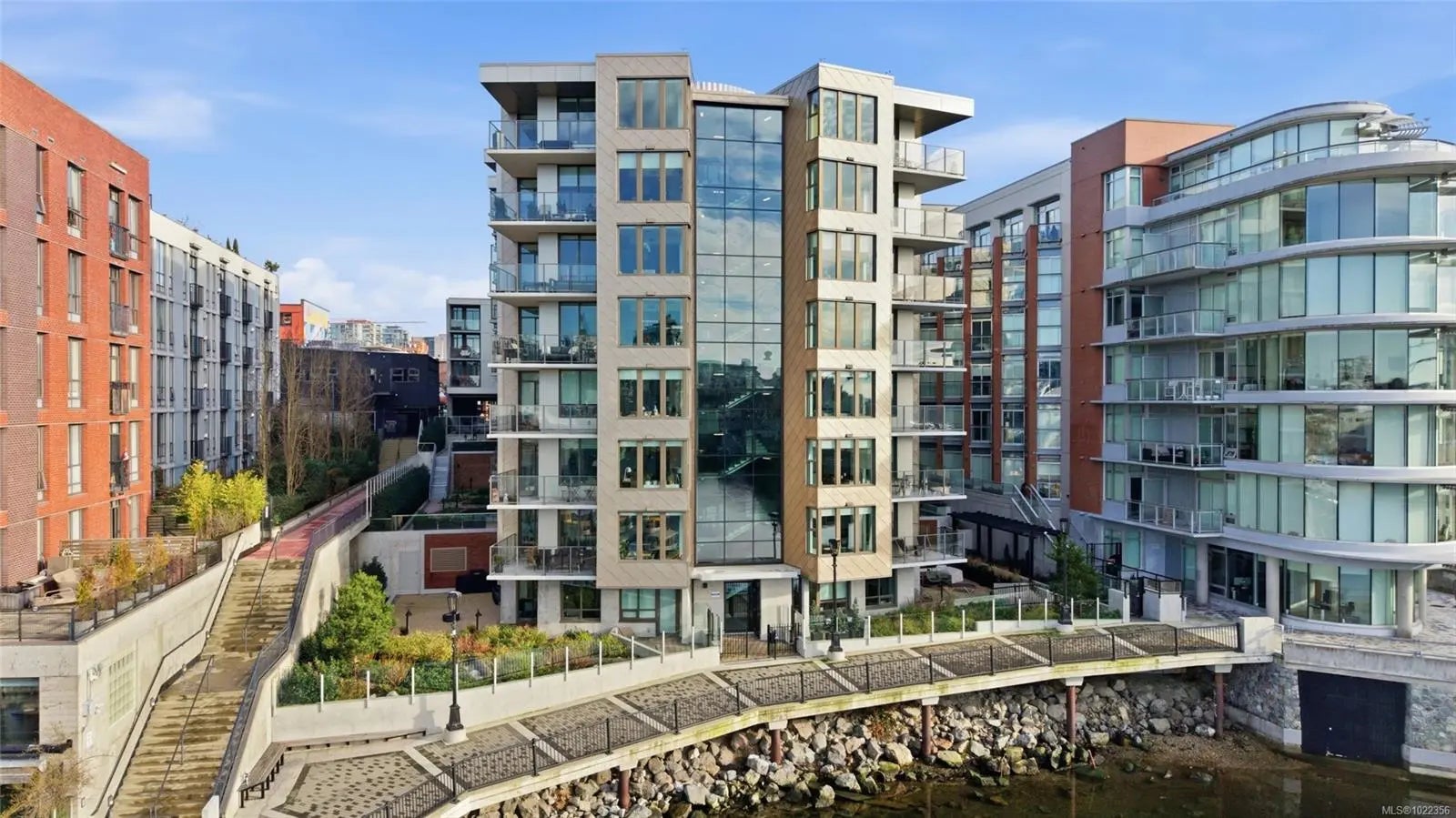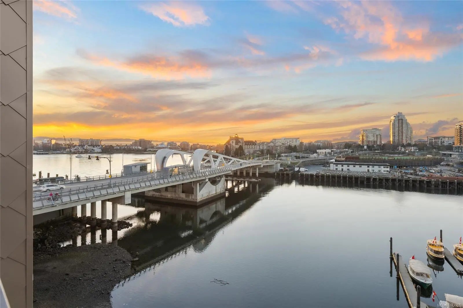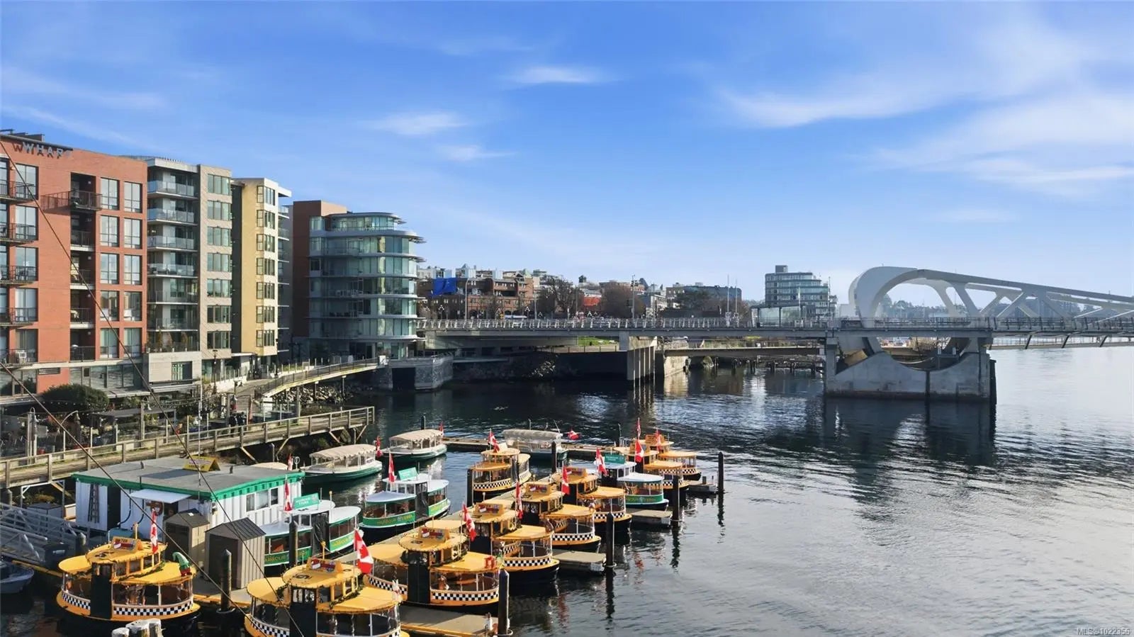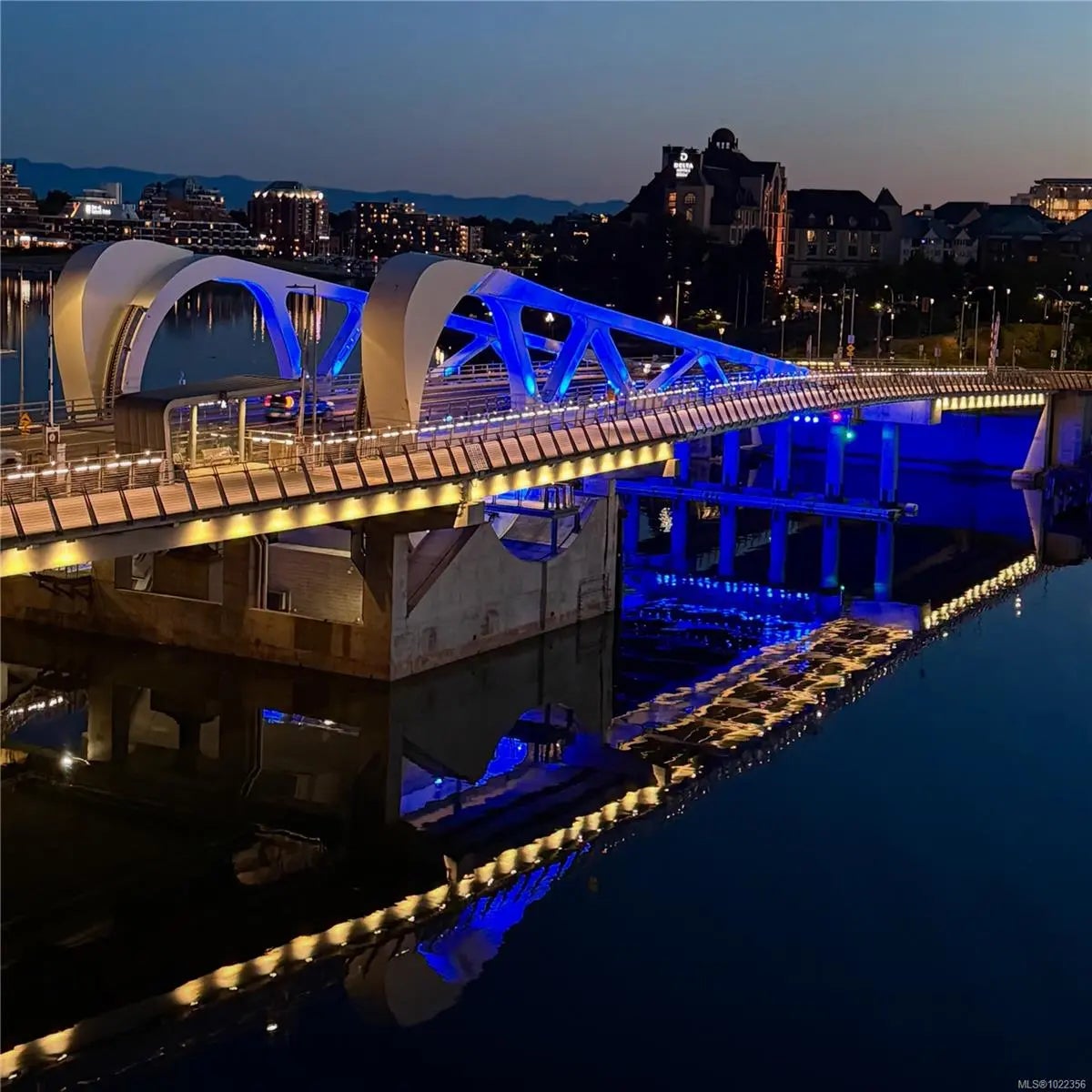 Welcome to your new home at The Pearl. Set along the waterfront in Victoria’s vibrant Old Town with the Blue Bridge as its neighbour, this stunning 2-bedroom + den residence blends modern design with everyday livability. Thoughtfully designed, the open-concept layout features 9’ ceilings, expansive windows, and a light-filled interior finished with quartz countertops, soft-close cabinetry, premium appliances, and custom built-ins that elevate both style and function. Two beautifully finished bathrooms add a spa-like touch, while the flexible den is perfect for a home office or guest space. Enjoy serene outlooks by day and glowing city views by night, featuring the iconic Johnson Street Bridge, inner harbour, and Olympic Mountains. Residents enjoy access to a social lounge, gym, and an inviting lobby—this showcases waterfront living that is sophisticated, stylish, and refined.