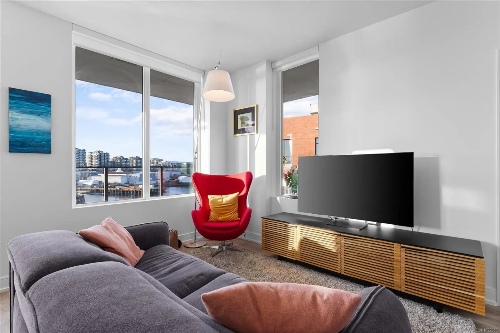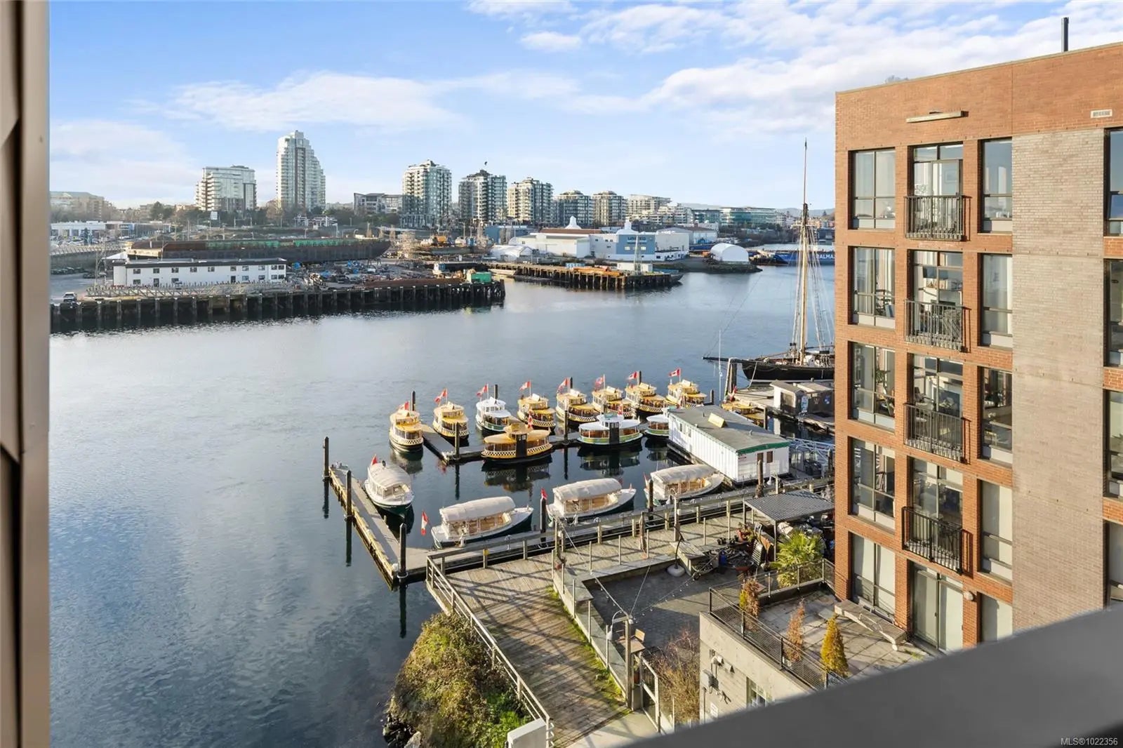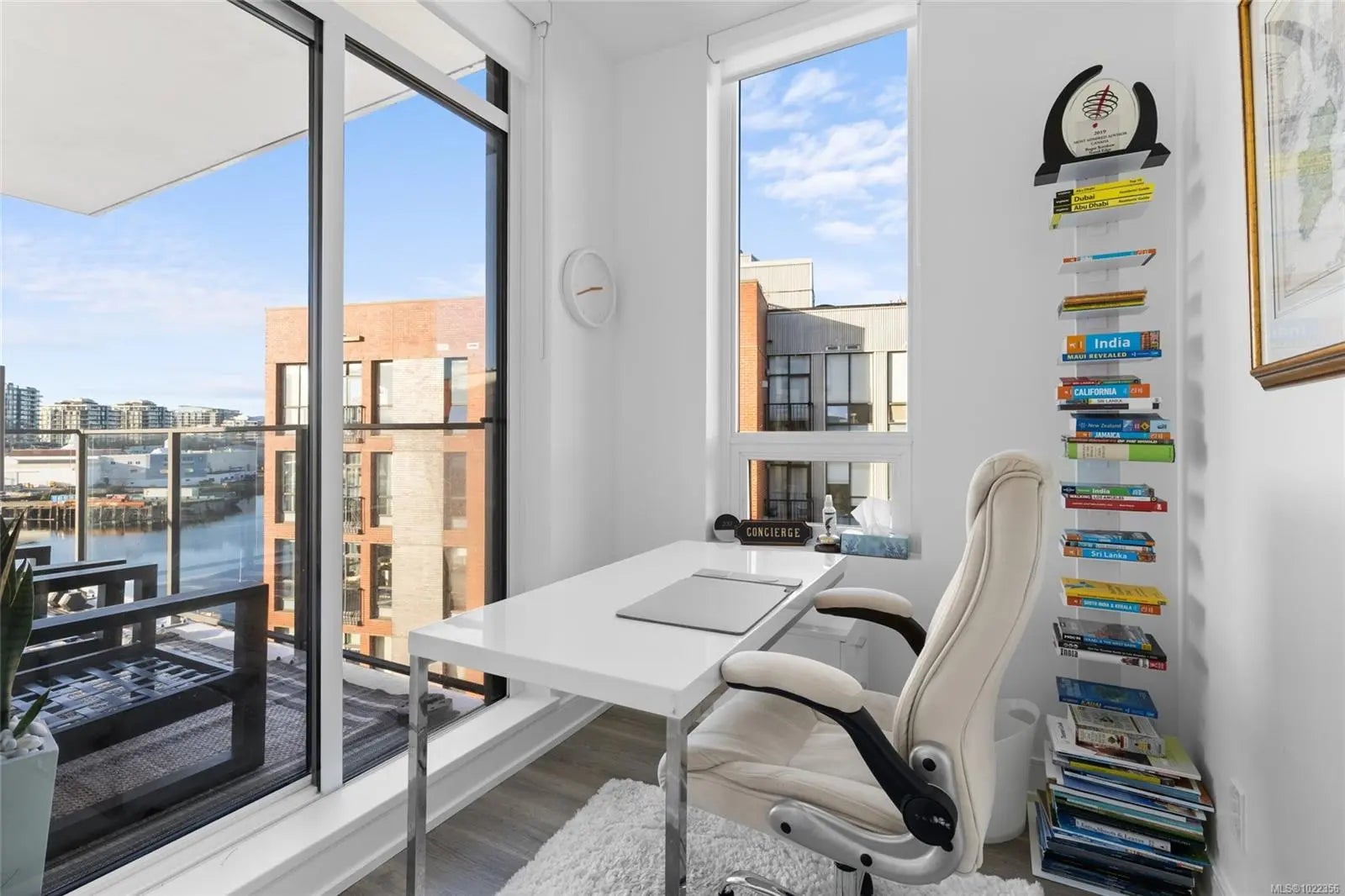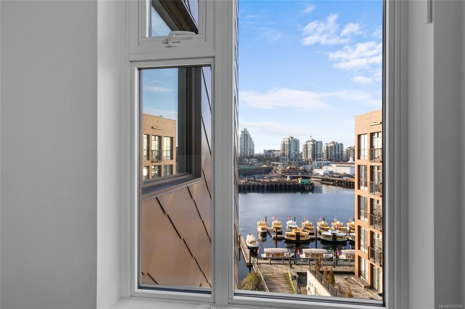 Welcome to your new home at The Pearl. Set along the waterfront in Victoria’s vibrant Old Town with the Blue Bridge as its neighbour, this stunning 2-bedroom + den residence blends modern design with everyday livability. Thoughtfully designed, the open-concept layout features 9’ ceilings, expansive windows, and a light-filled interior finished with quartz countertops, soft-close cabinetry, premium appliances, and custom built-ins that elevate both style and function. Two beautifully finished bathrooms add a spa-like touch, while the flexible den is perfect for a home office or guest space. Enjoy serene outlooks by day and glowing city views by night, featuring the iconic Johnson Street Bridge, inner harbour, and Olympic Mountains. Residents enjoy access to a social lounge, gym, and an inviting lobby—this showcases waterfront living that is sophisticated, stylish, and refined.