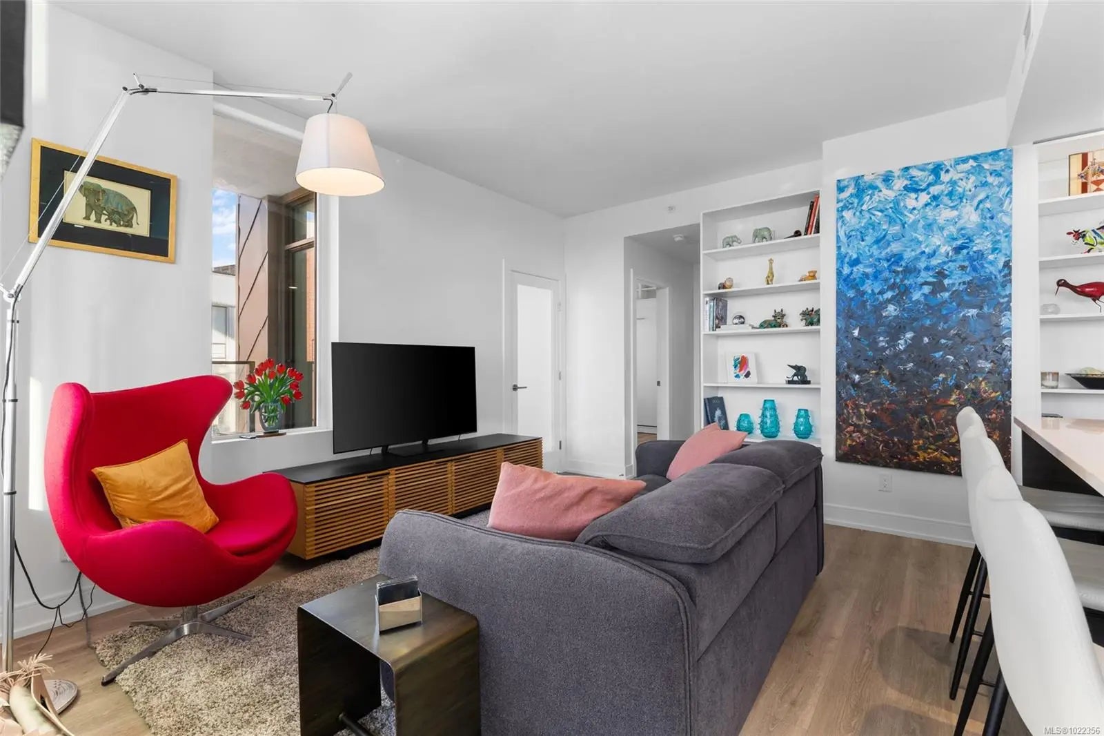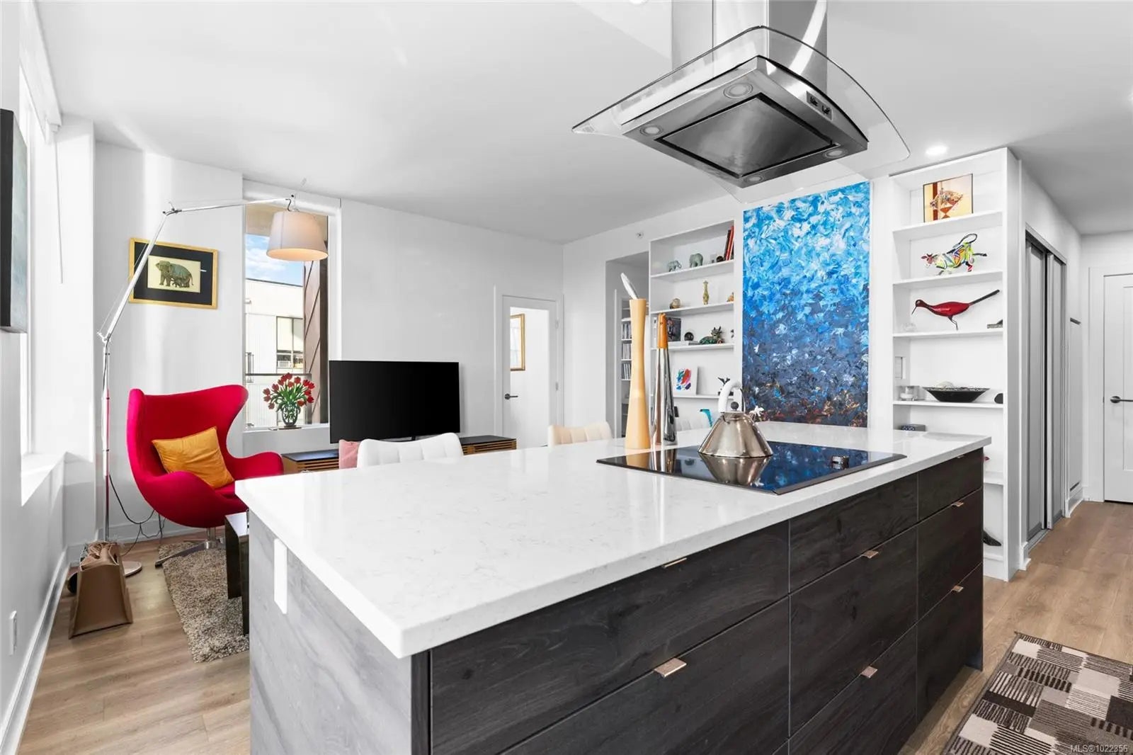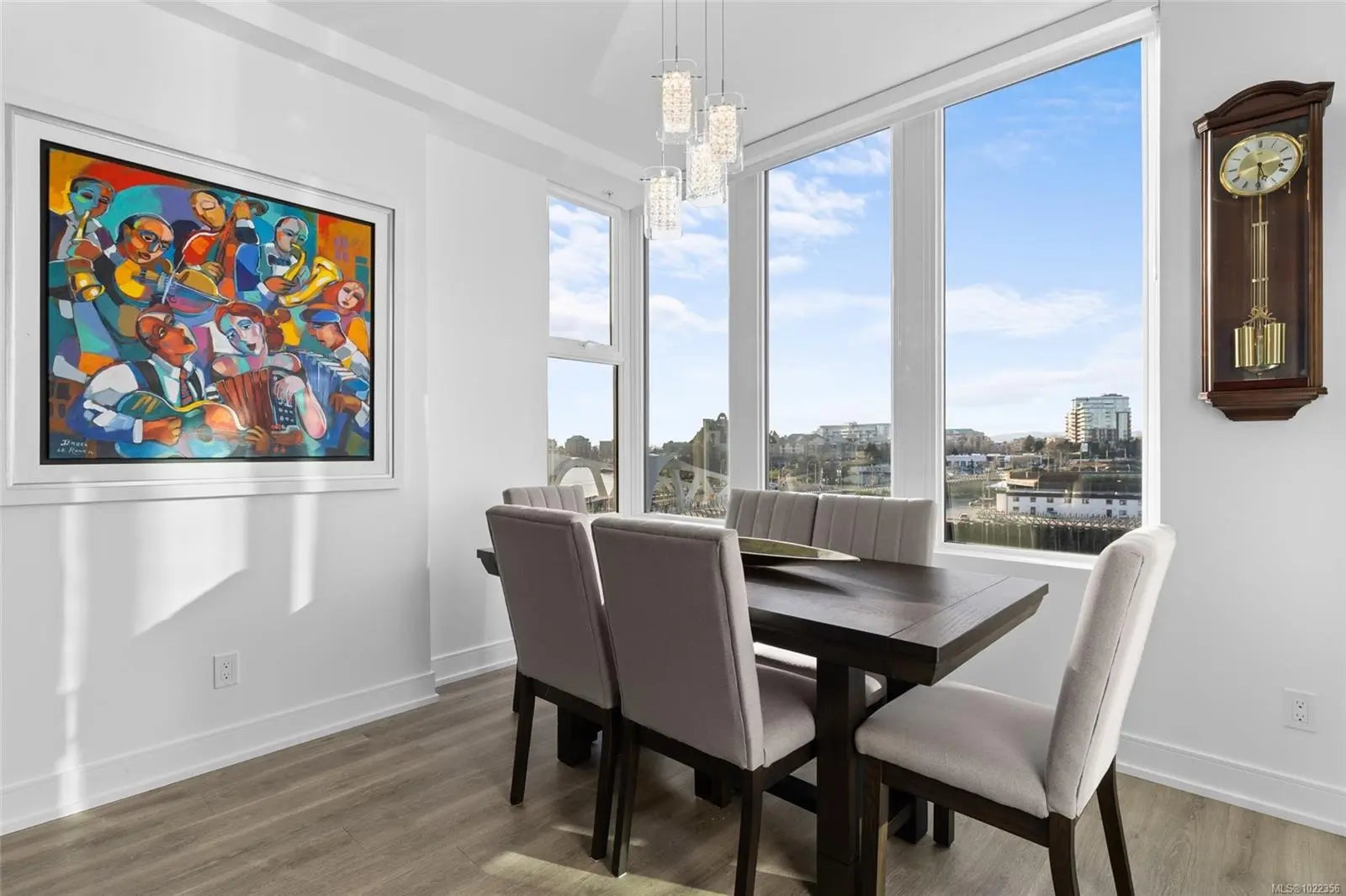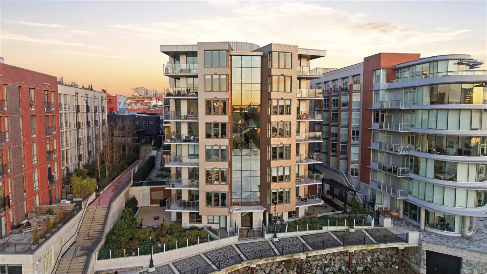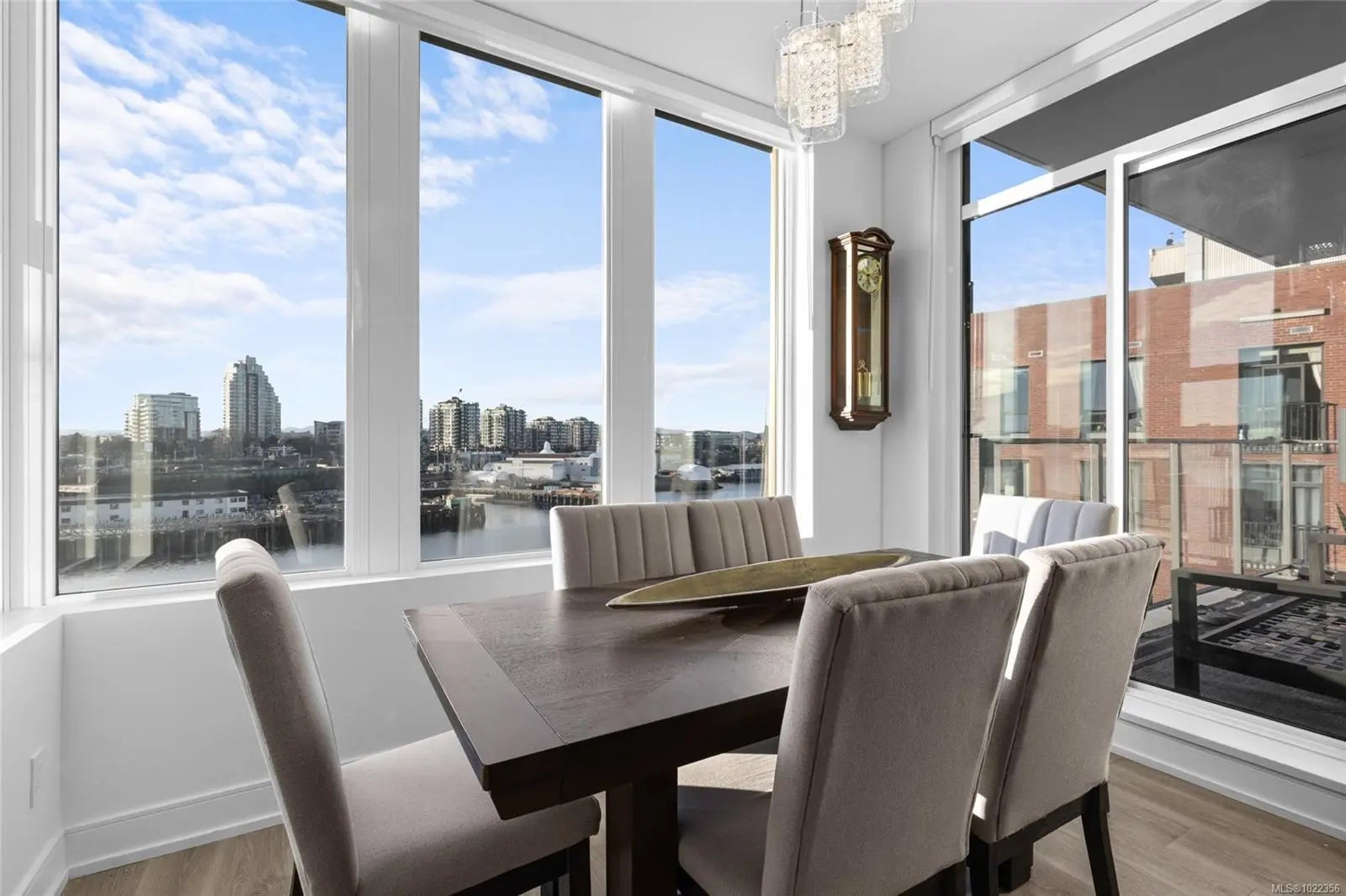 Welcome to your new home at The Pearl. Set along the waterfront in Victoria’s vibrant Old Town with the Blue Bridge as its neighbour, this stunning 2-bedroom + den residence blends modern design with everyday livability. Thoughtfully designed, the open-concept layout features 9’ ceilings, expansive windows, and a light-filled interior finished with quartz countertops, soft-close cabinetry, premium appliances, and custom built-ins that elevate both style and function. Two beautifully finished bathrooms add a spa-like touch, while the flexible den is perfect for a home office or guest space. Enjoy serene outlooks by day and glowing city views by night, featuring the iconic Johnson Street Bridge, inner harbour, and Olympic Mountains. Residents enjoy access to a social lounge, gym, and an inviting lobby—this showcases waterfront living that is sophisticated, stylish, and refined.