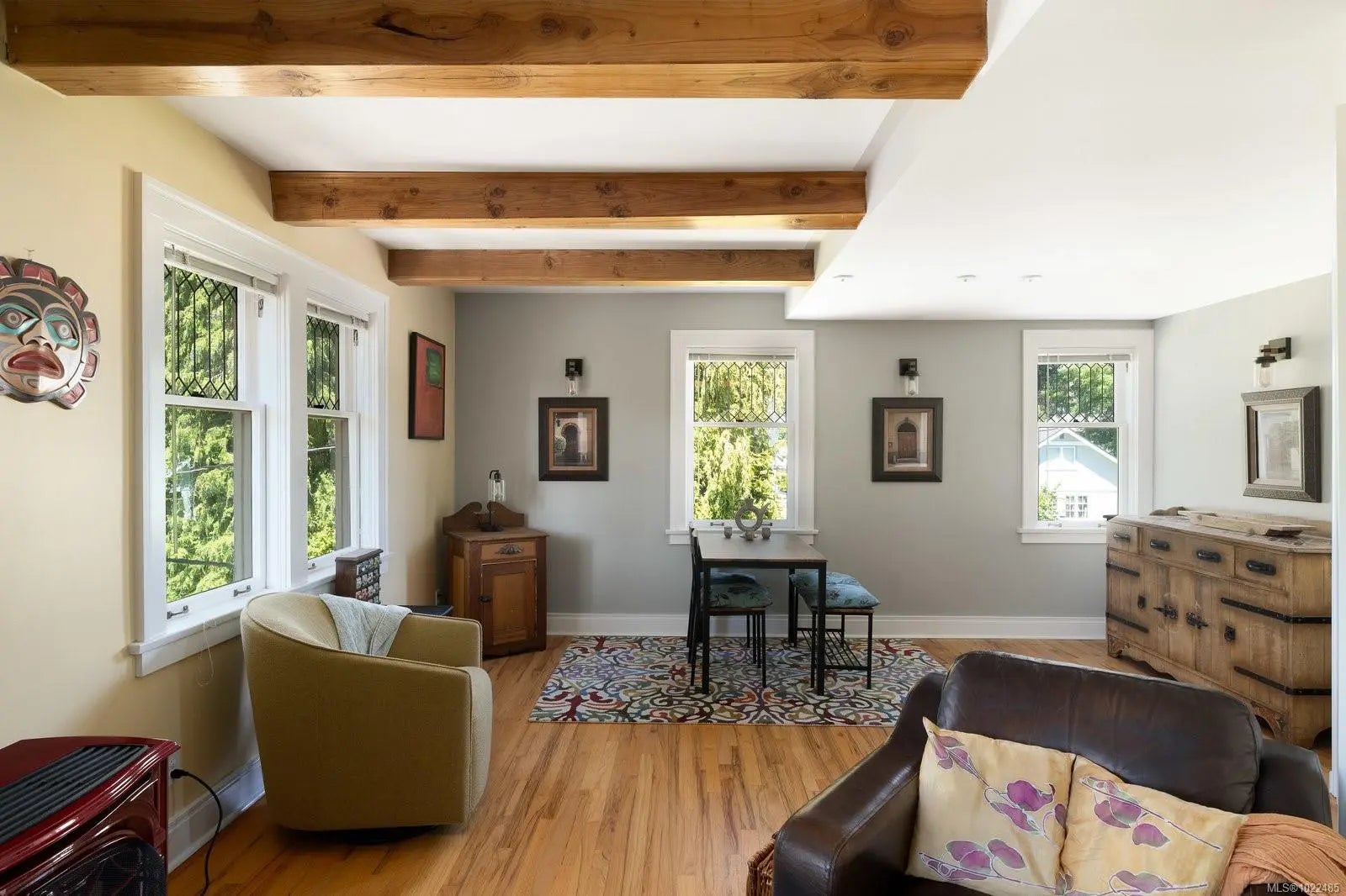 Set on one of Rockland’s beautiful tree-lined streets, this unique 2-bed, 2-bath home is part of a charming 1925 character conversion with just 5 residences. Warm & inviting, it offers abundant natural light & a generous 322-sq.ft. private south-facing deck with serene garden views. The main level features a spacious living & dining area with hardwood floors, a gas fireplace & elegant beamed ceilings. The open kitchen connects seamlessly to the living space, while a bedroom, full bath, & laundry complete the main floor. Upstairs, the primary bedroom is a peaceful retreat filled with natural light from two skylights, featuring a private balcony and a well-appointed ensuite. This sought-after neighbourhood is just a short distance to Government House, Downtown & Cook Street Village. With a parking space, storage locker, generous in-unit storage, and a quiet residential setting close to amenities and beautiful parks, this is a wonderful opportunity to own a piece of Rockland’s history.